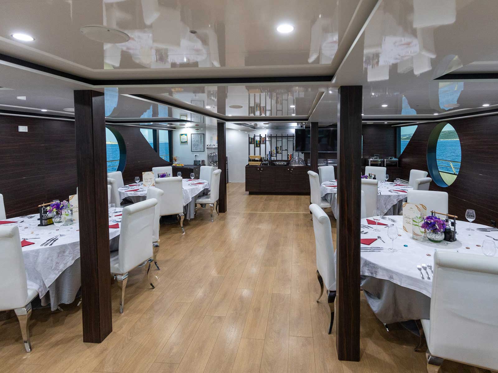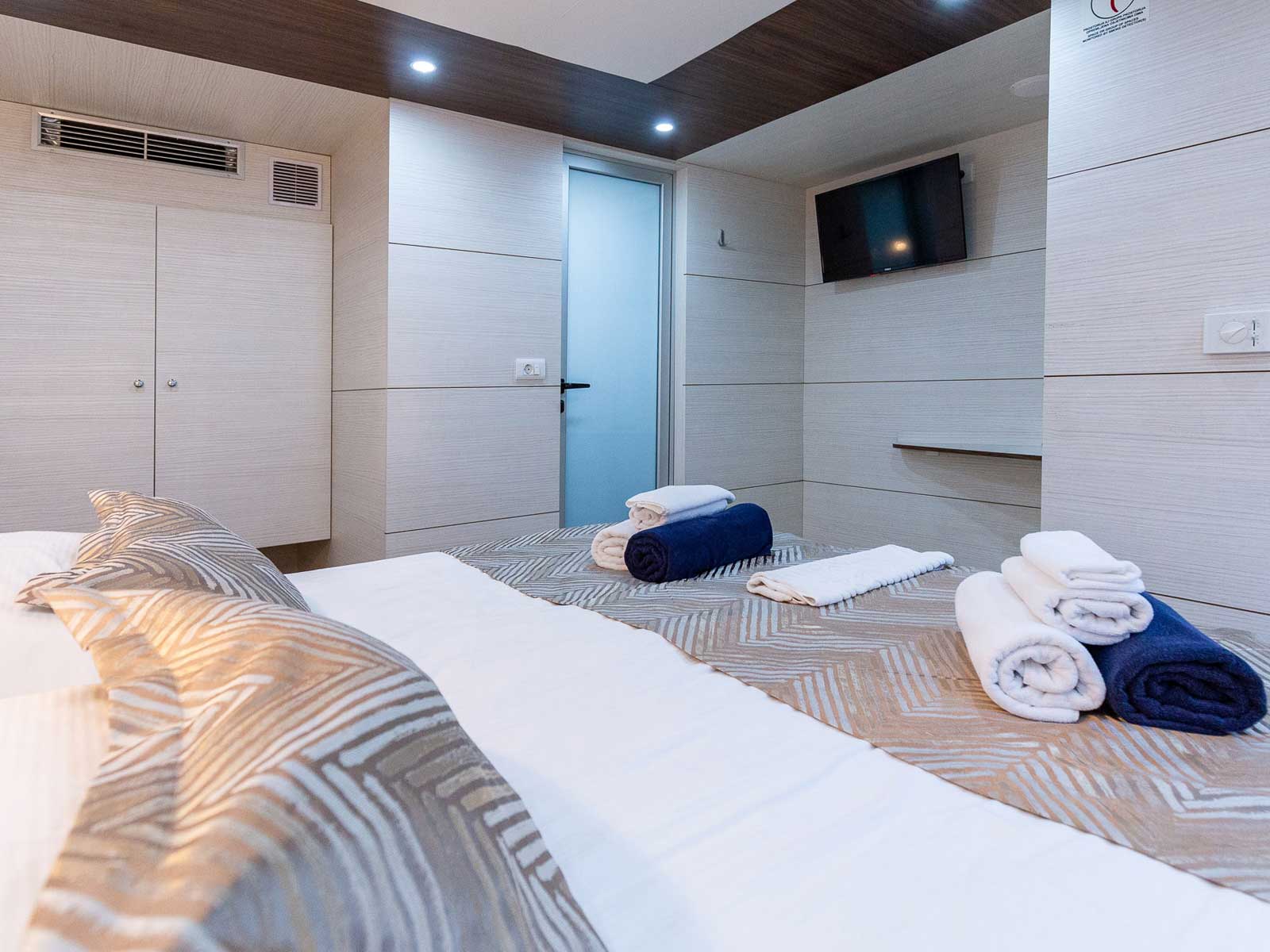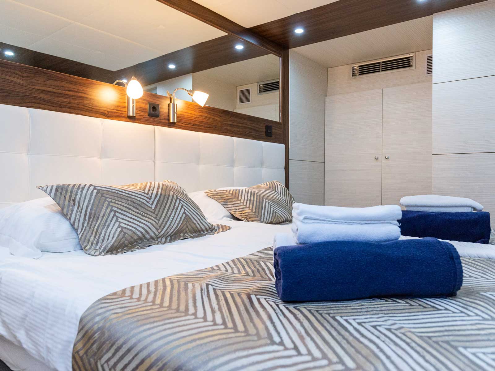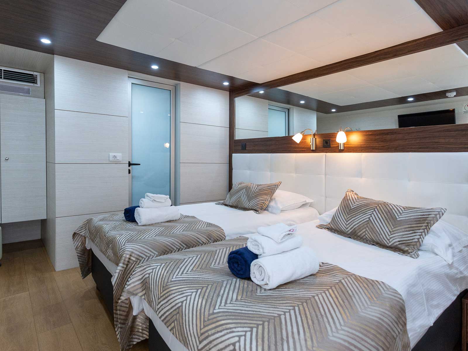 Accommodation in fully equipped and air-conditioned cabins with private bathrooms