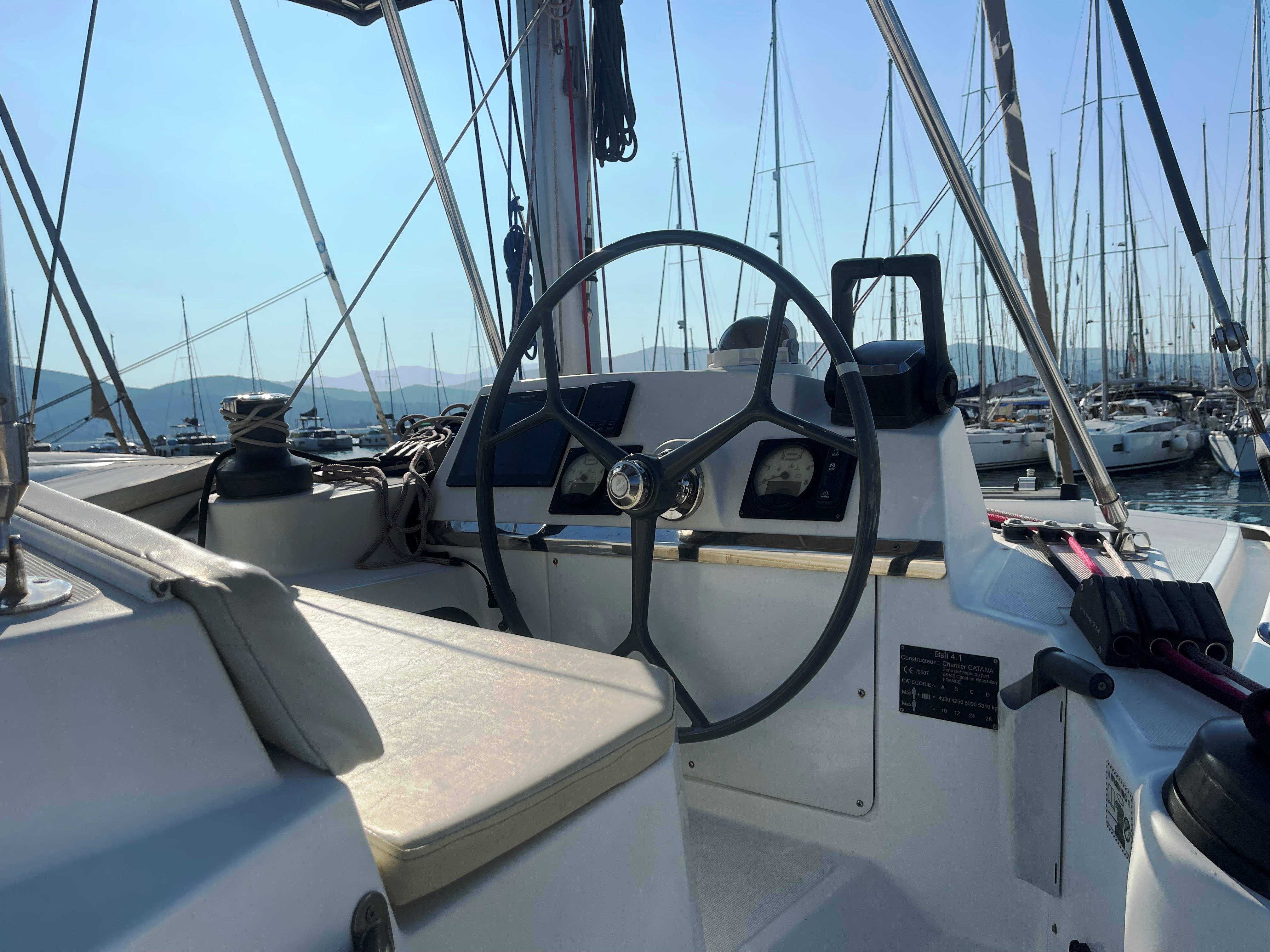 Main Deck CompassLog/SpeedoAutopilotVHFGPSRadio/CDCockpit SpeakersHot Water SystemBiminiDeck ShowerElectric WindlassRefrigeratorCooker (num.)Cooker with ovenSinksSinks (num.)Dinghy InflatableFire extinguisherFirst aid kitDistress flaresDan BuoyEcho SounderAnchorSteeringNautical charts and nautical guideNavigation kitLife jacketLinenWarm waterElectric toiletHolding tankbCockpit showerHeatingLife jacketsBinocularsBarometerNavigation equipmentMapsWind instrumentsLed lightsInverter 12V to 220 VSolar panels 300 wattsUSB socket all the cabin and the salon, Mosquito screen on hatches2 chartplotter in cockpitWind Speed instrument CD mp3 radio with Bluetooth , in site and Cockpit speakers Led on the biminiWeather stationOutboard EngineAir conditionInverterFans all cabins and sallonTV