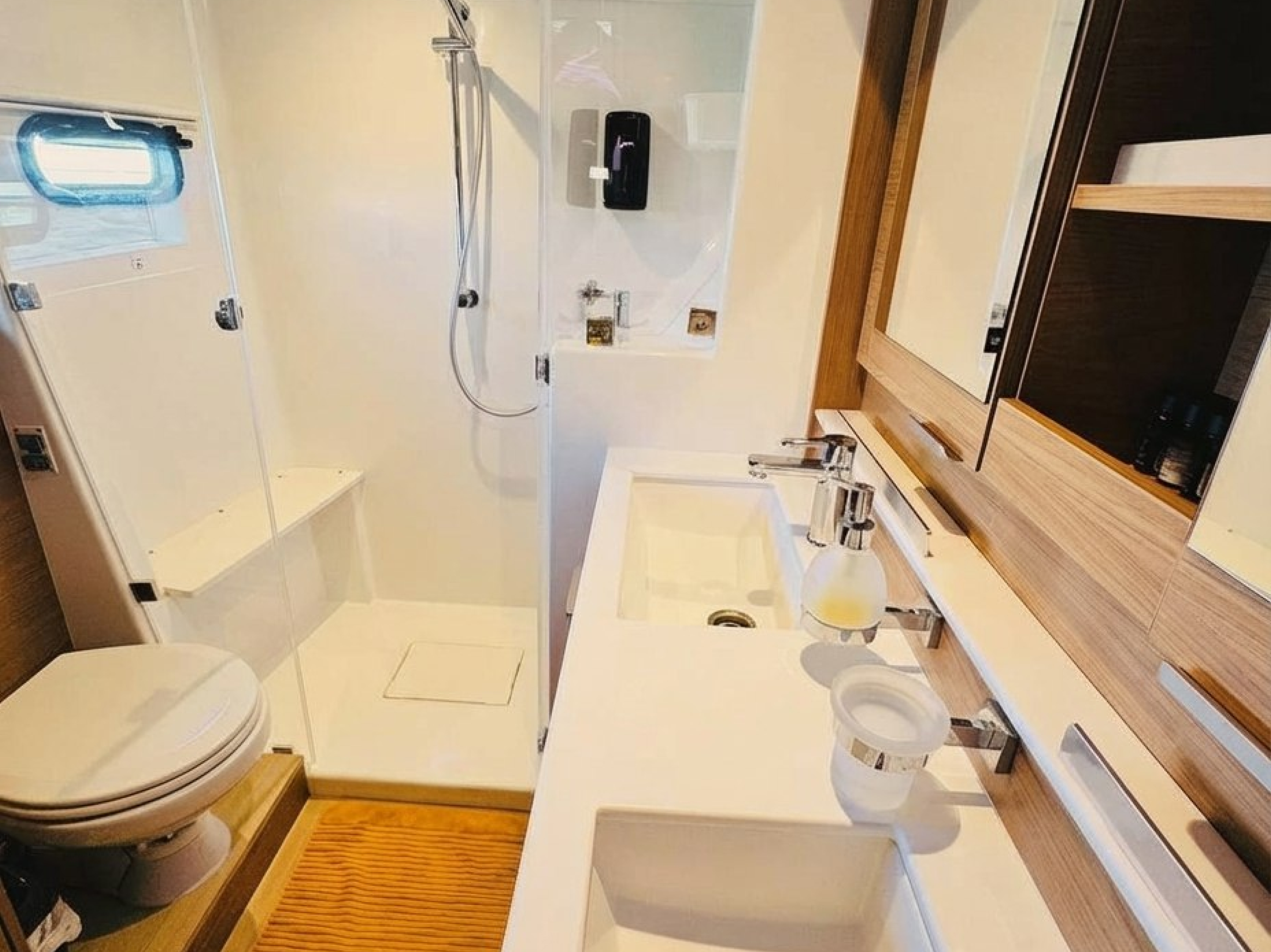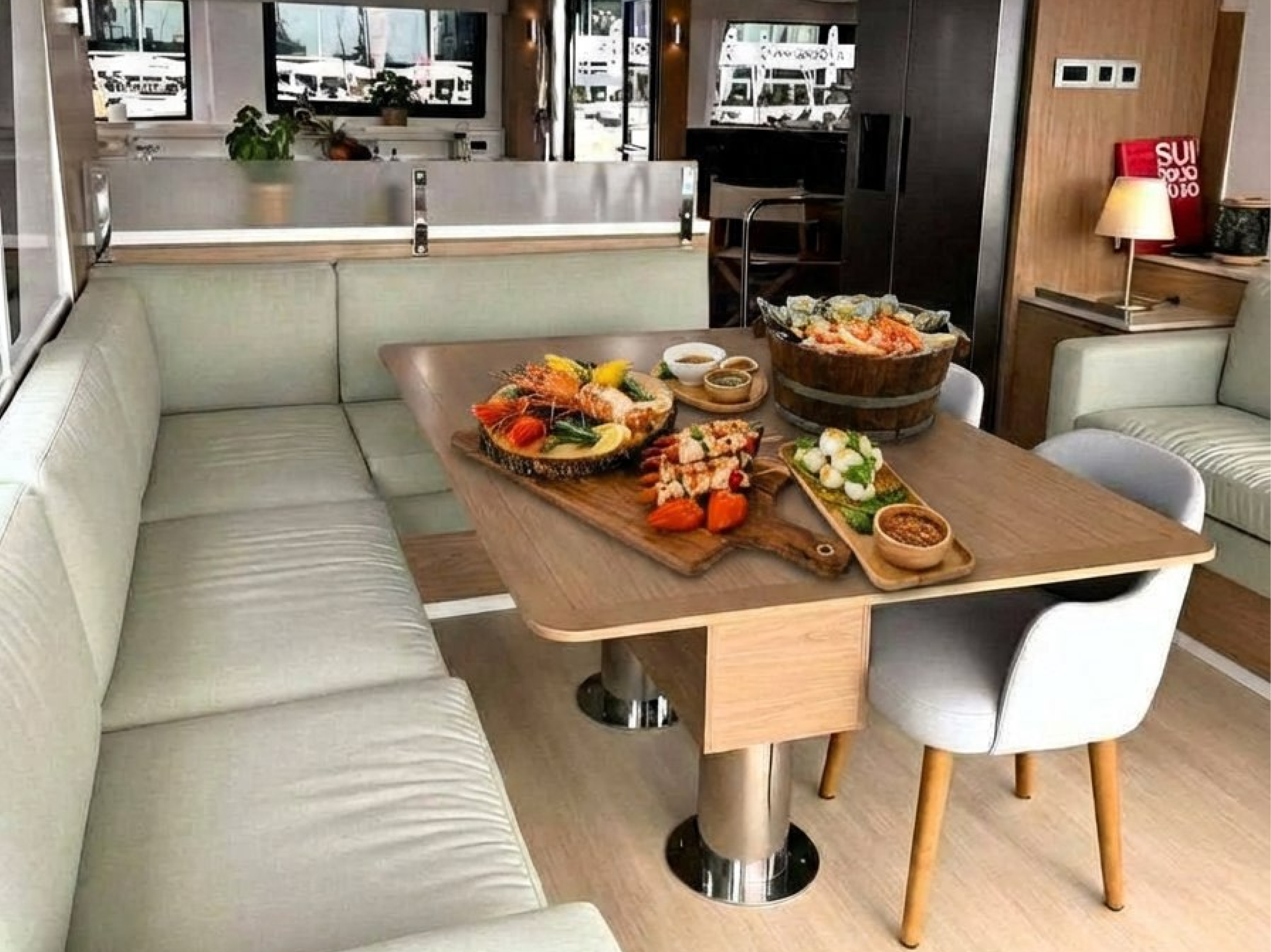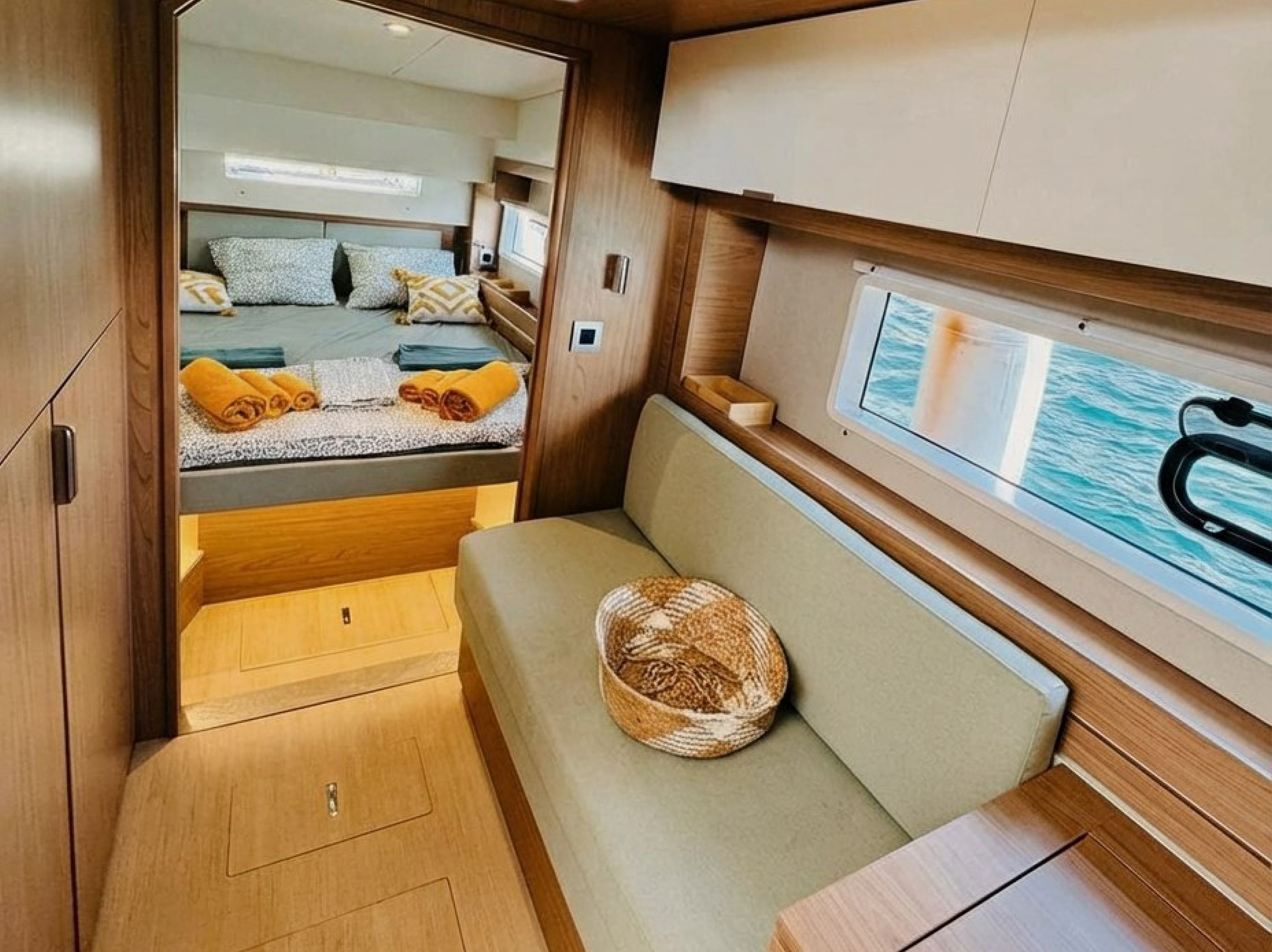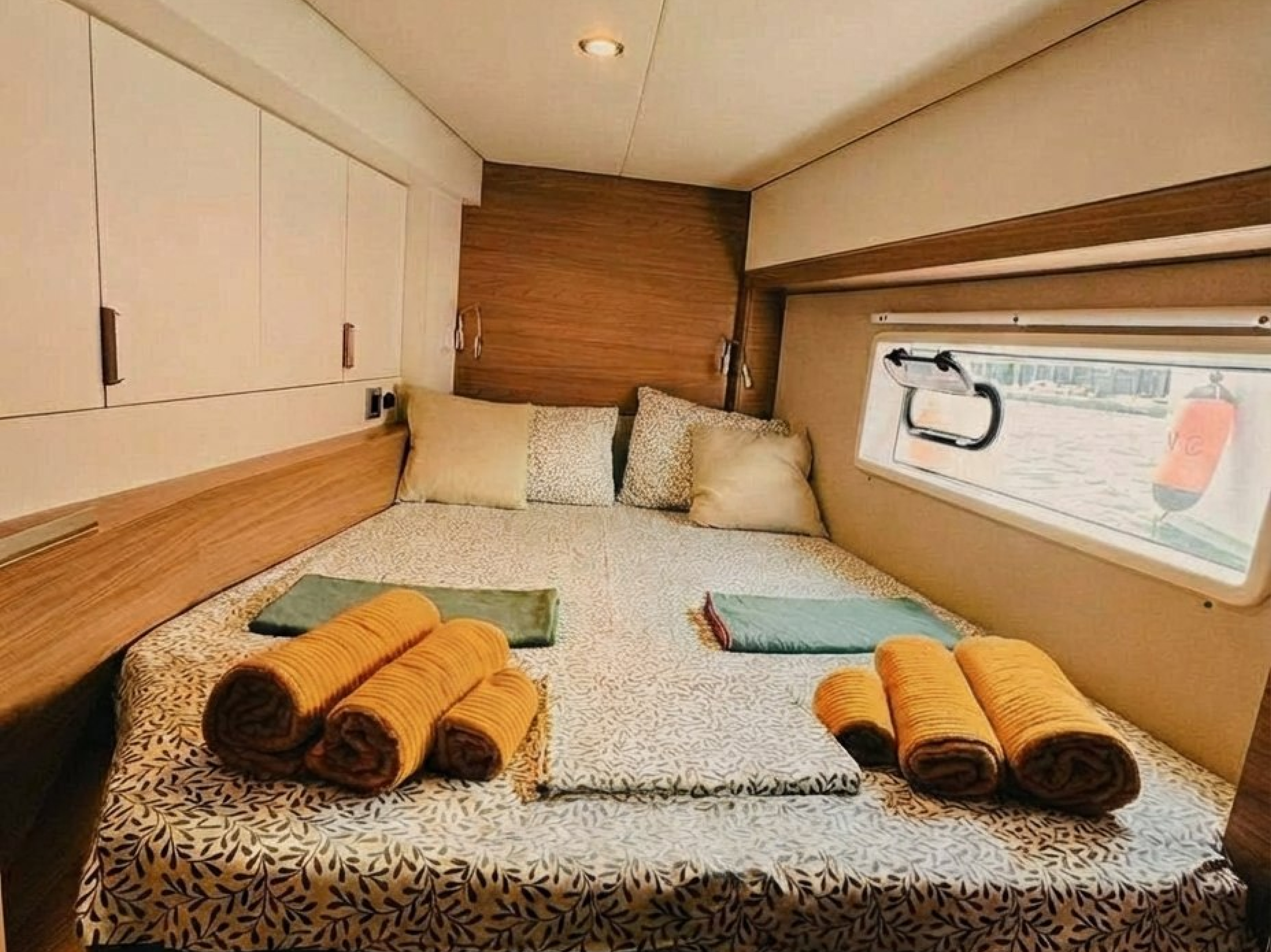 BluetoothStand up paddleFull set of masks and finsBuilt-in outdoor gas grillCookware and cooking utensilsSanitized fresh water tanksWashing machineGeneratorAir conditioning in all cabinsMicrofiber beach towelsLED lighting (internal and external)DishwasherLinen and towelsUnderwater blue lightsAnchor RocnaSpare anchorFloating mooring linesGPSNavigation systemsSonarAISFull safety gear3D fishfinderDepth scannerDinghyFlybridge sunshade
