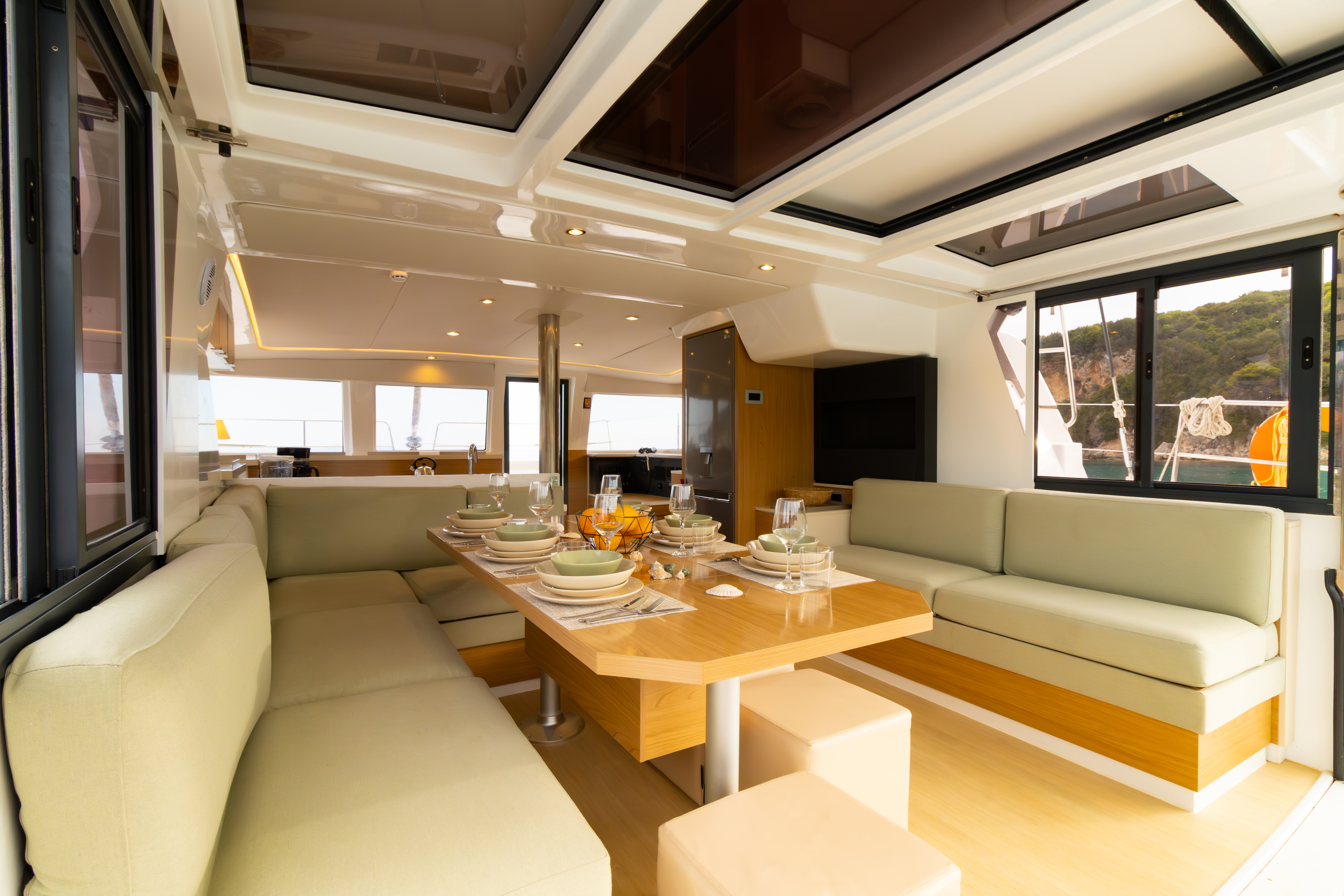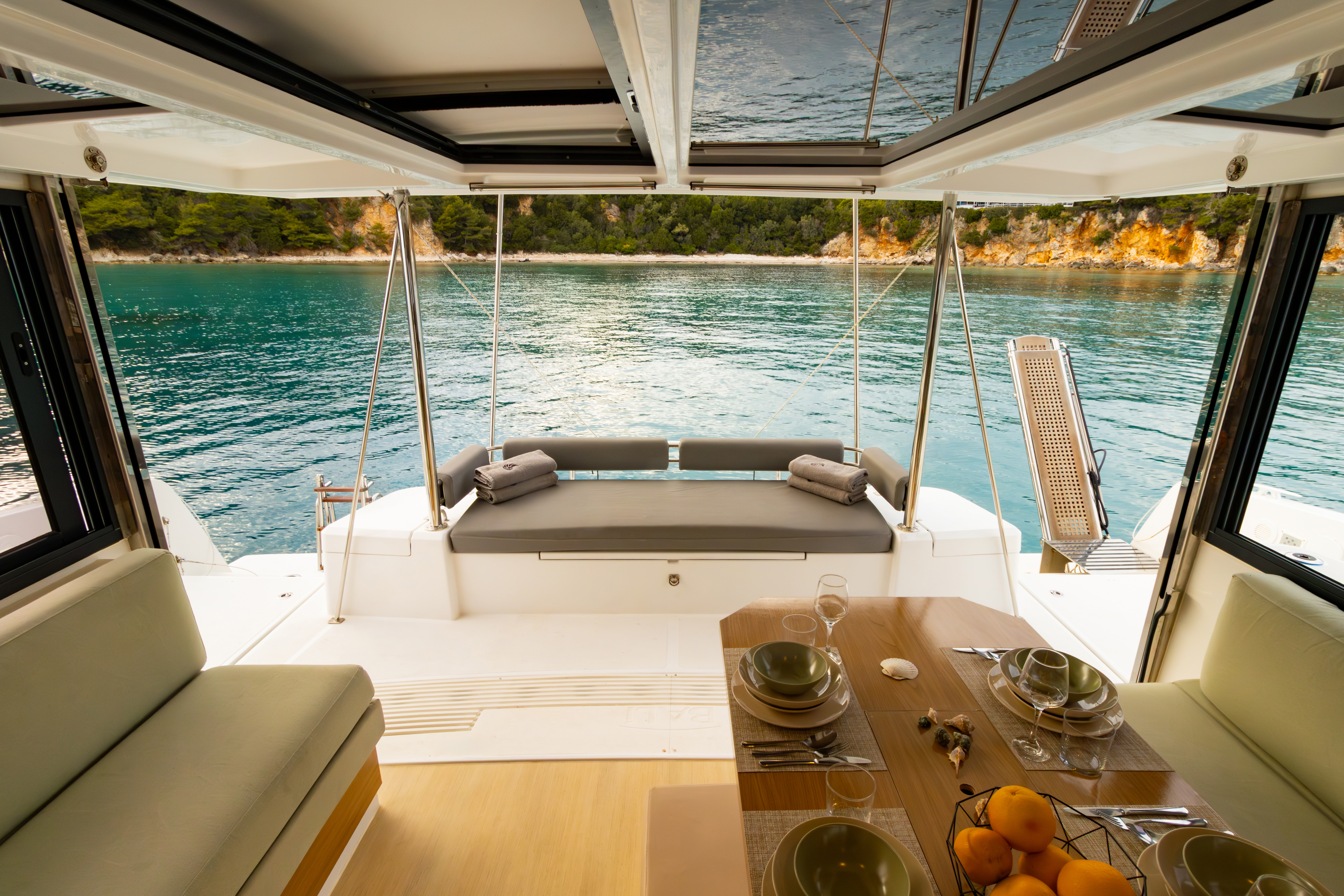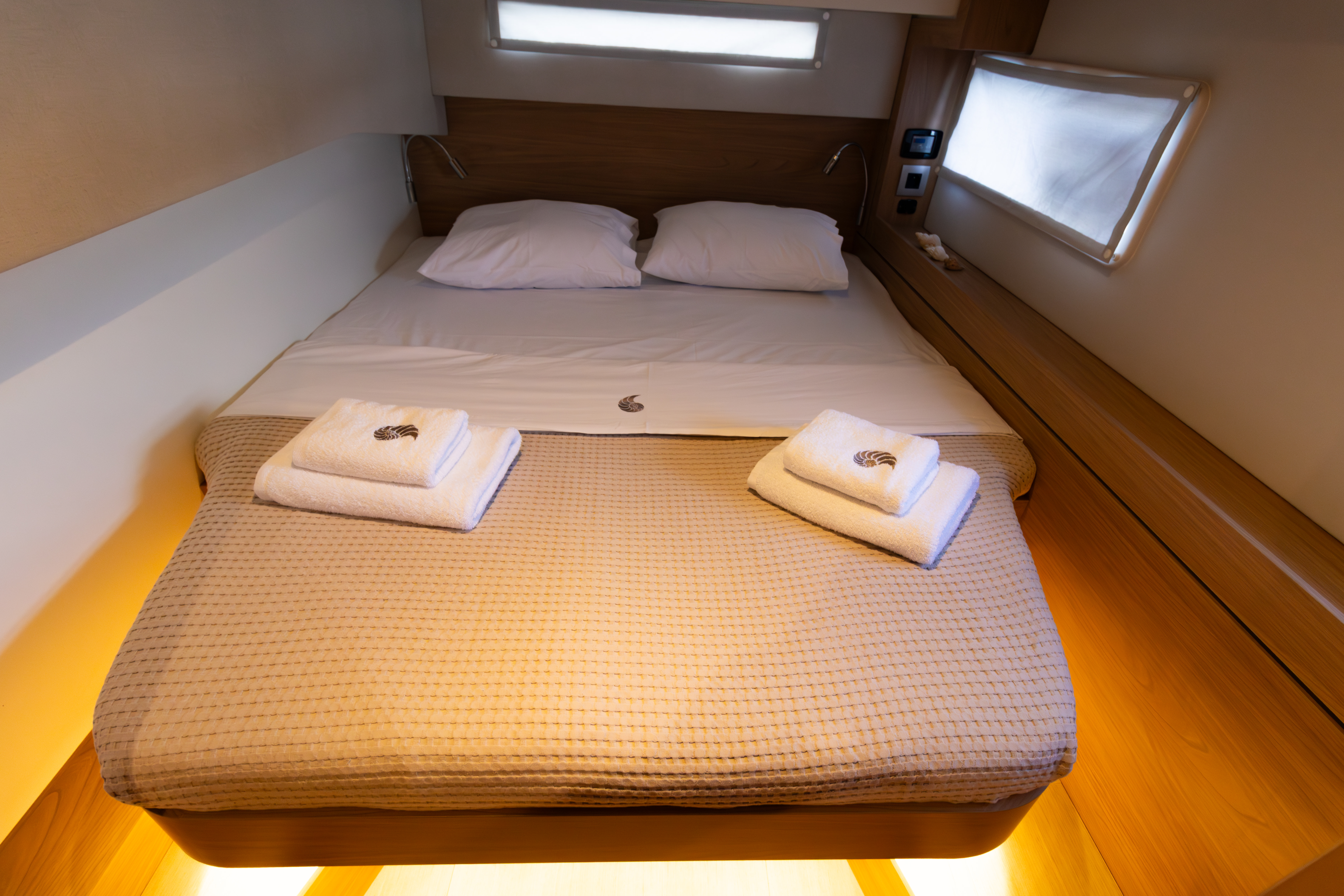 • Charter pack (Includes: end cleaning, bed linen/ bath towels, bathroom amenities, welcome basket with Greek traditional products, port fees for the first and last night, fuel for the outboard engine, gas bottle + 1 spare)
