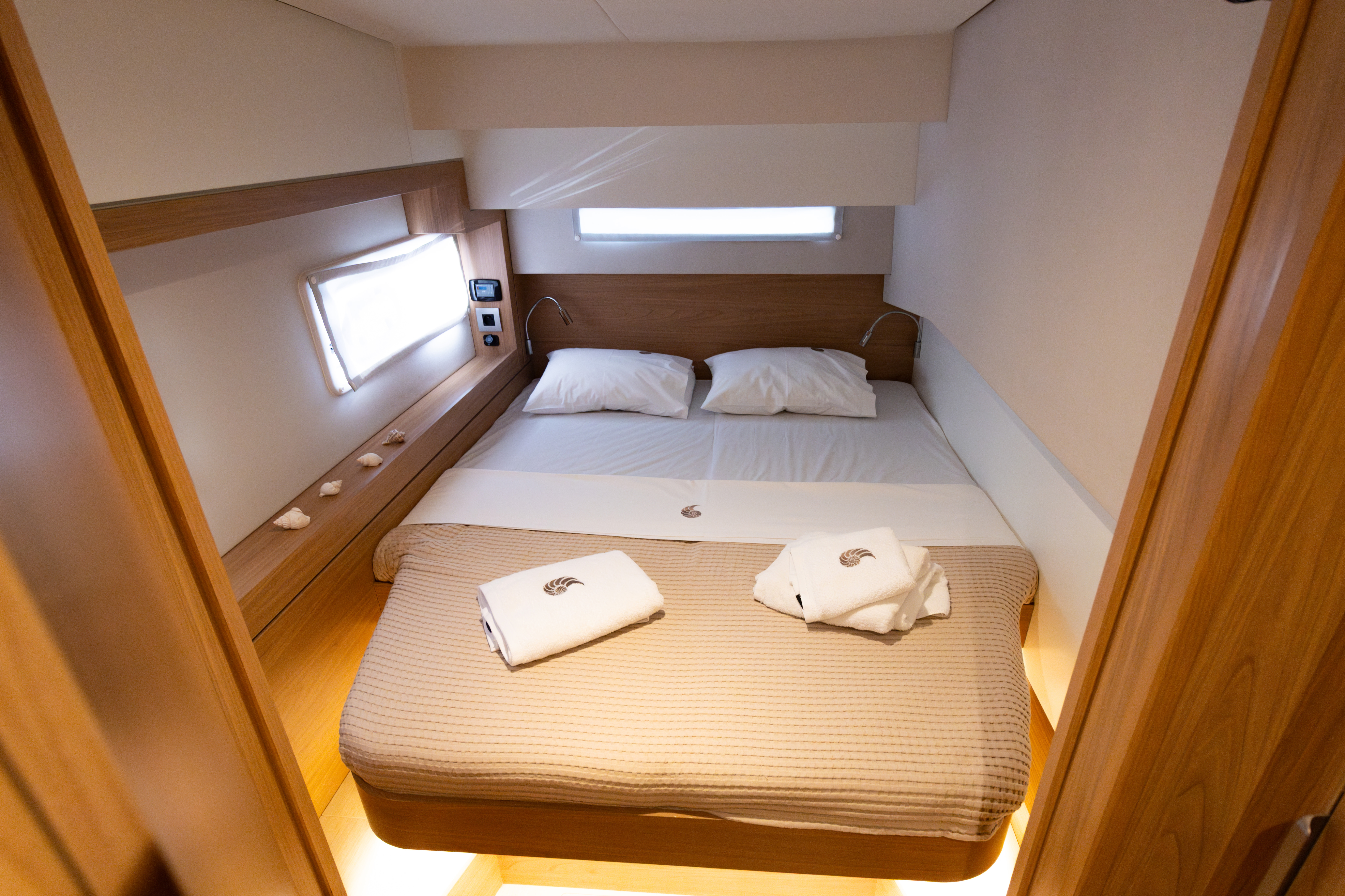 • Charter pack (Includes: end cleaning, bed linen/ bath towels, bathroom amenities, welcome basket with Greek traditional products, port fees for the first and last night, fuel for the outboard engine, gas bottle + 1 spare)