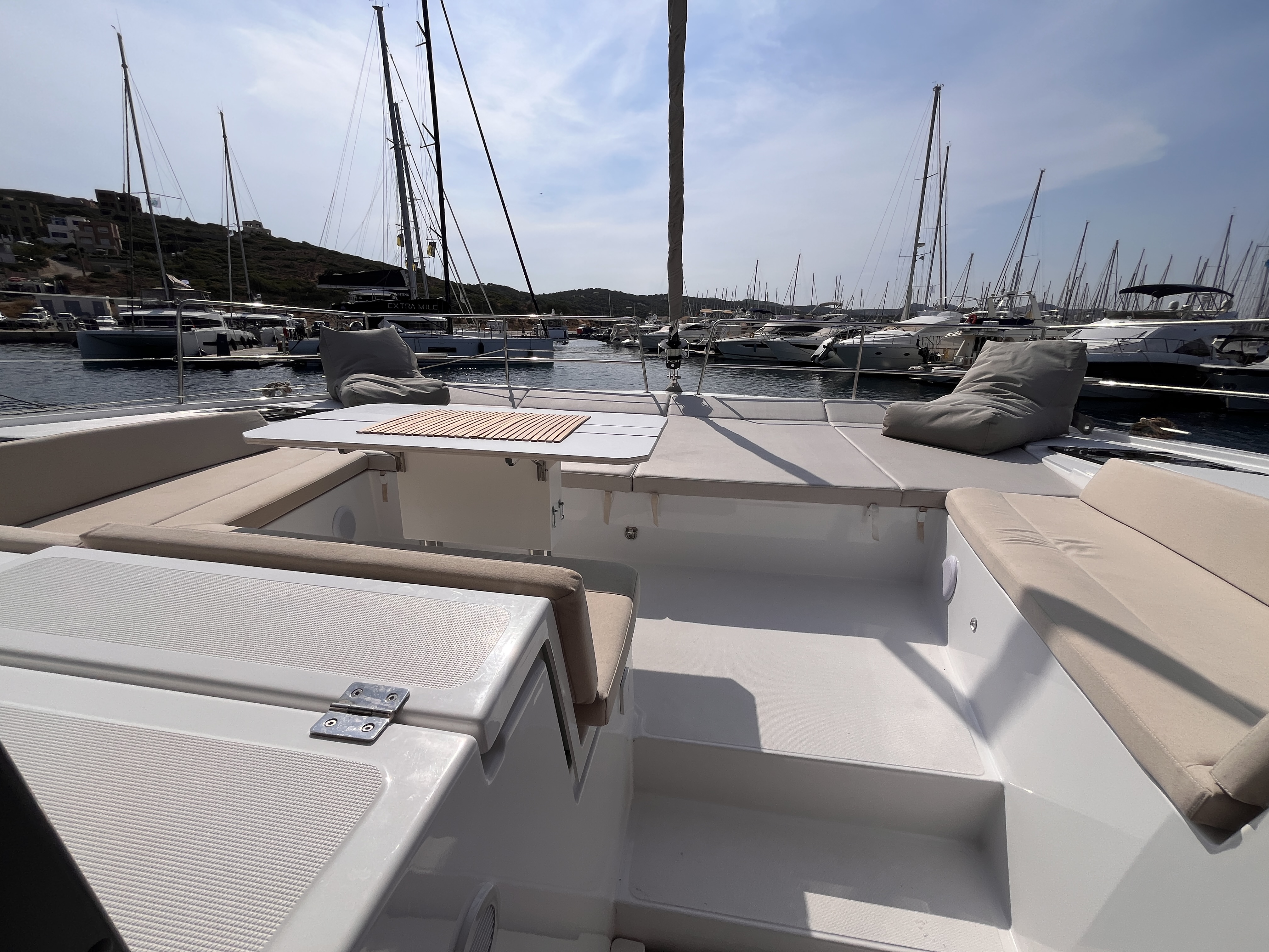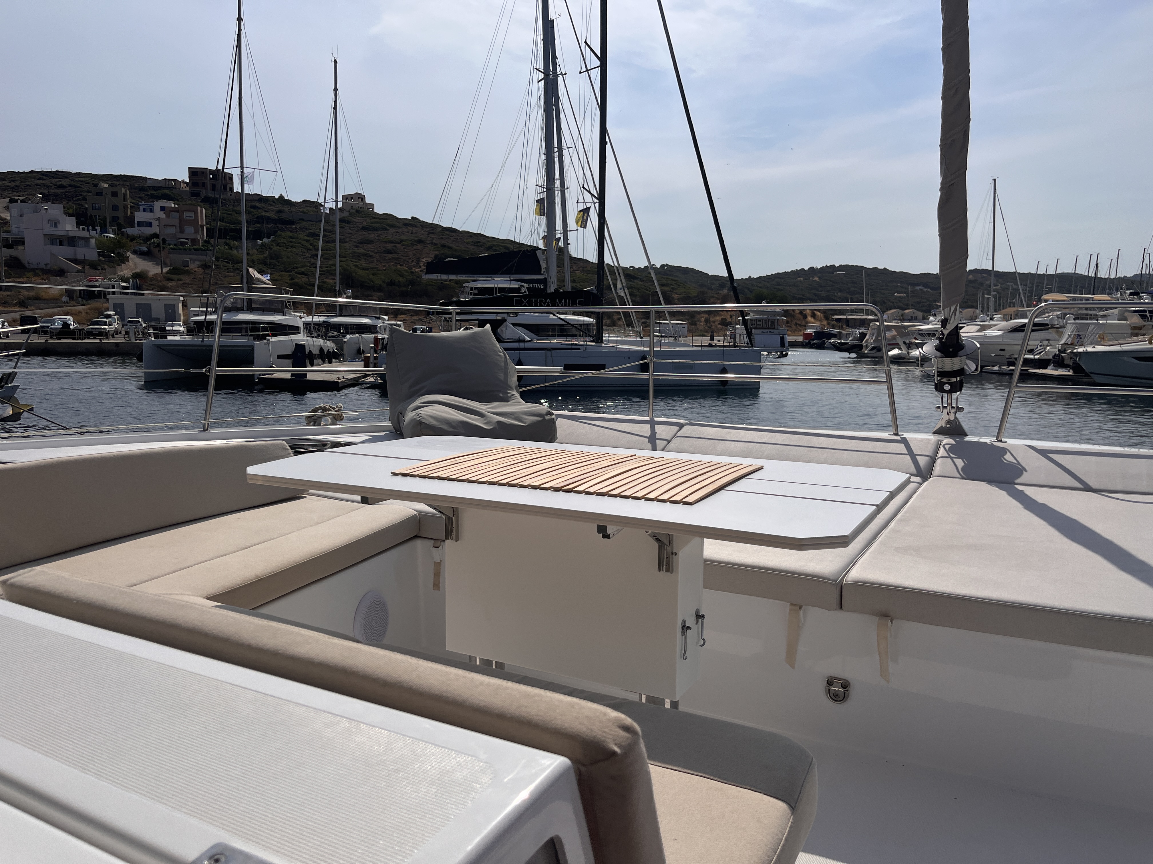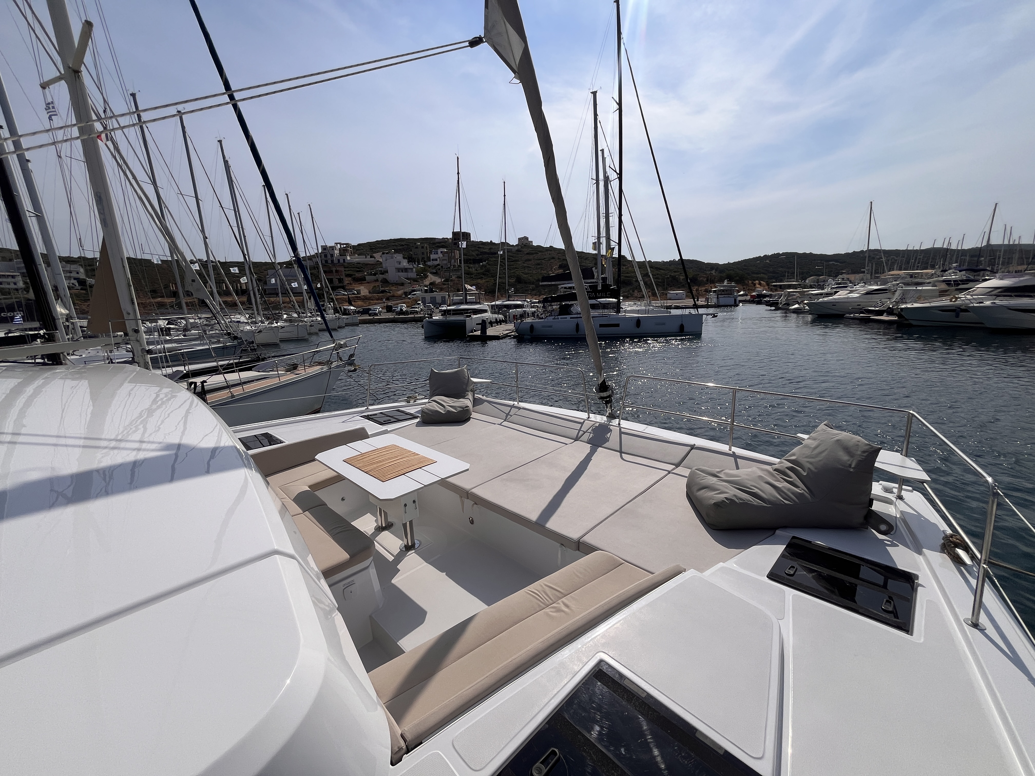 Pillows & Pillow-casesBlanketsBed linenTowels (2 per person)Electric toiletsChart plotter in the cockpitCockpit cushionsCockpit speakersCockpit shower with mixer tapCockpit tableStainless steel bathing ladderSteering wheelsSwimming ladderWinch handlesPilot stationElectric winchesSelf-draining cockpitBlack water tankBBQ Gas operated in the cockpitRoller blinds for deck hatchesForward sun mattressSunshadesFendersMooring ropesAnchor chainAnchor Lewmar Delta (in kg)Forward cockpit tableForward cockpit cushionsFlybridge tableFlybridge sun mattressFlybridge cushionsHydraulic gangwayGas StoveGas OvenFreezerElectric fridgeGalley equipmentWashing machineIcemaker HeatingWater makerAutomatic shower pumpL-shaped setteeAutomatic shower water drainageBasin with mixer tapBlinds with mosquito netCoffee tableElectric fans in cabinsHot waterLED direct + indirect lightsMirror and storageBluetooth / FM / AUX / SD / USB player with interior & exterior speakers and remote controlSofaRefrigeratorWC rigid holding tank drain deck/seaConvertible saloon tableAir-conditioningBilge pump - electricPlug 220V/12VElectric anchor windlassBilge pump - mechanicGeneratorShore connection cable 220VBatteriesWater pumpEngine AlarmBoiler230V sockets in cabins and the saloonInverter 300WUSB Type-A in cabinsSolar panelsAISAnemometerAutopilotChart & pilot bookChart plotterCompassDepthsounderDividerElectronic instrumentsEPIRB (Emergency locator beacon)Floating lightGPS in the cockpitLED navigation lightsList of lightsNautical chartsNavigation setSpeed logVHF radioWind instrumentsFull Batten mainsailBiminiSprayhoodRigid Boom VangLazy BagLazy JacksSelf-tacking JibRadar reflectorEmergency helmFoghornRepair kitFirst aid kit Distress flare boxFire extinguisherLife beltsHorseshoe lifebuoyLife jacketsTorchLiferaft ToolboxBosun's chair (boatswain's chair)GMDSS - Global Maritime Distress and Safety SystemBoat DocumentsSnorkeling equipmentPeopleTender FUN Boat F330C