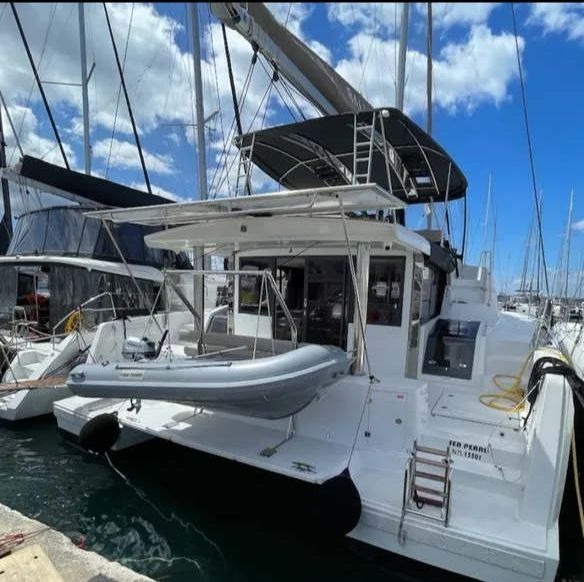 Cockpit cushionsLazy bagLazy jacksAutopilotCompassGPSGPS chart plotterLogge/Lot/SpeedNautical chartsNavigation setWind instrument/AnemometerBlack Water TankFire extinguisherFirst aid kitFlashlightSafety equipmentSet of toolsVHF radioAir ConditionGeneratorWatermaker - desalinatorAnchorBimini topCockpit/stern, outside showerDeck brushDinghyElectric anchor windlassFendersOutboard enginePlastic bucketSprayhoodHot waterKitchen utensils (Galley equipment, cutlery)OvenRefrigeratorStoveElectric toiletInside showerFusion radioOutdoor speakersUSB