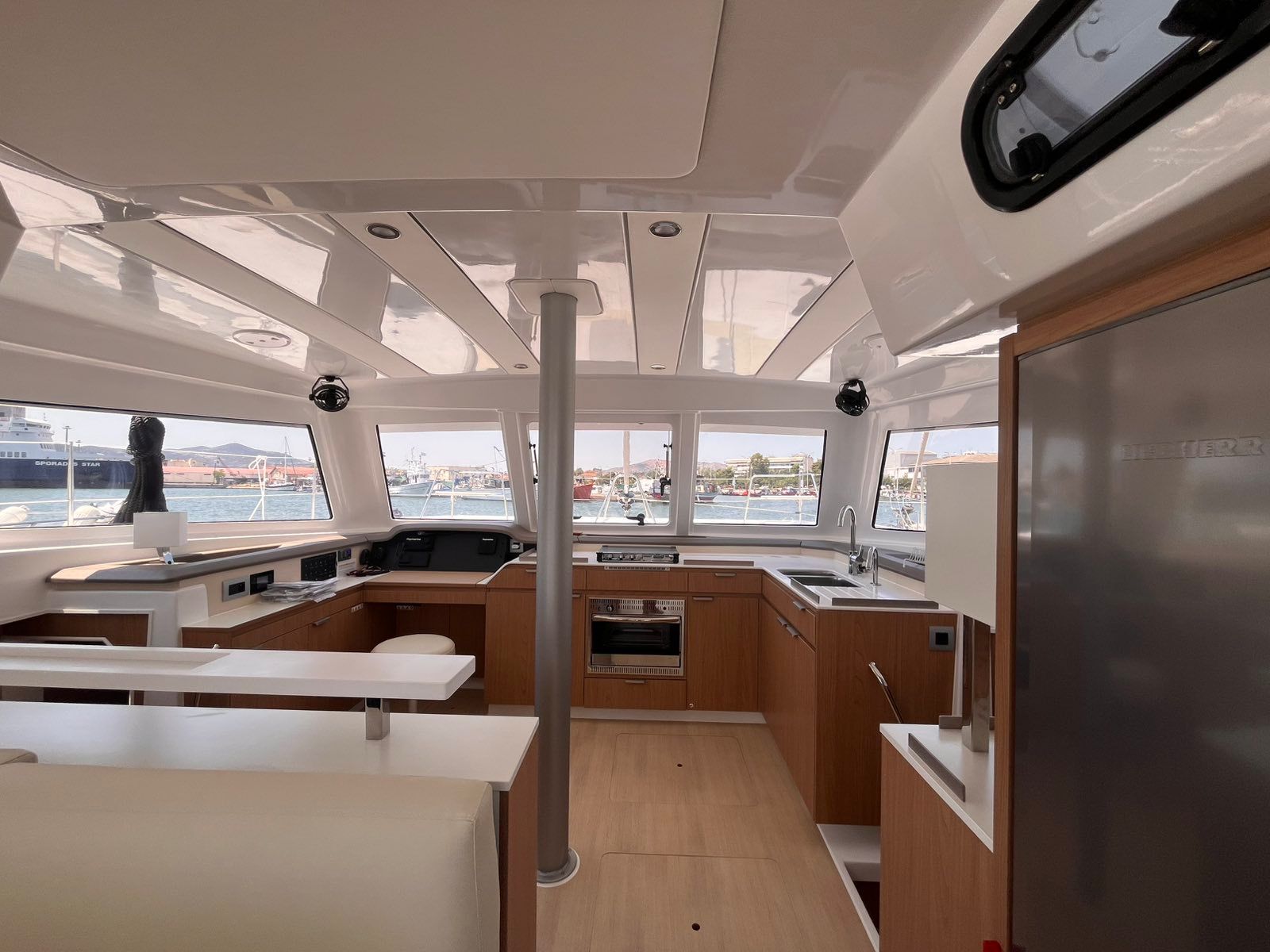 BiminiSprayhoodRadio-CD playerGangwayCockpit speakersDinghyElectric windlassIceboxCockpit tableHolding TankEnsuite WC/ShowerCockpit CushionsCockpit ShowerSwimming ladderElectric winchLateral sliding windowsBathing platformFlybridge Retractable main door to open space salon at bowTillerShore Power 220 VInflatable life raftEPIRBTorchFirst aid kitEmergency tillerSea AnchorBosun's chairNavigation lightsLife jacketsSafety harnessesHorse shoe buoyVHF StationFloating lightBox of flaresLazy jack with lazy bagIlly coffee machineHome RefrigeratorFreezerGalley Fully EquippedGas Stove OvenFusion player ra70n with bluetooth in salon and cockpitAft Cockpit/saloon fully open spaceFloating gadgetsAUDIO USB INPUTHot WaterFans (Cabin & saloon)Storage and bookcase in Chart table12 V Socket220 V SocketBattery ChargerInverterConverterRaymarine multifunction display *, color chartplotter*, autopilot control displayGPS PlotterDepth SounderGreek Waters PilotSpeed LogList of lightsVHFWind InstrumentsEPIRb