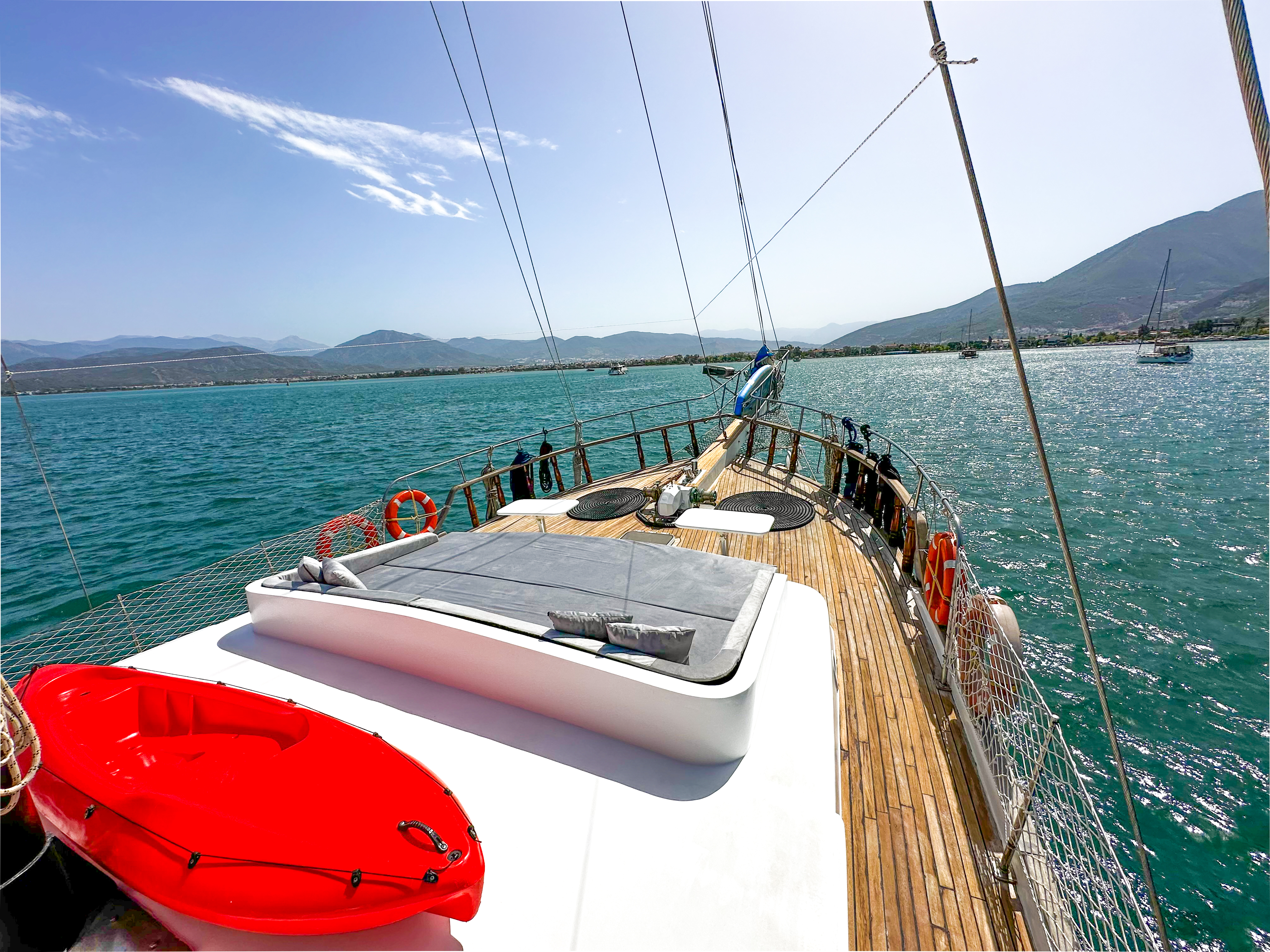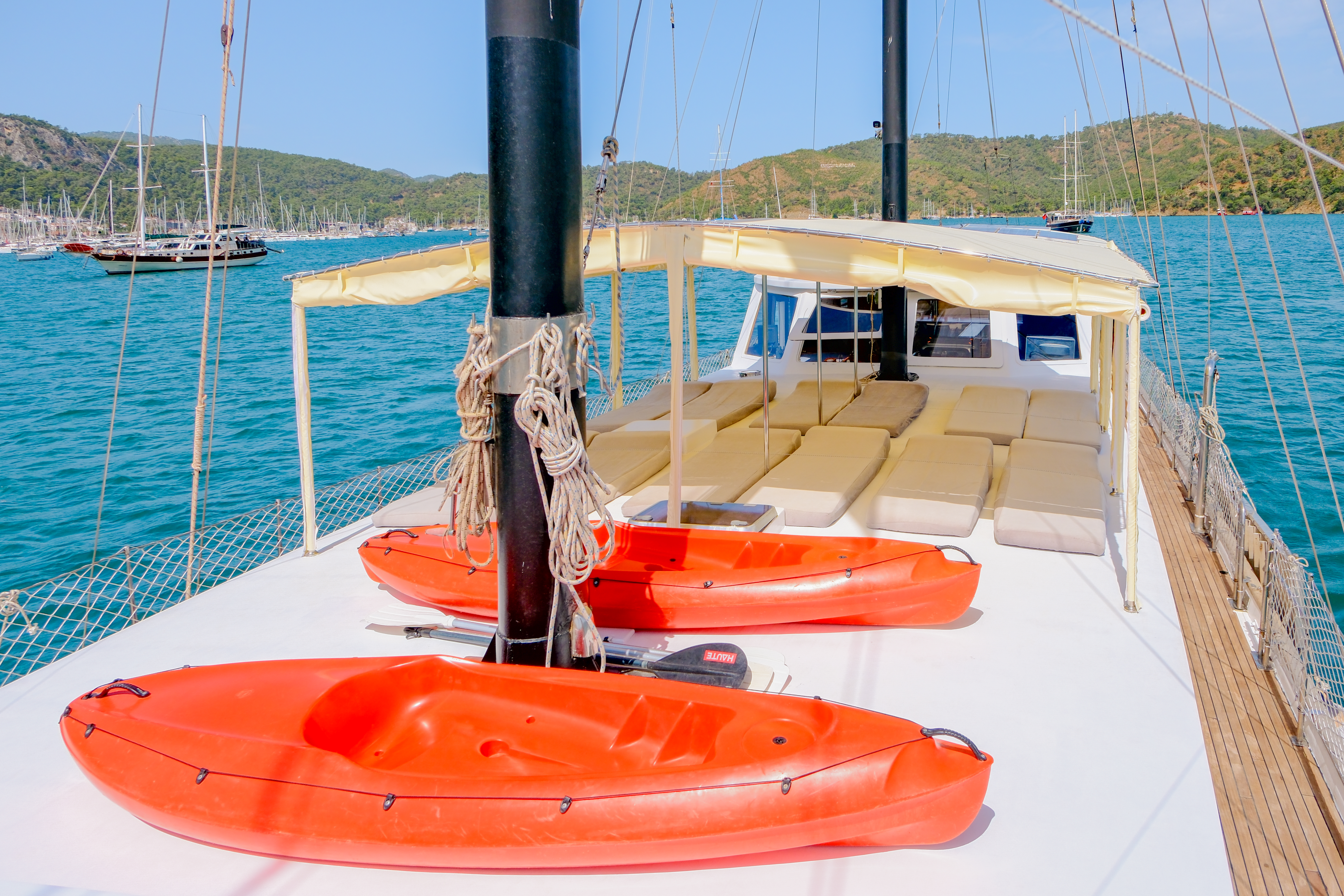 WiFiCotton linen hand, face, and body, beach towels, bathrobe and beddingSnorkel equipmentReading lightsBoard GamesAir ConditionHair dryerSunbedsLife vestsFirst aid kitFire extinguishersTripleDouble