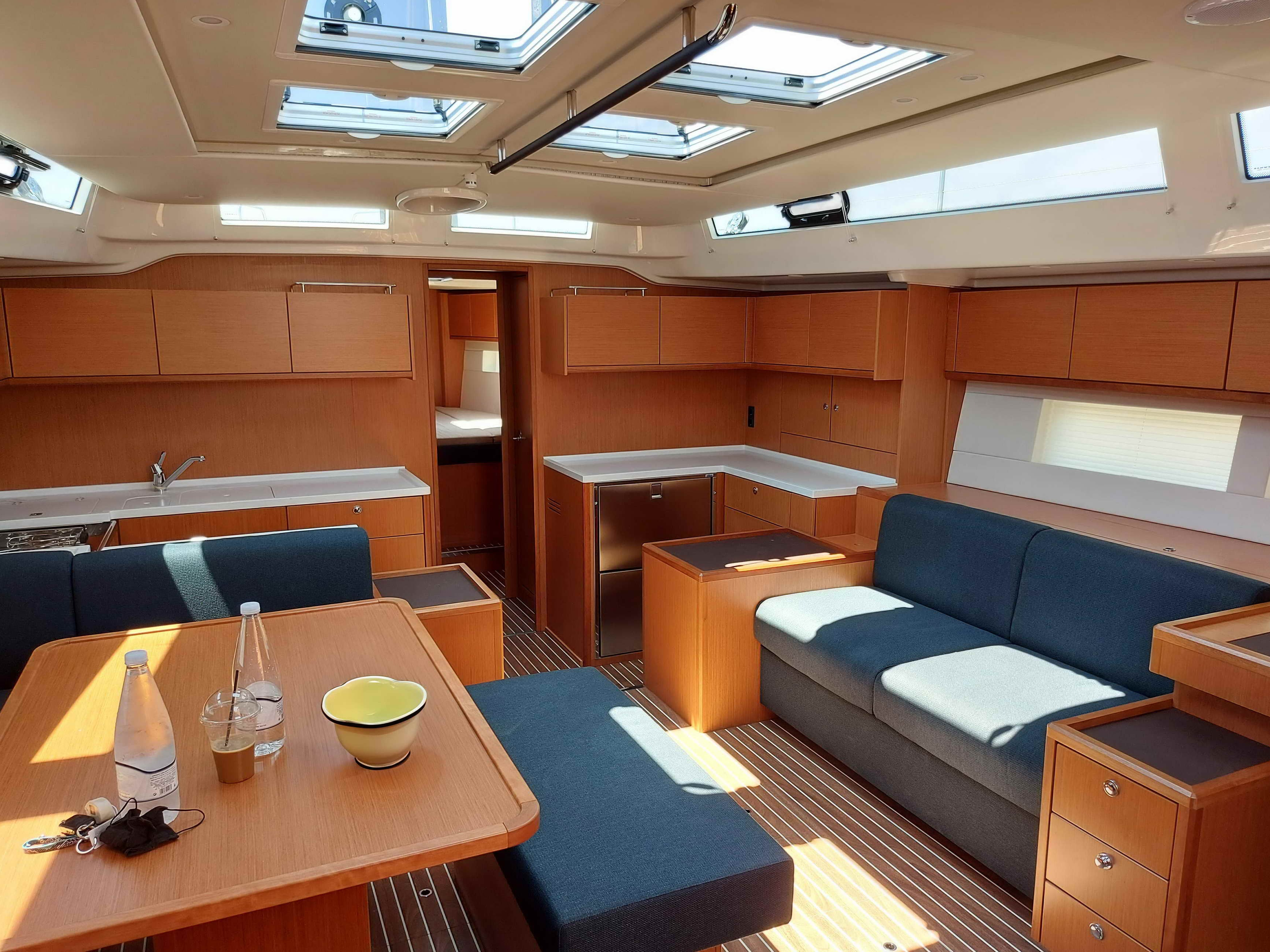 Cockpit cushionsAutopilotBow thrusterCompassGPSGPS chart plotterLogge/Lot/SpeedNautical chartsNavigation setWind instrument/AnemometerBlack Water TankFire extinguisherFirst aid kitFlashlightSafety equipmentSet of toolsVHF radio220V socketAir ConditionGeneratorSolar panelsWatermaker - desalinatorAnchorBimini topCockpit/stern, outside showerDeck brushDinghyElectric anchor windlassFendersFolding cockpit tableOutboard enginePlastic bucketSprayhoodTeak cockpitFreezerHot waterKitchen utensils (Galley equipment, cutlery)OvenRefrigeratorStoveElectric fans in cabinsInside showerFusion radioOutdoor speakersUSB - In the cabins