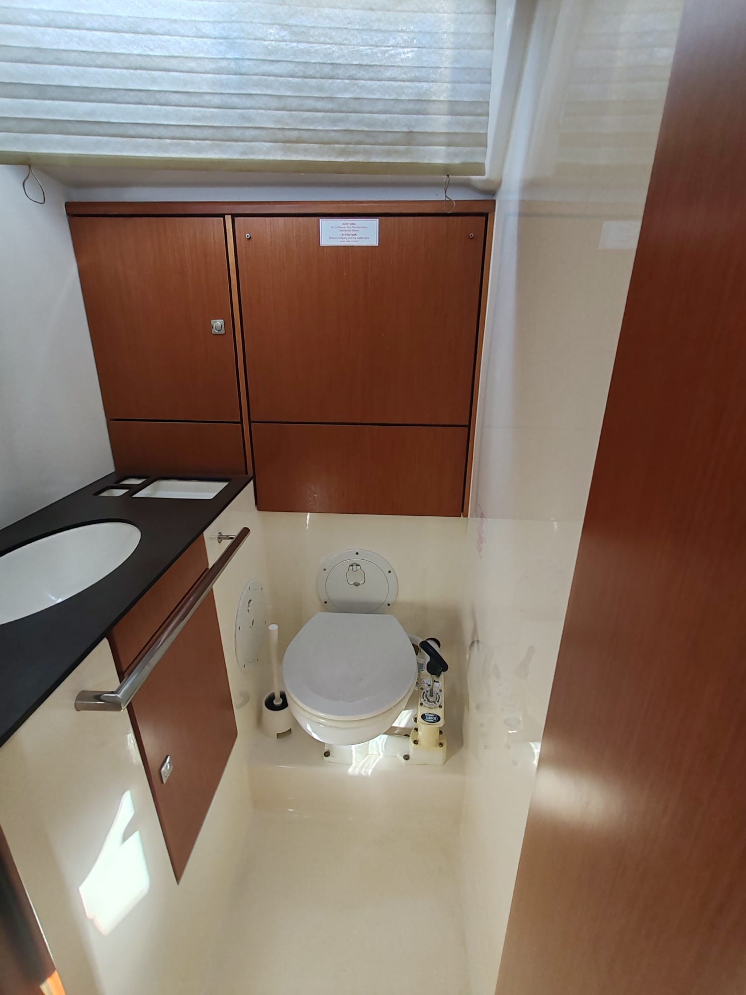Battery chargerShore connection 220 VAir condition (only with shore power connection)Solar panels 2x180WOutside speakersRadioHolding tankBarometerClockHand-held compass Inside shower Bed linenDinghy pumpFlashlightImpellerScreenSet of toolsV-beltoilfilterUSB socketAutopilotGPS chart plotter - cockpitNavigation setRadar reflectorWindexGPSHarbour guidesTridataNavigation (Nautical) charts and nautical guideBathing platformBimini topBoat hookCanister for waterCockpit tableCockpit/stern, outside showerDinghyElectric anchor windlassFendersGangwayJerry cans for dieselMain anchorPlastic bucketSprayhoodTeak cockpitAnchor lineAnchor swivelRound/globular fenderSpotlight / HeadlightsSpring lineWater hoseMooring ropesBonsun's chair (Safe seat) (boatswain's chair)Spare anchor (Reserve, Auxiliary anchor)Cockpit table with lightFire extinguisherFirst aid kitFog hornLife belts (Safety harness)Life buoy + Flashing lightLife jacketsLiferaftDistress signalsVHF radioGas bottlesHot waterMicrowaveOvenRefrigeratorIce boxKitchen utensils (Galley equipment, cutlery)Bow thrusterGenoa - furling - Renewed in 2023Main sail - furling - Renewed in 2023