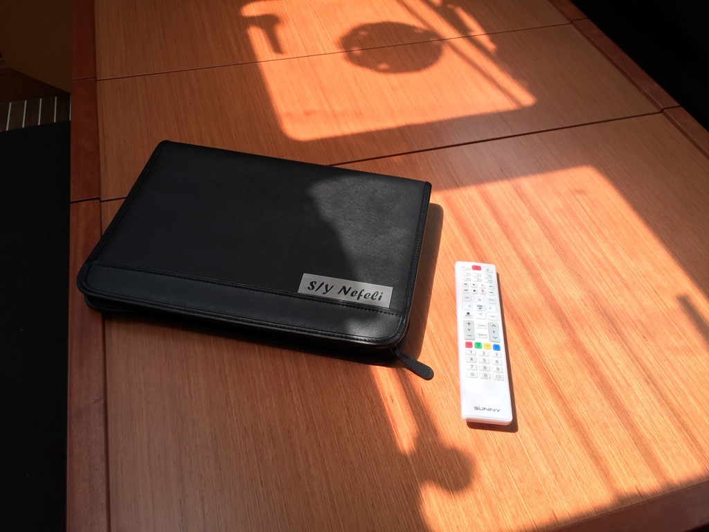 Cockpit cushionsAutopilotBow thrusterCompassGPSGPS chart plotterGPS chart plotter - cockpitLogge/Lot/SpeedNautical chartsNavigation setWind instrument/AnemometerBlack Water TankFire extinguisherFirst aid kitFlashlightSafety equipmentSet of toolsVHF radioSolar panelsAnchorBimini topCockpit/stern, outside showerDeck brushDinghyElectric anchor windlassFendersFolding cockpit tablePlastic bucketSprayhoodHot waterKitchen utensils (Galley equipment, cutlery)OvenRefrigeratorStoveElectric fansElectric toiletInside showerFusion radioOutdoor speakersTVUSB