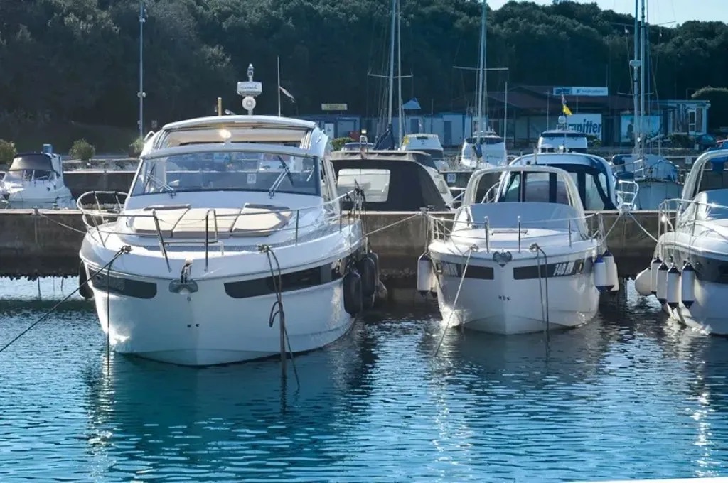 BiminiRefrigeratorVHF-radioBow thrusterBarometerAC 230V Shore powerHydraulic bathplatformIcemakerGPSAir conditioningDistress equipmentElectric anchorElectric cookerElectric toiletBattery chargerHot water systemFire extinguisherBathing ladderElectric bilge pumpCoffee machineFirst aid kitEcho sounderLife jacketsGPS Chart plotterFusion audio systemAutopilotRadarJoystick ControlNavigation setGeneratorLED lighting on the side walks Hard-Soft Top electric Anchor winch Wetbar and refrigerator furniture in cockpitTeak in the cockpitSearchlightAnchor chain counter Teak on bathing platformLED underwater lights