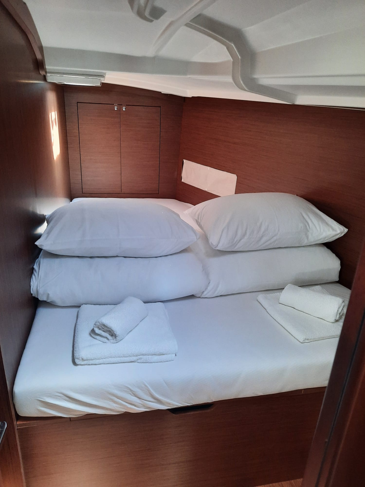 Solar panels 2x135 WGenerator 220VACRadio playerWI-FI InternetUSB, BT, AUX connectionShore power cable 25mAir conditioner (shore power)Gas cooker with ovenWater heaterRefrigerator (el. fridge) insideKitchen equipmentAdditional water tank 330 LCockpit speakersBiminiOutboard engineDinghyElectric anchor windlassDeck showerCockpit tableSun shadeSignal flares, rocketsLife raftFire estinguishers CO2First aid boxFire axeElectronic instr. (depth, speed, log)Bow thrusterAutopilotAnchor control from the cockpitShallow keel (1.7 m)GPS plotter Axiom 7