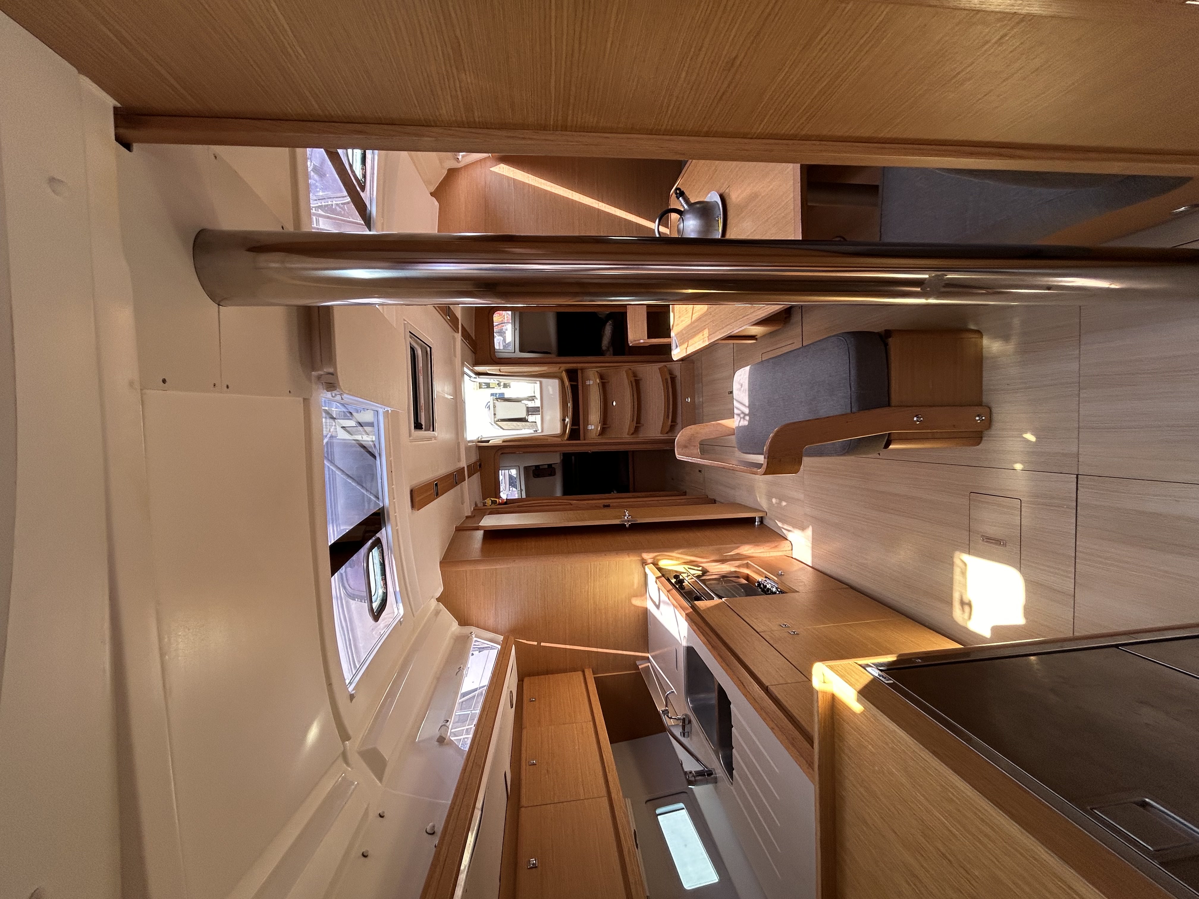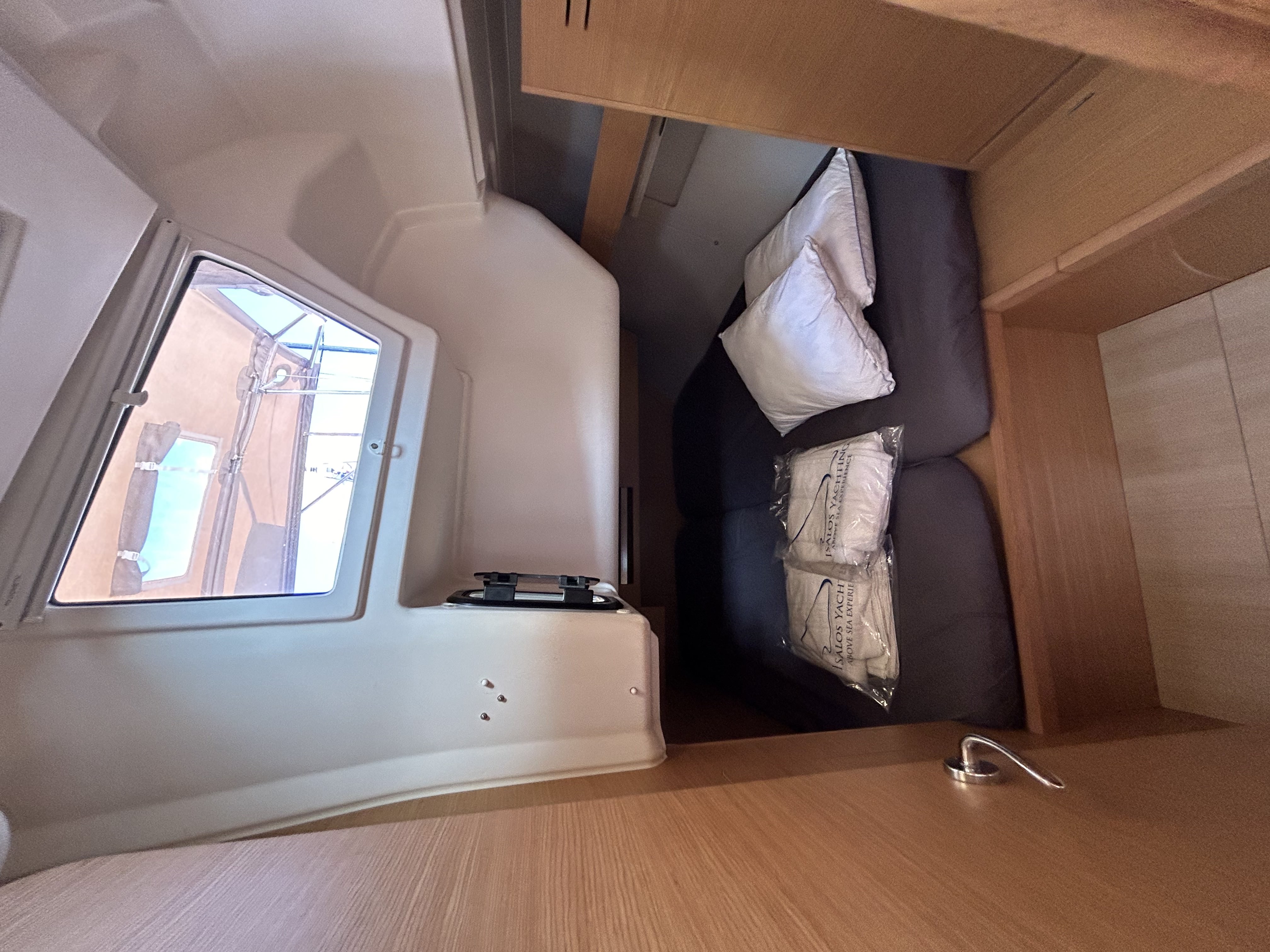 12V plug on the control panel220V shore connection with shore power cable220V socket in each cabinBimini topFolding cockpit table Folding saloon table with extra cushion for additional berth in saloonHot water shower in cockpitISOTHERM Electrical FridgeSolar panelSwimming platform with lifting mechansmTwin white steering wheelsBow thrusterDinghyLazy bagLazy jackRadio/USB Player with outside speackersSprayhoodRaymarine i70 wind, speed depth sounderWather heater12V/220V converter 300WFull batten main sailRaymarine Evolution autopilot P70Raymarine GPS AXIOM 7Additional fridgeDeck gas barbeque with sink