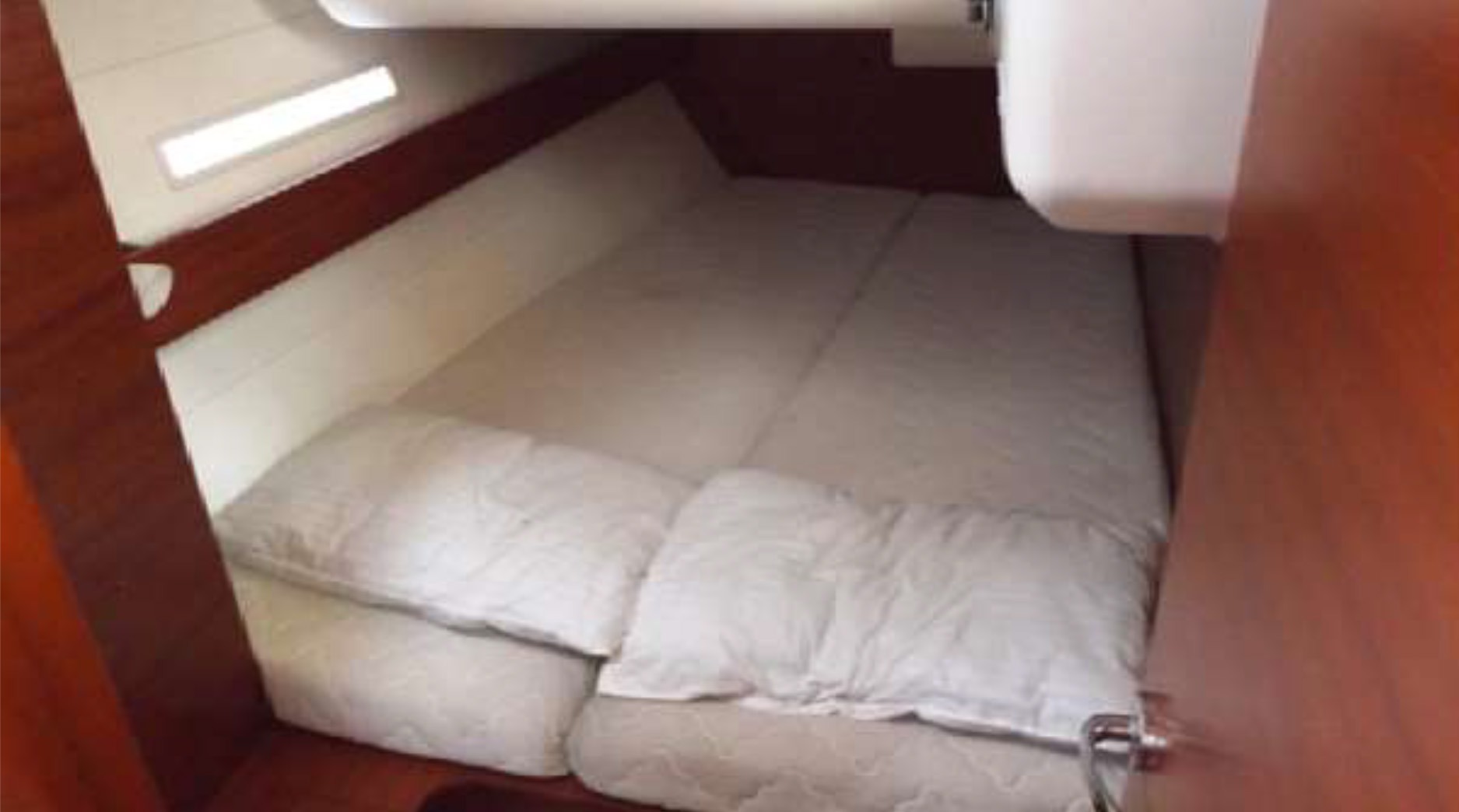 Cockpit cushionsLazy bagLazy jacksAutopilotCompassGPSGPS chart plotterLogge/Lot/SpeedNautical chartsNavigation setWind instrument/AnemometerBlack Water TankFire extinguisherFirst aid kitFlashlightSafety equipmentSet of toolsVHF radioAnchorBimini topCockpit/stern, outside showerDeck brushDinghyElectric anchor windlassFendersFolding cockpit tablePlastic bucketSprayhoodHot waterKitchen utensils (Galley equipment, cutlery)OvenRefrigeratorStoveInside showerFusion radioOutdoor speakersUSB