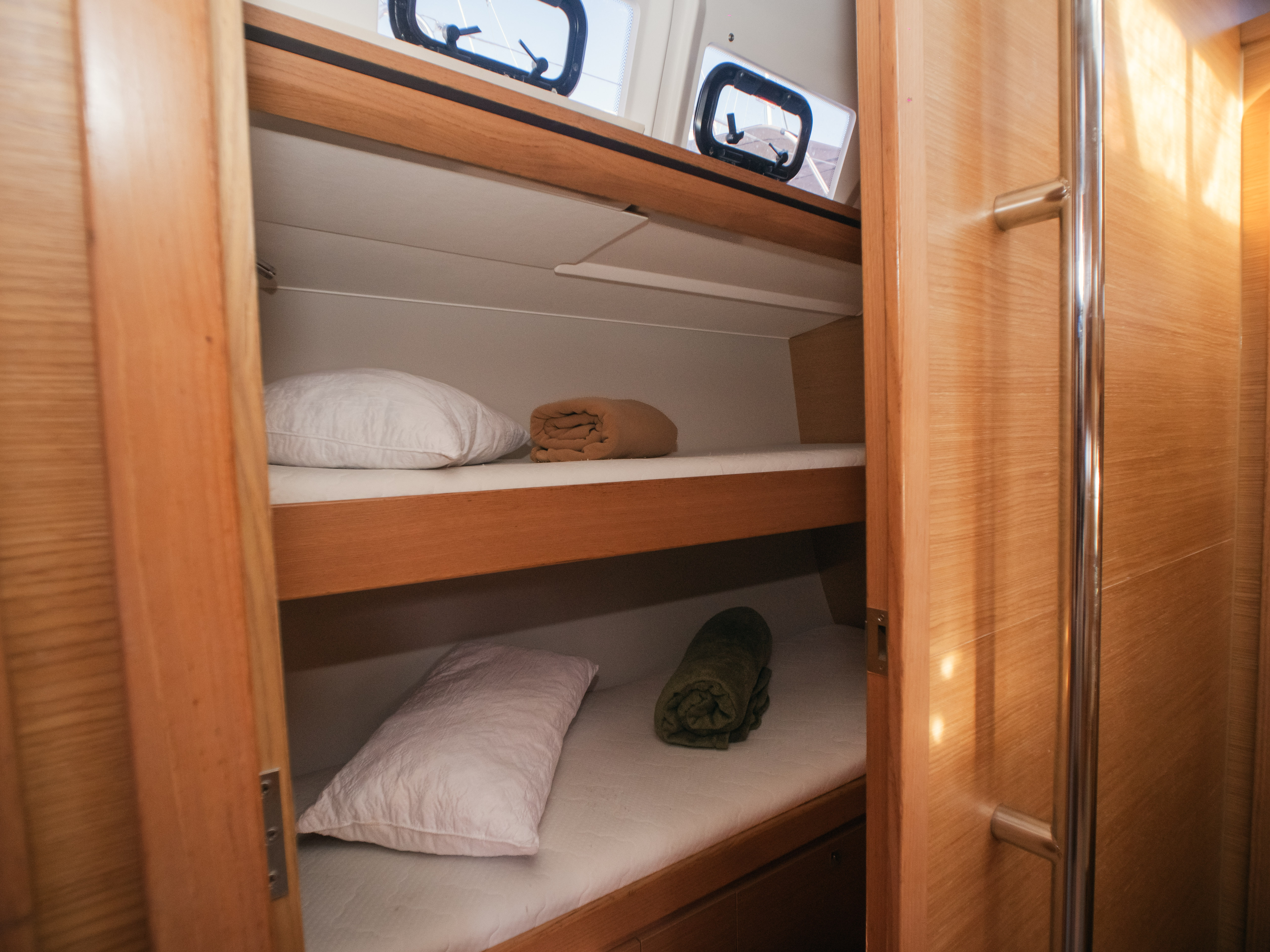 MS FUSION Player 2 loudspeakers in salon + 2 outsideHelm seat cushions Dark GreyFlag halyards on spreadersIndirect lighting in cabins and salonWaterproof loudspeakers in cockpitElectric seawater pumpComposite bimini with windscreen at helm stationInverter 12/220 VFans in salon and cabinsFully equipped kitchenNautical charts for Sardinia & CorsicaHandheld compassPilot Book (IT/EN/DE/FR)TorchFrench & Corsican FlagsBinocularsDividers, Triangle, pencilsBook of Lights and SignalsSteering wheelJet ThrusterAutopilotWind indicatorAnemometerGPS chartplotter VHF RadioWind instrumentsRefrigeratorGas stove with OvenAir conditioningMicrowave OvenPillows & BlanketsGeneratorRadio + USB + BluetoothDouble berth in salonFans in salon and cabins220v boilerInverterFreezerCoffee machineElectric WCFully equipped kitchenBiminiSprayhoodElectrical WinchElectrical Windlassanchor with chainSecond AnchorBoat HookWater Hose & AdaptorsGangwayAdditional Ropes1 Mask & snorkelBucket, cleaning Brush, SpongePegs & washbasinCockpit tableOutside speakersExternal showerExternal grillElectric opening bathing platformPermateak cockpit1 x FridgeExternal CushionsGennaker HalyardFendersExternal cockpit lightLifejacketsLife HarnessesFirst Aid KitEmergency tillerFire extinguisherEmergency FlaresTool kitBlack Cone & BallAirhornSignal Rockets and FlaresLife buoy with line and ledFurling MainsailJIB
