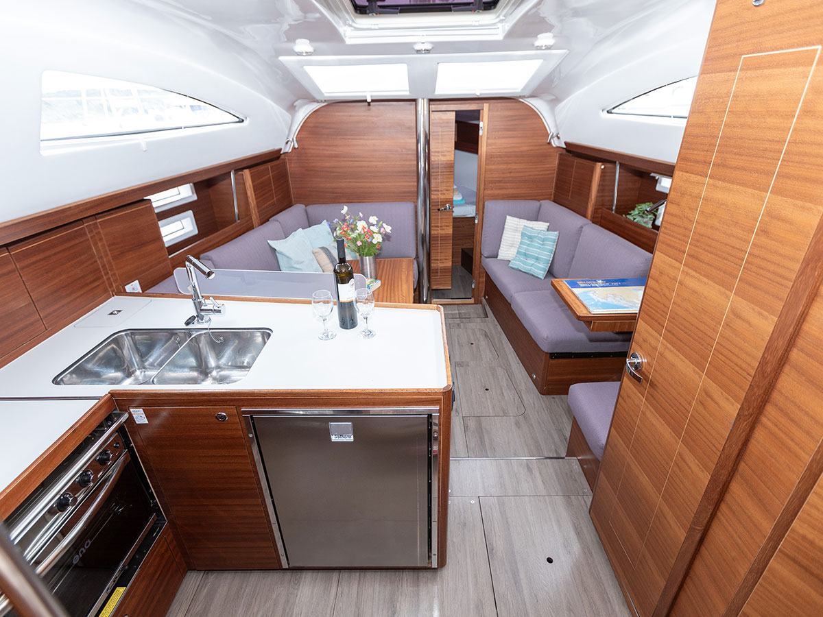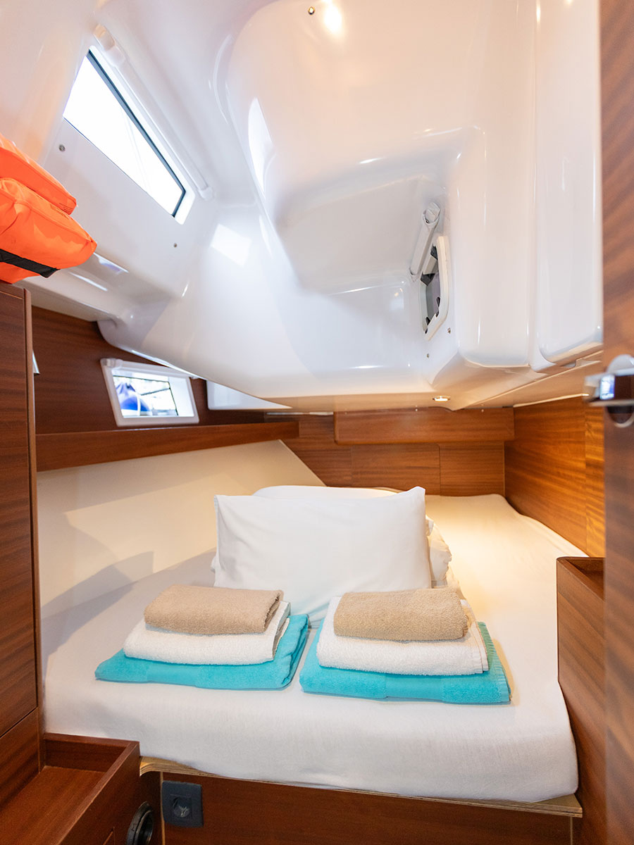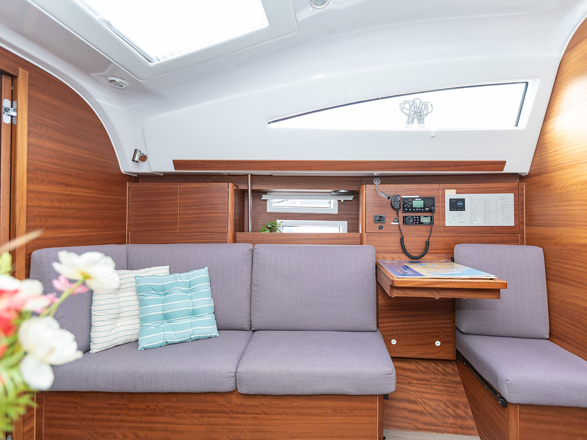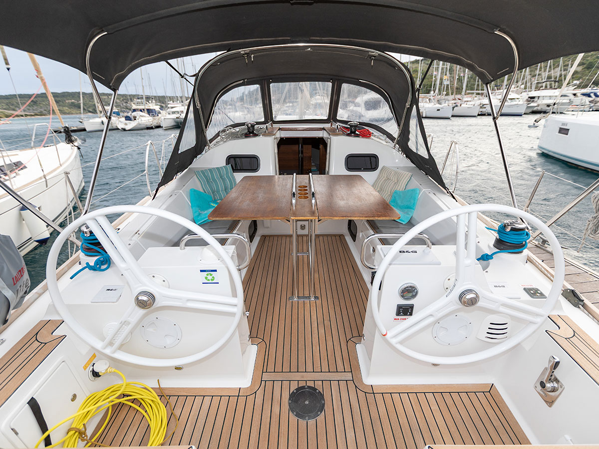 Teak cockpitSprayhood with integrated handrailBiminiStern shower hot and coldCockpit speakersBathing ladderCockpit cushionsOutboard engine Honda 2,3 hpGrill in cockpitFridge in cockpitLarge ocean bathing platform with teakComposite steering wheel Transom seatsGuard rail exitsTeak cockpit tableTVSaloon speakersExtra berth in saloonFusion radio MP3 bluetoothCooker and sink coversDouble sinkALU gas bootle130L front opening refrigeratorUSB socketTwo ring stove with ovenWater heatingHeating WebastoBattery chargerInverterSocket in each cabin galley and head 230VShore connection installation with 15m cableSpare anchor with chain and ropeMain anchorCalibrated anchor chainLifebuoyFirst aid kitDistress flaresSmoke detectorFire extinguisherSafety harnessLife jackets solidLED navigation and interior lightsAmbient LED lightsAutopilot BGDeep meter BGGPS plotter BG in cockpitWind indicator BGSpeed meter BGVHF radio - DSCWindexHolding tankAnchor Lewmar Delta with 50m chain3 blade folding propeller Flex-o-foldWinch in cockpit Bow thrusterGenoa furlingFurling main sailElectric windlass