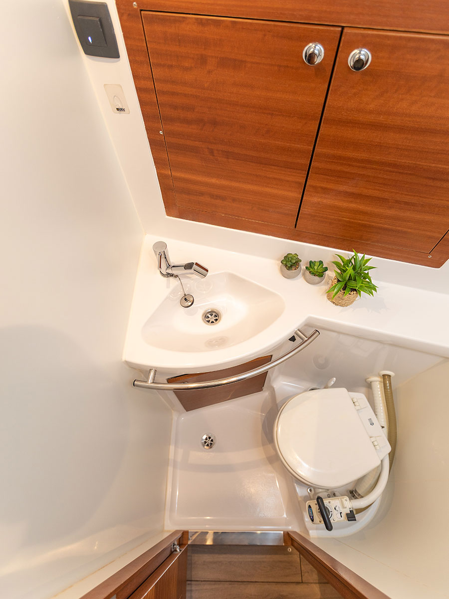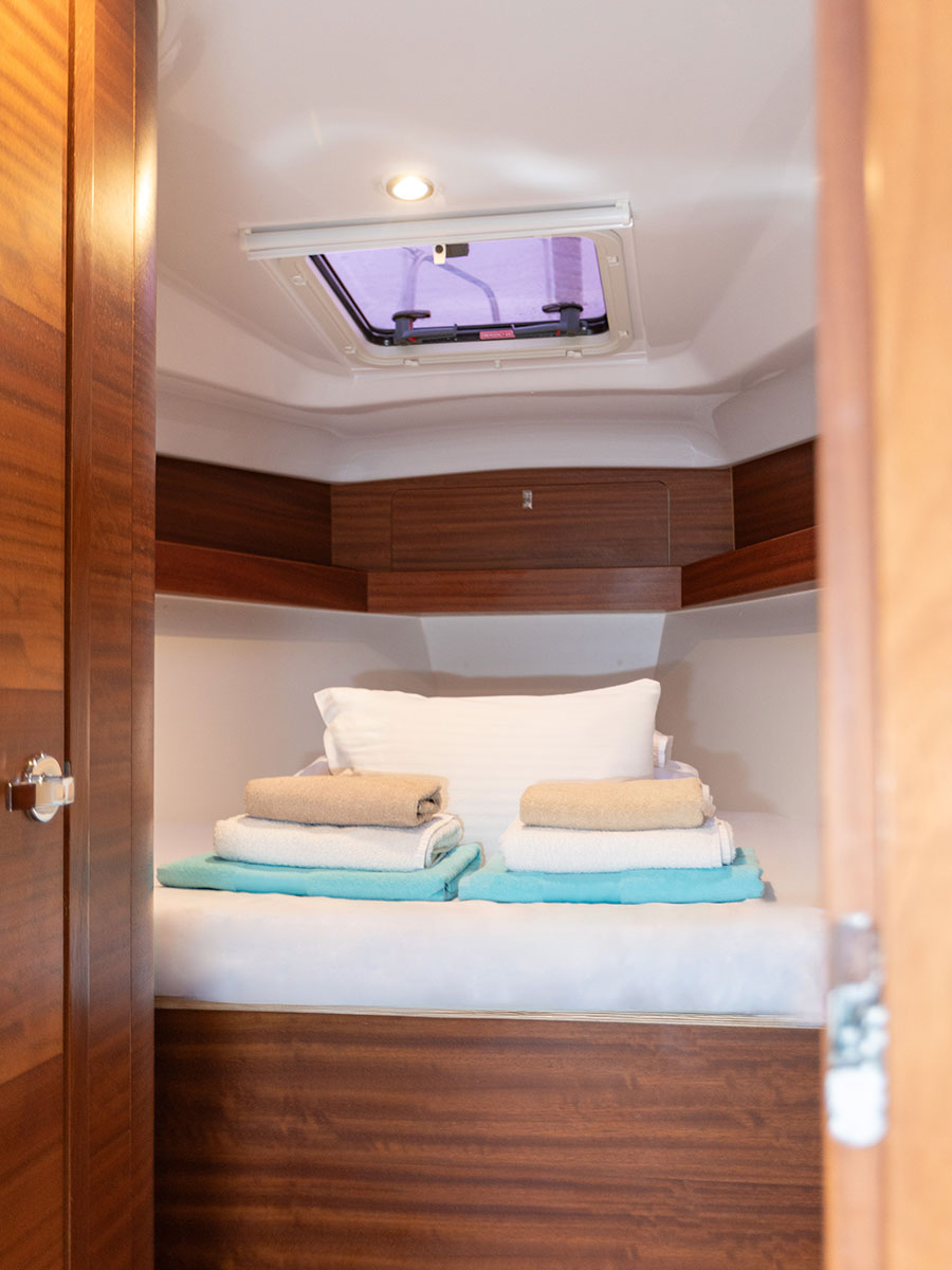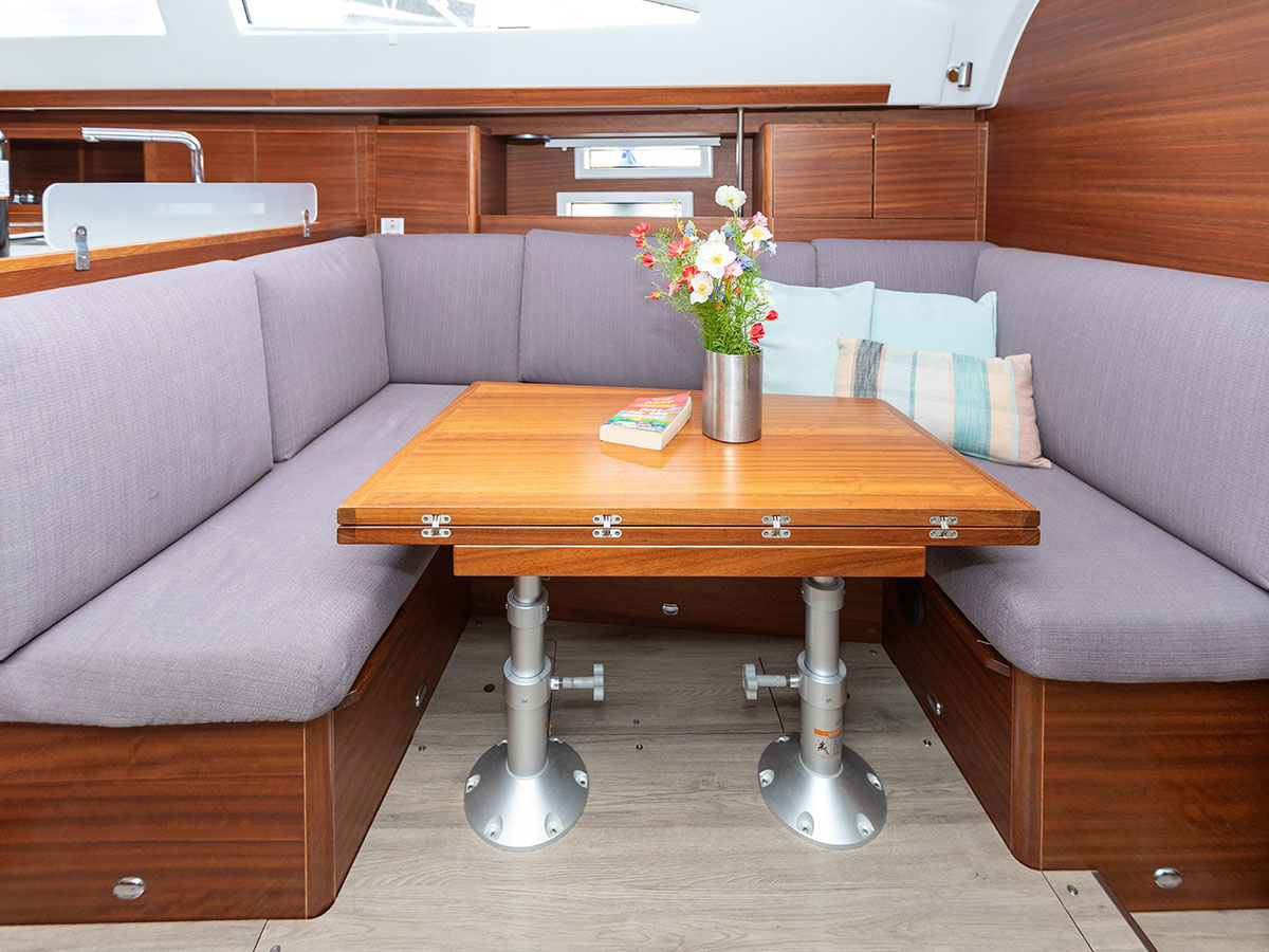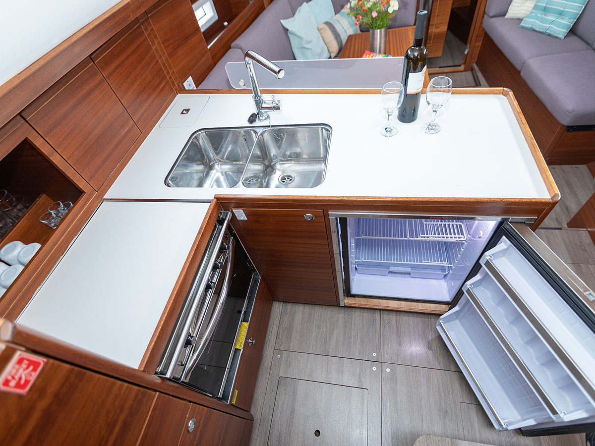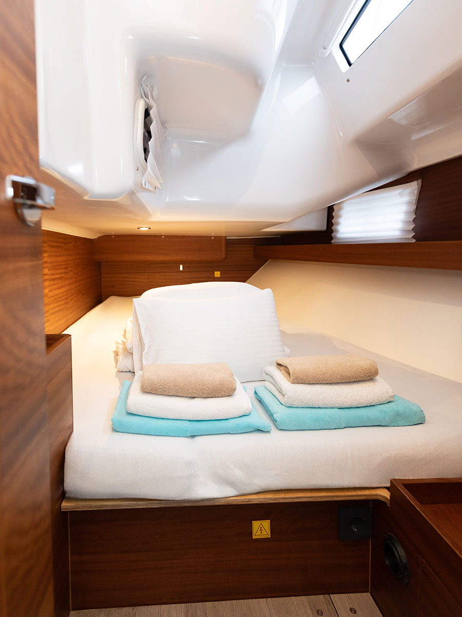 Teak cockpitSprayhood with integrated handrailBiminiStern shower hot and coldCockpit speakersBathing ladderCockpit cushionsOutboard engine Honda 2,3 hpGrill in cockpitFridge in cockpitLarge ocean bathing platform with teakComposite steering wheel Transom seatsGuard rail exitsTeak cockpit tableTVSaloon speakersExtra berth in saloonFusion radio MP3 bluetoothCooker and sink coversDouble sinkALU gas bootle130L front opening refrigeratorUSB socketTwo ring stove with ovenWater heatingHeating WebastoBattery chargerInverterSocket in each cabin galley and head 230VShore connection installation with 15m cableSpare anchor with chain and ropeMain anchorCalibrated anchor chainLifebuoyFirst aid kitDistress flaresSmoke detectorFire extinguisherSafety harnessLife jackets solidLED navigation and interior lightsAmbient LED lightsAutopilot BGDeep meter BGGPS plotter BG in cockpitWind indicator BGSpeed meter BGVHF radio - DSCWindexHolding tankAnchor Lewmar Delta with 50m chain3 blade folding propeller Flex-o-foldWinch in cockpit Bow thrusterGenoa furlingFurling main sailElectric windlass