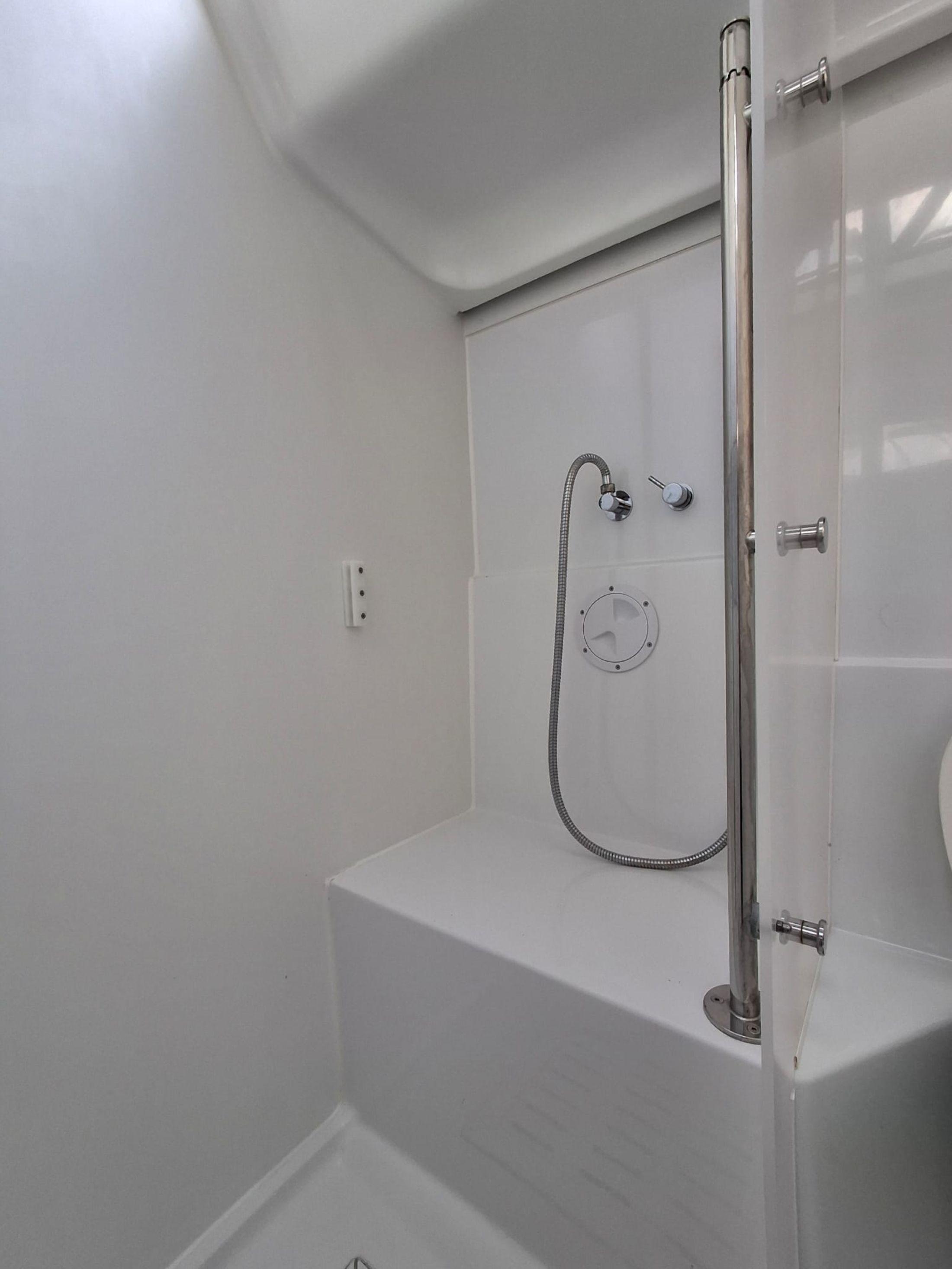 Bimini topBathing platformGangwaySprayhoodTeak cockpitCockpit tableCockpit/stern outside showerSwimming ladderDinghy + pumpOutboard engineMain anchorMooring ropesPlastic bucketSpare anchor (reserve, auxiliary anchor)Winch handlesImpeller, V-belt, oilfilterElectric anchor windlassAnchor swivelBlack ball Boat hookFendersSpring lineWater hoseFirst aid kitFog hornHorseshoe lifebouyLife jackets per personDistress flare boxLife belts (Safety harness x2)Distress signalsSet of toolsVHF radioFlashlightFire extinguisherLiferaftFurling main sailFurling genoaRefrigeratorHot waterMoka potSinkKitchen utensils (Galley equipment, cutlery)Gas bottlesStoveOutdoor speakersBluetooth playerIndoor speakersWi-Fi internet (unlimited)Bow thrusterCompassDeptsounderGPS chart plotter - cockpitBinocularsNavigation setHarbour guidesNavigation (Nautical) charts and nautical guideWindexRadar reflectorHand bearing compassAutopilotComposite steering wheelsLogge/Lot/Speed/Wind-tridataBilge pump handleCabin cushions/pillowsDuvet + coverConvertible saloon tableBatteriesBattery chargerBilge pump - Electric230 volt socket220V socketSolar panels