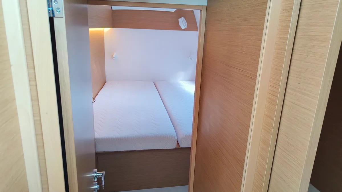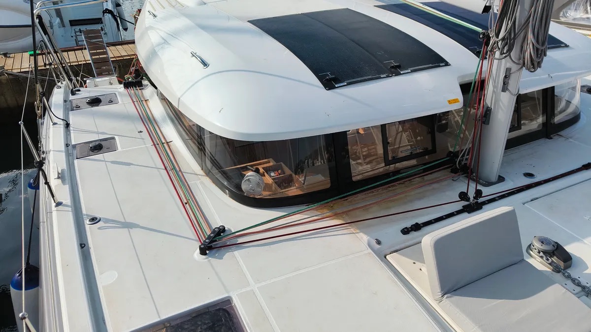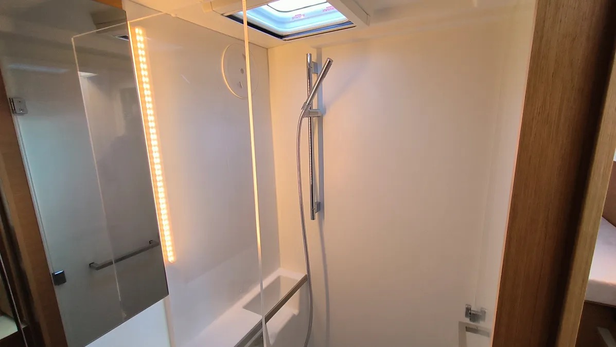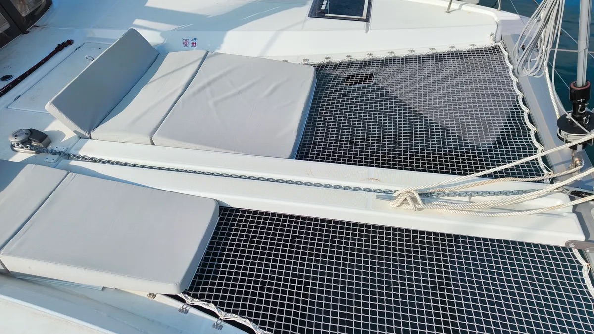 Cockpit cushionsLazy bagLazy jacksAutopilotCompassGPSGPS chart plotterLogge/Lot/SpeedNautical chartsNavigation setWind instrument/AnemometerBlack Water TankFire extinguisherFirst aid kitFlashlightSafety equipmentSet of toolsVHF radioSolar panelsWatermaker - desalinatorAnchorBimini topCockpit/stern, outside showerDeck brushDinghyElectric anchor windlassFendersPlastic bucketSprayhoodHot waterKitchen utensils (Galley equipment, cutlery)OvenRefrigeratorStoveElectric fans in cabinsElectric toiletInside showerFusion radioOutdoor speakersUSB