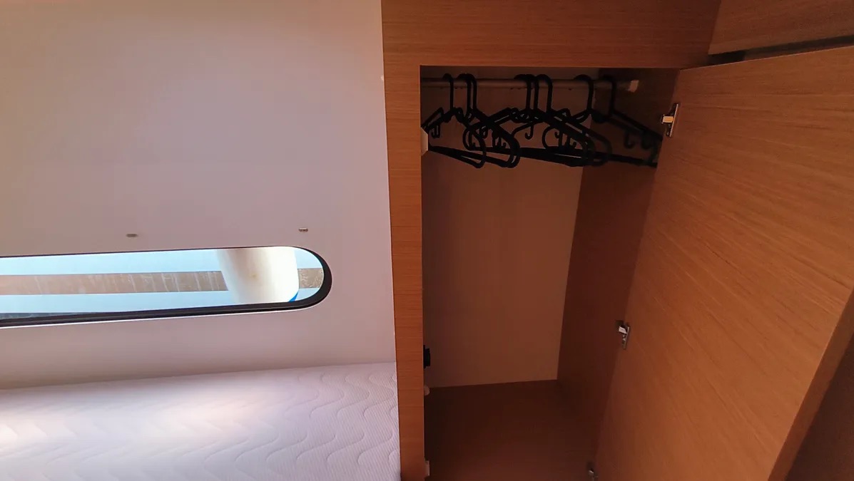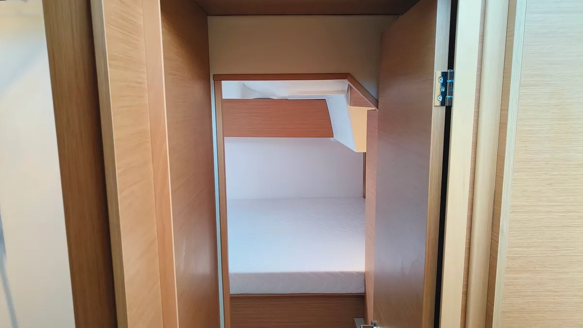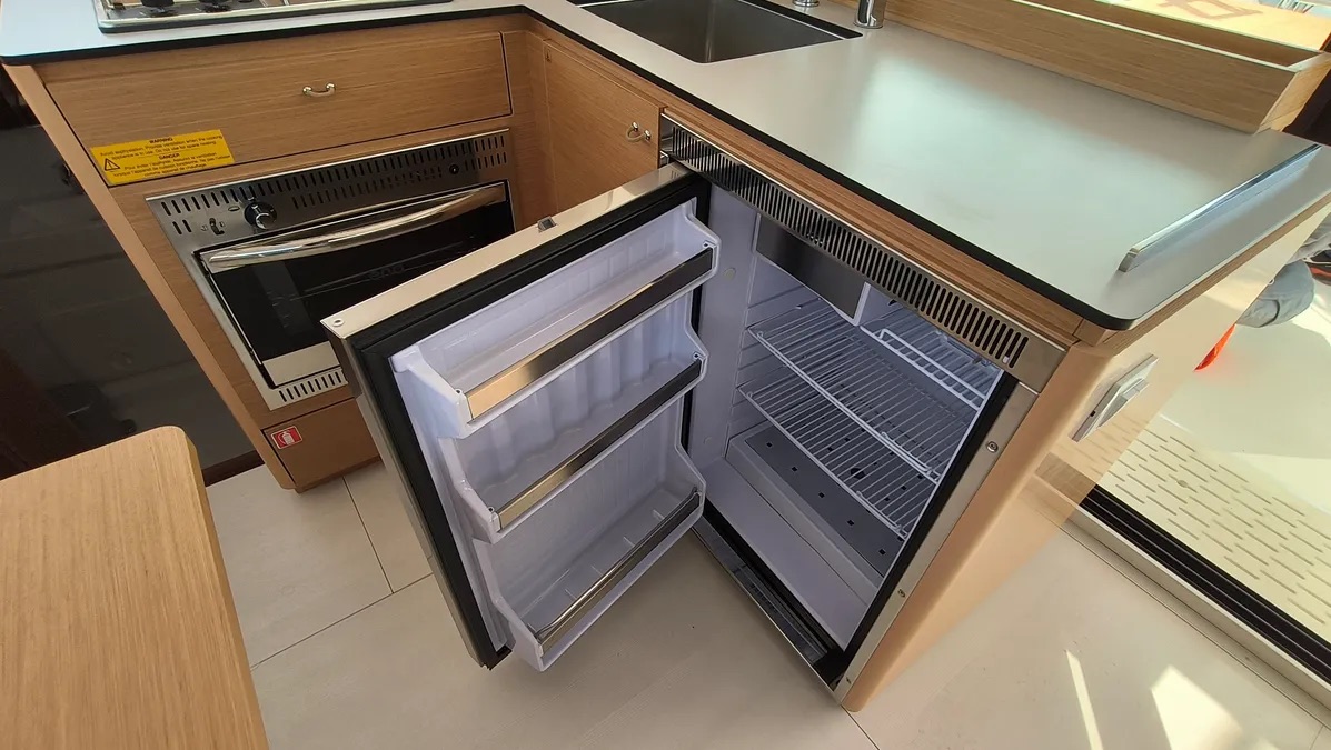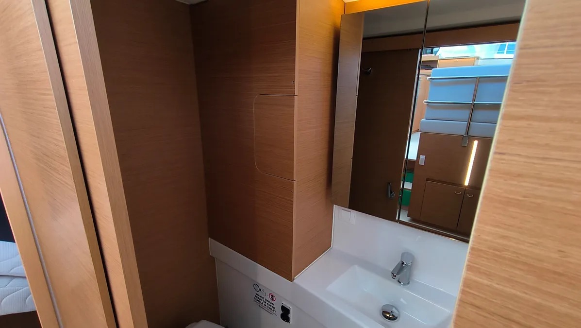 Cockpit cushionsLazy bagLazy jacksAutopilotCompassGPSGPS chart plotterLogge/Lot/SpeedNautical chartsNavigation setWind instrument/AnemometerBlack Water TankFire extinguisherFirst aid kitFlashlightSafety equipmentSet of toolsVHF radioSolar panelsWatermaker - desalinatorAnchorBimini topCockpit/stern, outside showerDeck brushDinghyElectric anchor windlassFendersPlastic bucketSprayhoodHot waterKitchen utensils (Galley equipment, cutlery)OvenRefrigeratorStoveElectric fans in cabinsElectric toiletInside showerFusion radioOutdoor speakersUSB