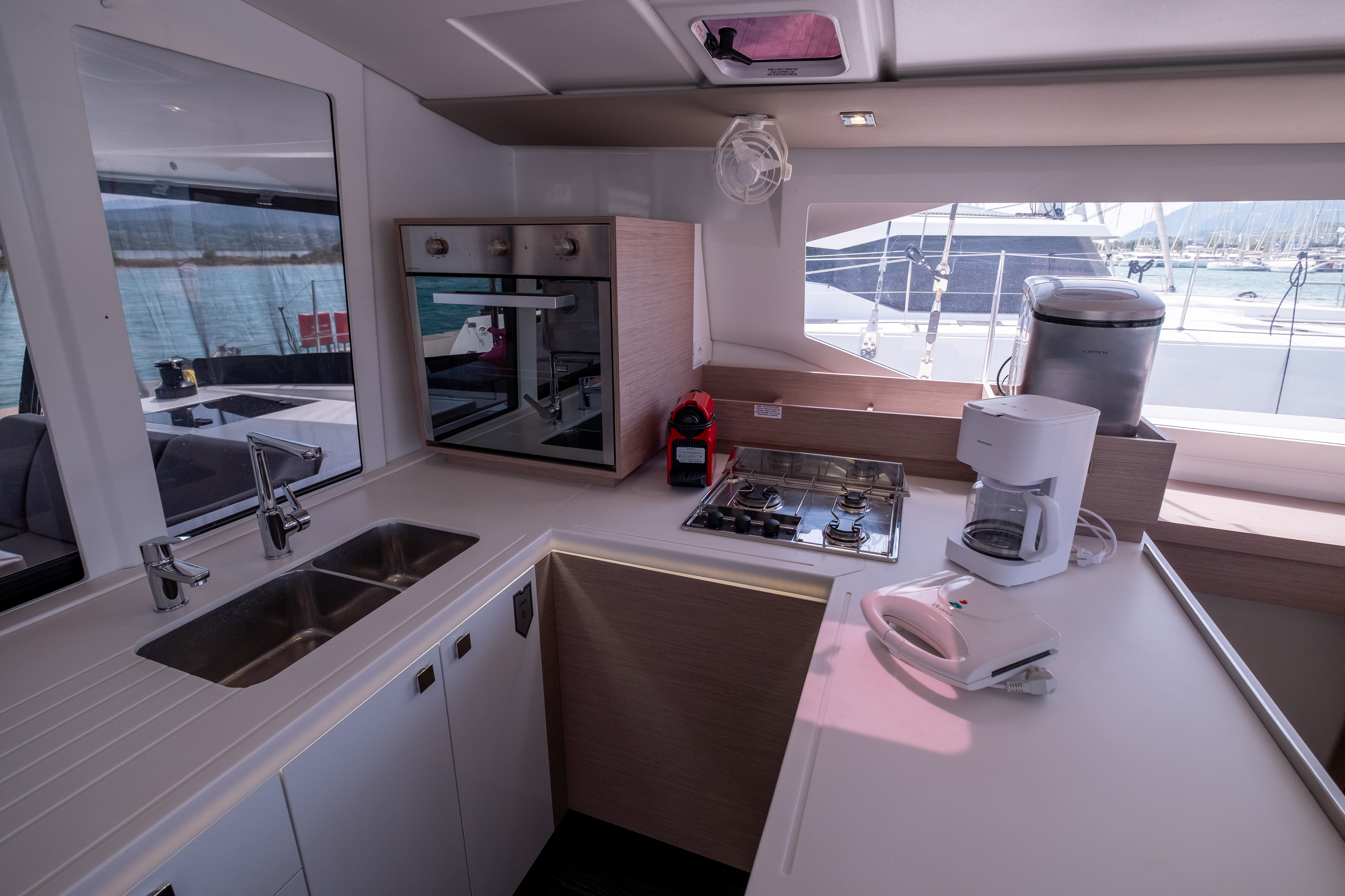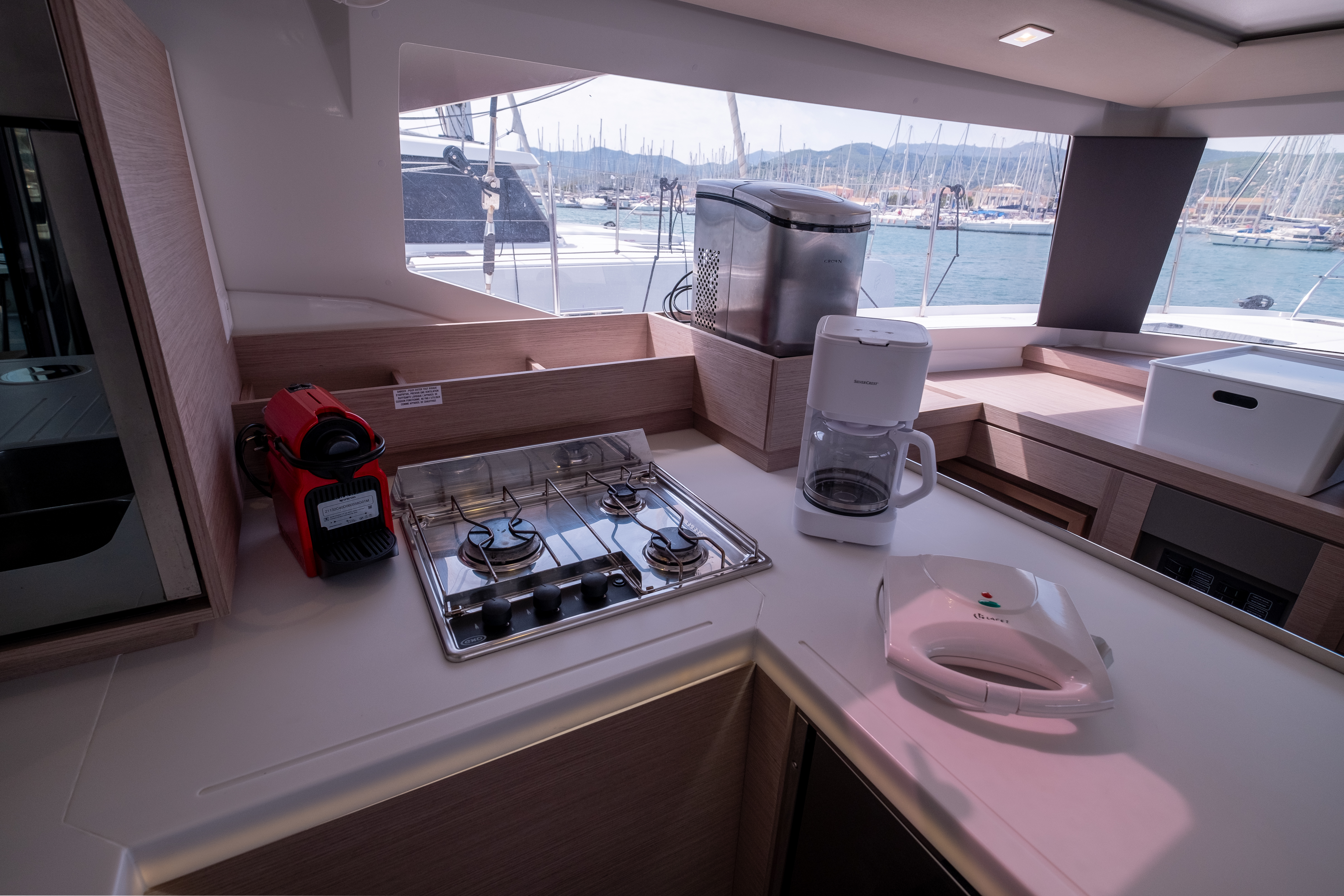 Aft. portholes in aft. cabins with curtains Par breeze cover Double berth in salon 12V freezerGarmin autopilot Garmin VHF 2nd VHF at helm station Garmin GPSGarmin 2 multi GMI20 Waterproof loudspeakers in cockpit TV 32" AutopilotGeneratorWatermakerSolar panelsQuiet flush electric toiletsUnderwater lightingInverter 2000WMicrowave ovenElectric davit winchGenoaLazy bagLazy jacksElectric coachroof winch2 x 50 HP (Volvo Penta)USB socketsInterior courtesy LED lighting220V main grid 220v 50hzStandard charter equipment