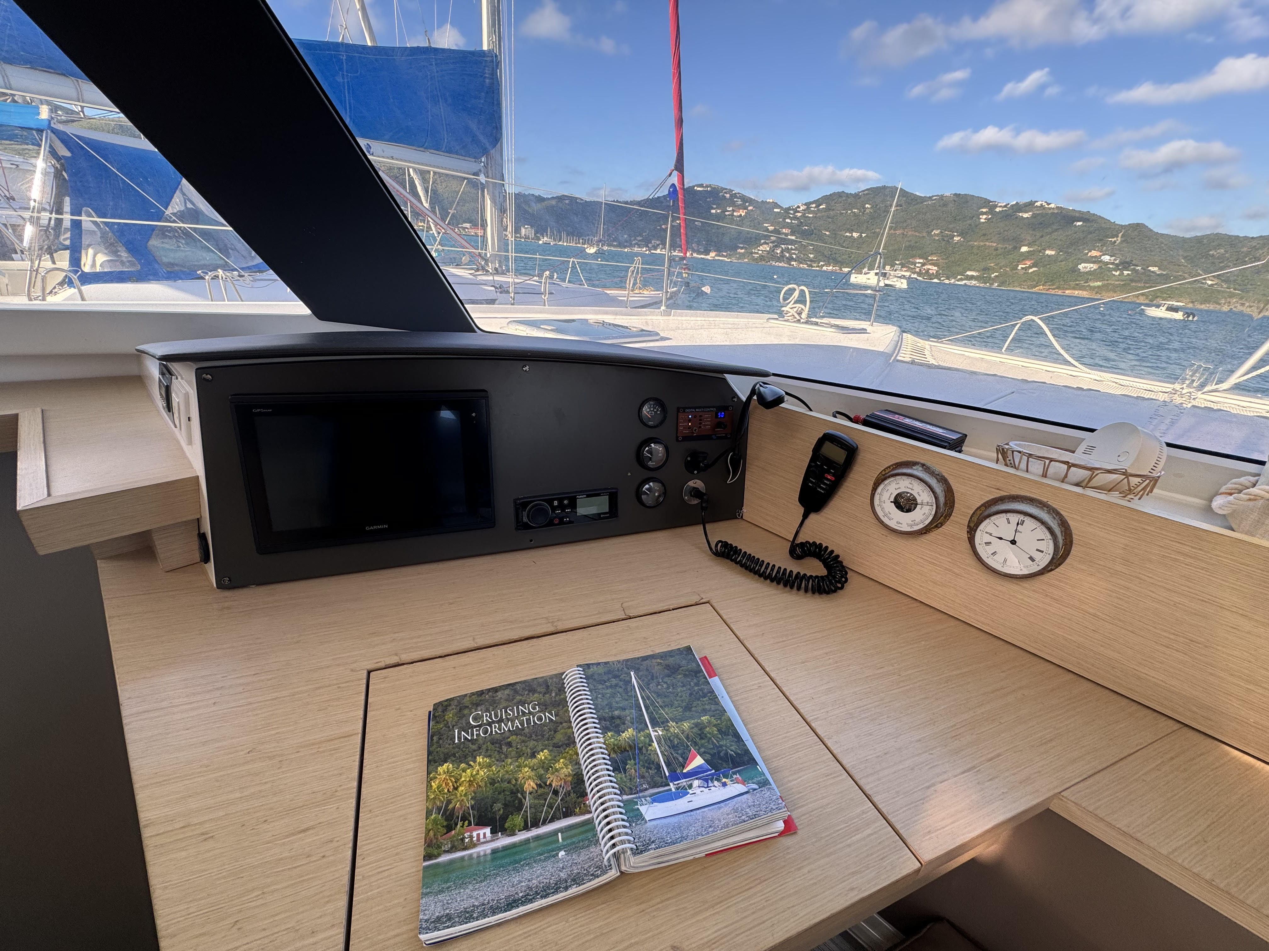VHF RadioEmergency TillerBungsTool KitFlashlightHorseshoe BuoyFirst Aid KitLife PreserversEmergency FlaresFire ExtinguishersCutlery, Crockery & GlassesCoffee MakerRefrigeratorPropane Stove & OvenToasterMicrowaveBlenderSaucepansFrying PansSelection of Basic Cooking UtensilsSelection of Basic Serving bowls & UtensilsVirgin Islands Navigation ChartsVirgin Islands Cruising GuideDividersParallel RulersCompassBinocularsDepth GaugeNavigation InstrumentsCell PhoneSnorkel Gear (Free Rental)CoolerSailProof Tablet with Backup NavionicsWiFi Unit (Rental)Barbecue GrillInverterToilet PaperPaper TowelsLined Waste Paper BasketDish SoapHand SoapDish TowelDish Washing ClothBottle of Conch Superior Rum and WaterBags of IceBox of MatchesDinghy & OutboardStrop & LockAnchor, Oars & PumpFull tank of FuelBilge PumpDust Pan & BrushesClothes HangerWindscoopsA/CInterior SpeakersGeneratorFansWindexWinch handlesDepth sounderDock LinesFendersBoat hookCockpit LightDeck Brush & BucketCockpit CushionsElectric WindlassFull Batten Main SailRoller Furling JibHalyard Winch, ElectricDavitsAnchorsCockpit SpeakersBiminiFlat SheetsBath TowelsPillow & Pillow CaseBlanket