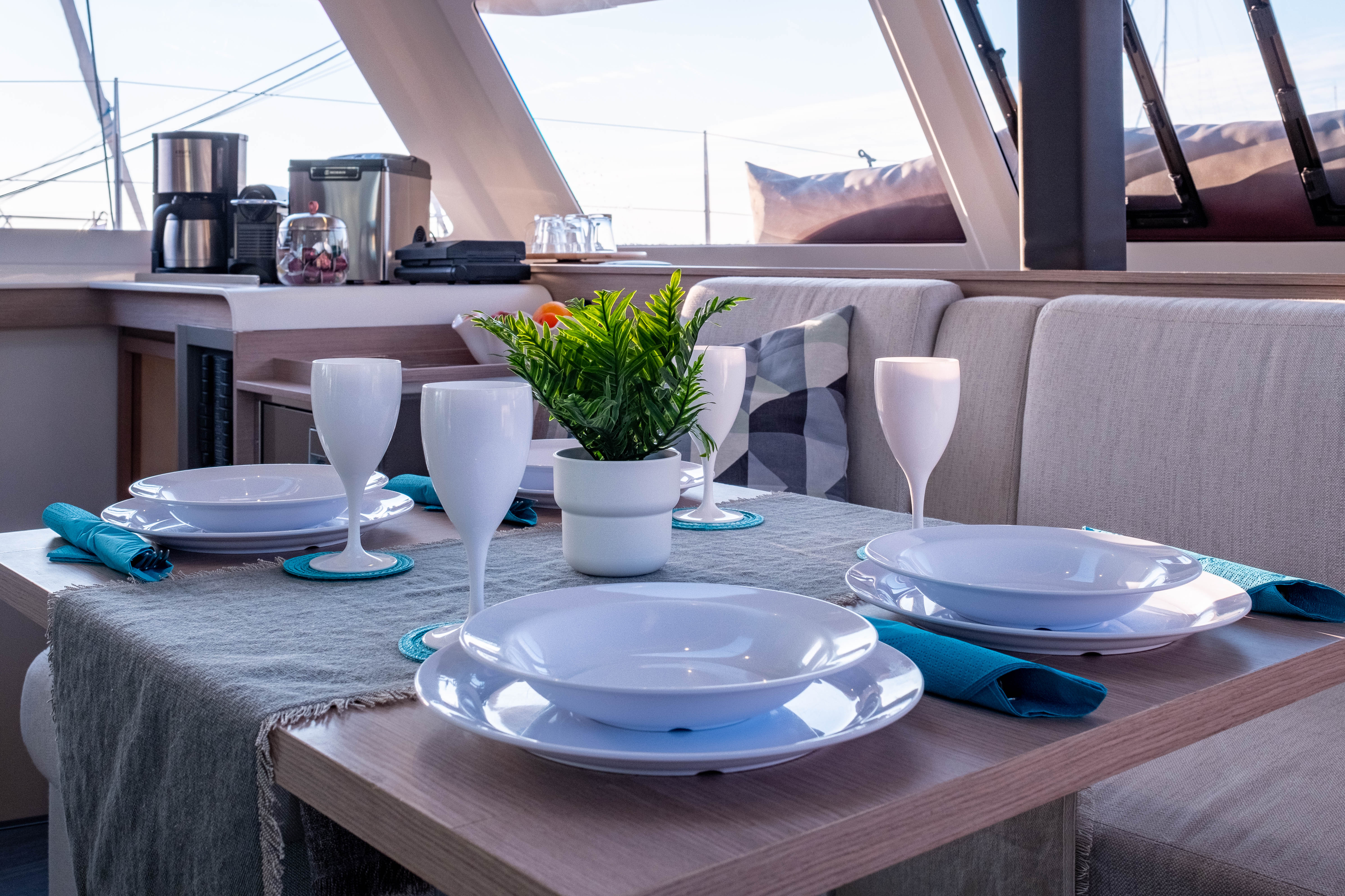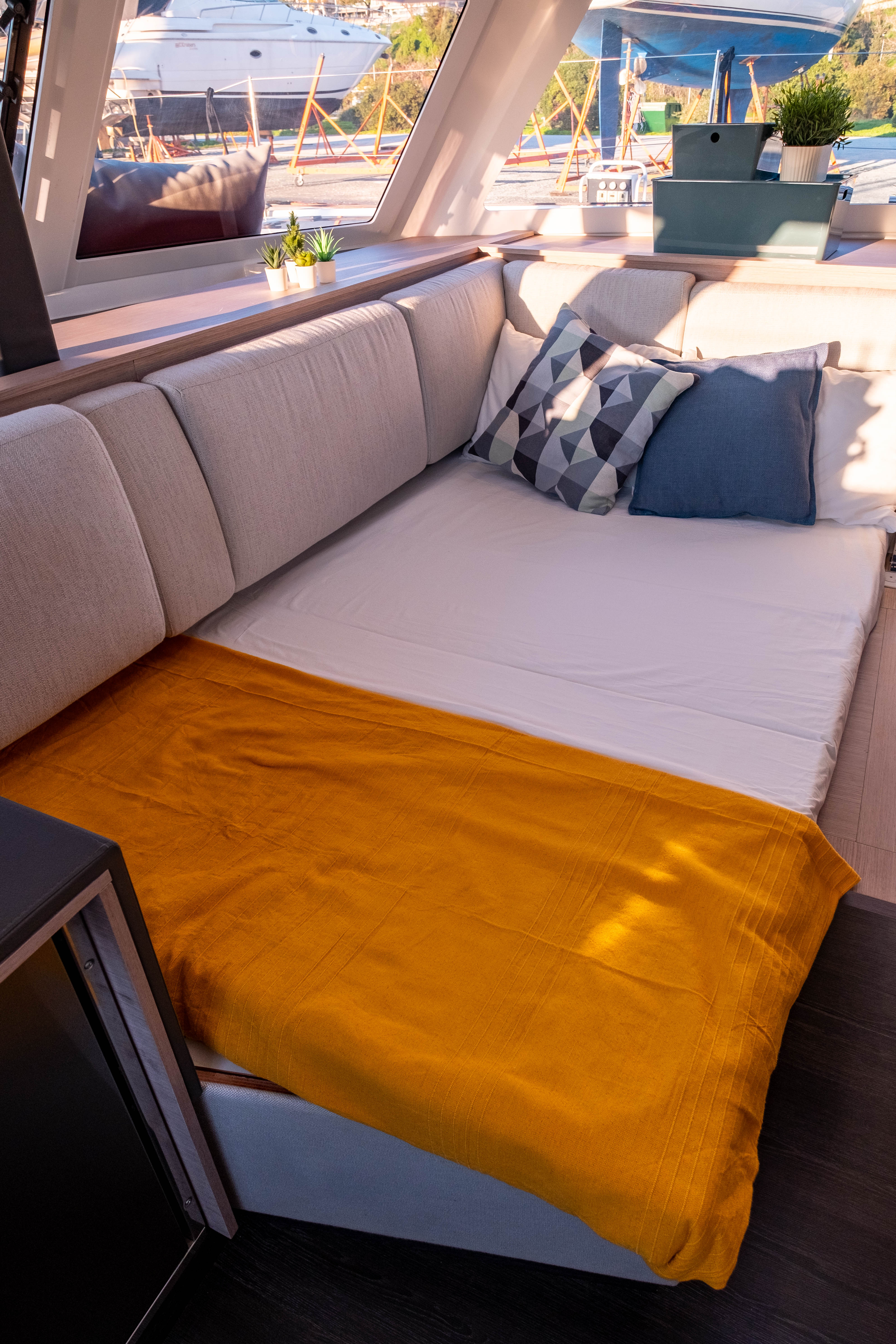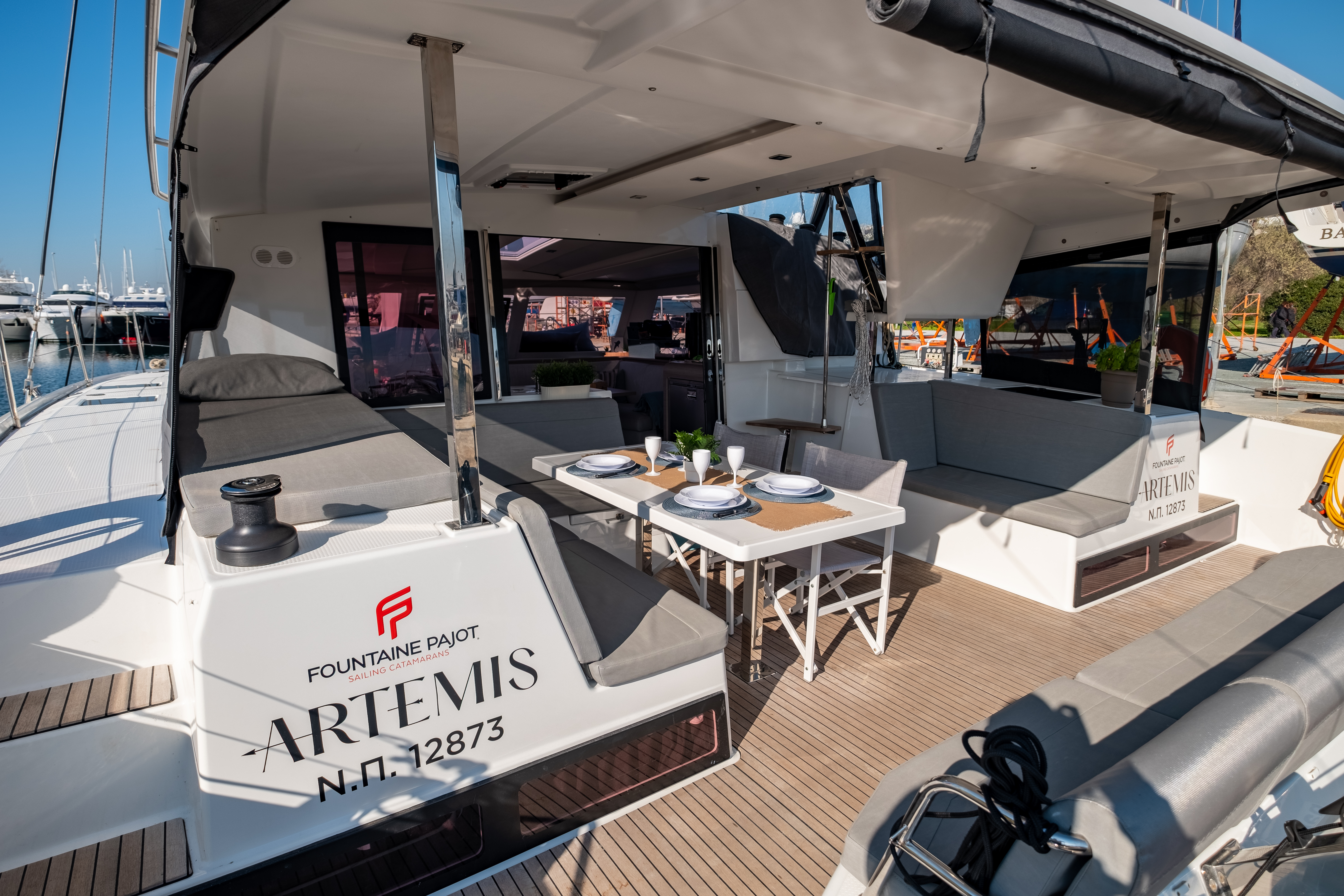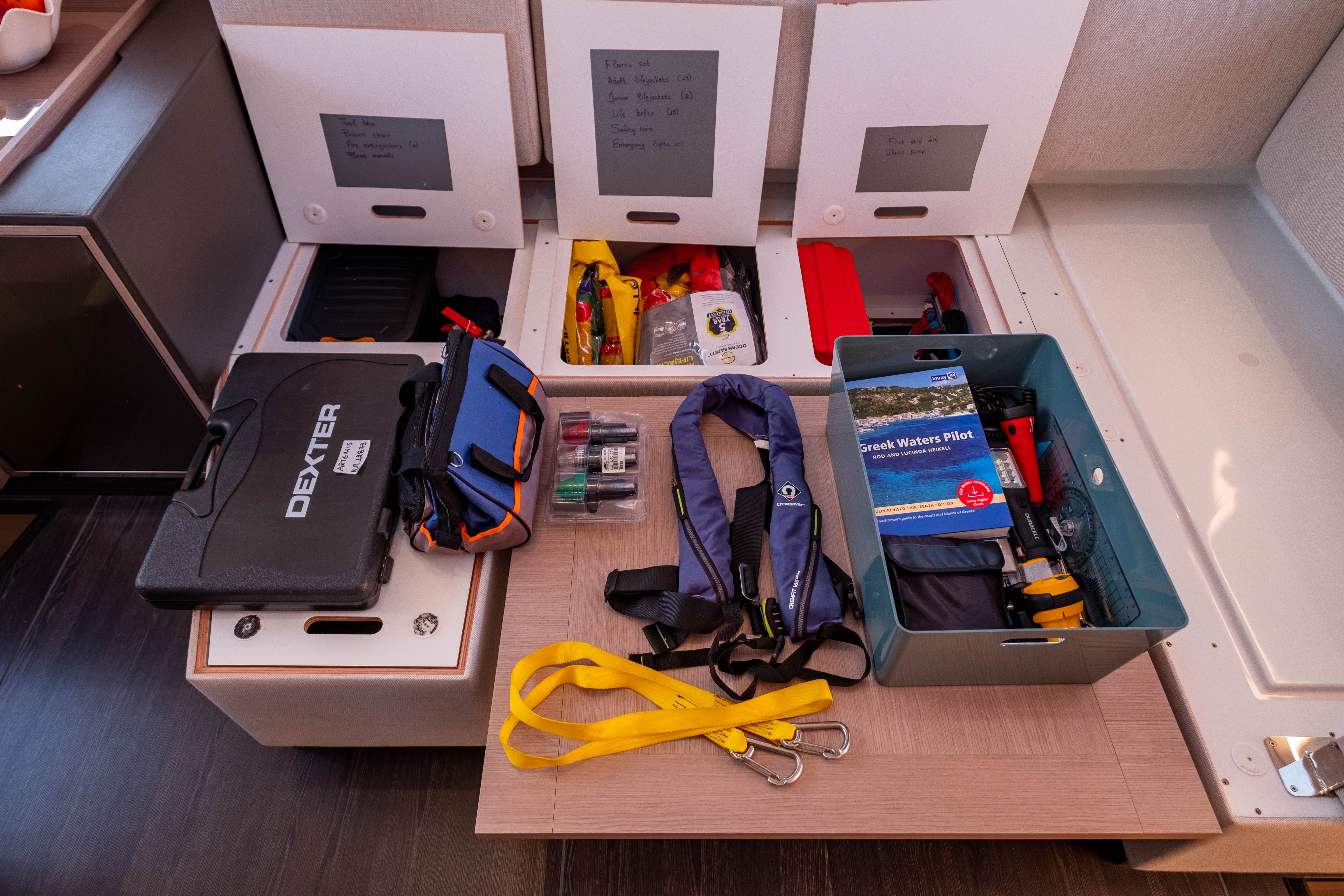 Electric man. winchGenoaCST main sailBowsprit and gear for spinakkerAutomatic mainsail HOOKLazy bagLazy jackUSB socketsHelm seat cushionsBoarding ladderWindlass remotePair of s/steel davitsPolyester cockpit tableDinghy hoist systemTeak floor transomsPouf foredeckSunbeds on the flybridgeAdditional mooring cleetsBerth in starboard bowDeck light and ledsFlybridgeUSB socketsSunbeds on foredeckTeak deckTeak cockpitCockpit tableElectric winchAft Cockpit cushionsSprayhoodBiminiProtective stripBow seatsBBQSeawater systemTeak GangwayDeck showerFendersCockpit tentInverterMicrowaveAir-conditionSolar panelsCockpit fridgeGeneratorWatermakerIce cube makerUnderwater lightingDouble berth in sallonFans in salon and cabinsCurtains in cabinsPar breeze coverFreezer12 V OutletLED lightingFridgeStove and grillCoffemakerKitchen utensilsGas ovenParallel rulerEraserBinocularsHand bearing compassDividerSea chartsGreek Waters PilotSails repair kitToolboxDinghy repair kitBoat manualsEngine's sparesScissorsAuxiliary anchor2 HorseshoeFloating lineFloating smoke (2)FoghornDiving Waterproof flashlightHead lightJunior life jacketsRadar reflectorFlag N, C, QMain anchor Rocna 25Safety harnessWeather stationBosun chairFirst aid kitLife jacketsLiferaftFlaresBlack ballFire extinguishersEpirbRadar reflectorFire blanketNavigation lightsWooden bungsSearch lightSignal mirrorPressurized seawater systemAir-conditionWatermakerGas barbecueUnderwater lightingMircrowave ovenIce cube makerQuiet flush electrical toiletsCockpit FridgeInverter 2000WSolar panelsGarmin GPS 7410Garmin VHF2nd Garmin VHFTV 32"Fusion audio packFood containersChopping boardsKettleSalad bowls (2)FreezerCoffee Cups (12)Soup plates (12)Table Spoons (12)Fruit plates (12)Oven gloves setSauce pansSquizerTea spoons (12)MicrowaveFrying pansCoffee potTable Forks (12)Serving trayPirex oven dishTea strainerDinner plates (12)Glasses (12)Table Knives (12)PlacematsSmall kitchen knivesWine glasses (12)Sinks 2CutleryBig strainerBig kitchen forkBottle openerCan openerBowls (12),Telescopic boat hookFlag halyardsDeckbrushSecond anchorGas bottles (2)Diesel jerrycan 20ltFuel funnelWater hose (2)Outboard engineDinghySnorkeling sets Engine oilPlastic bucketsFuel jerrycan 10lt