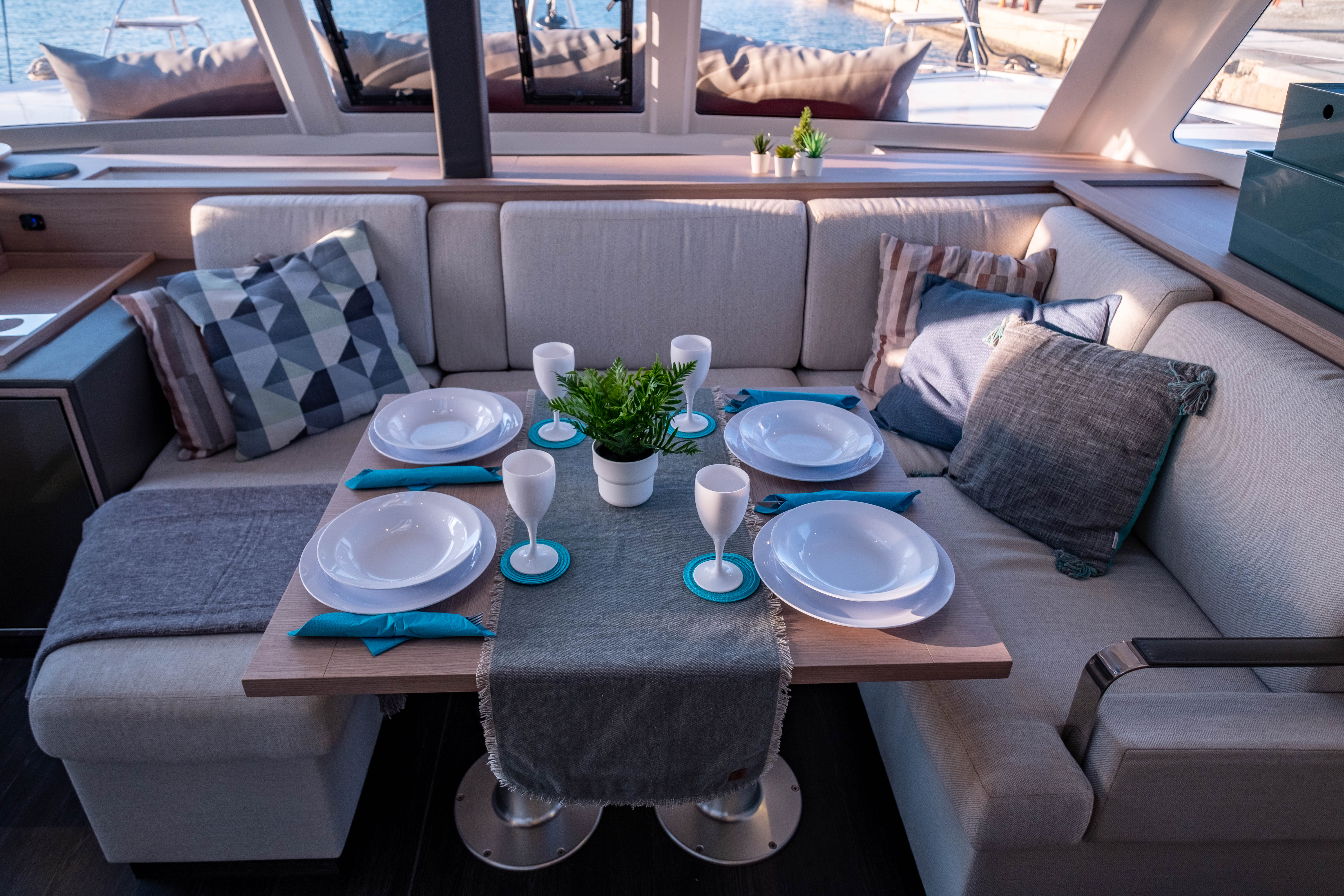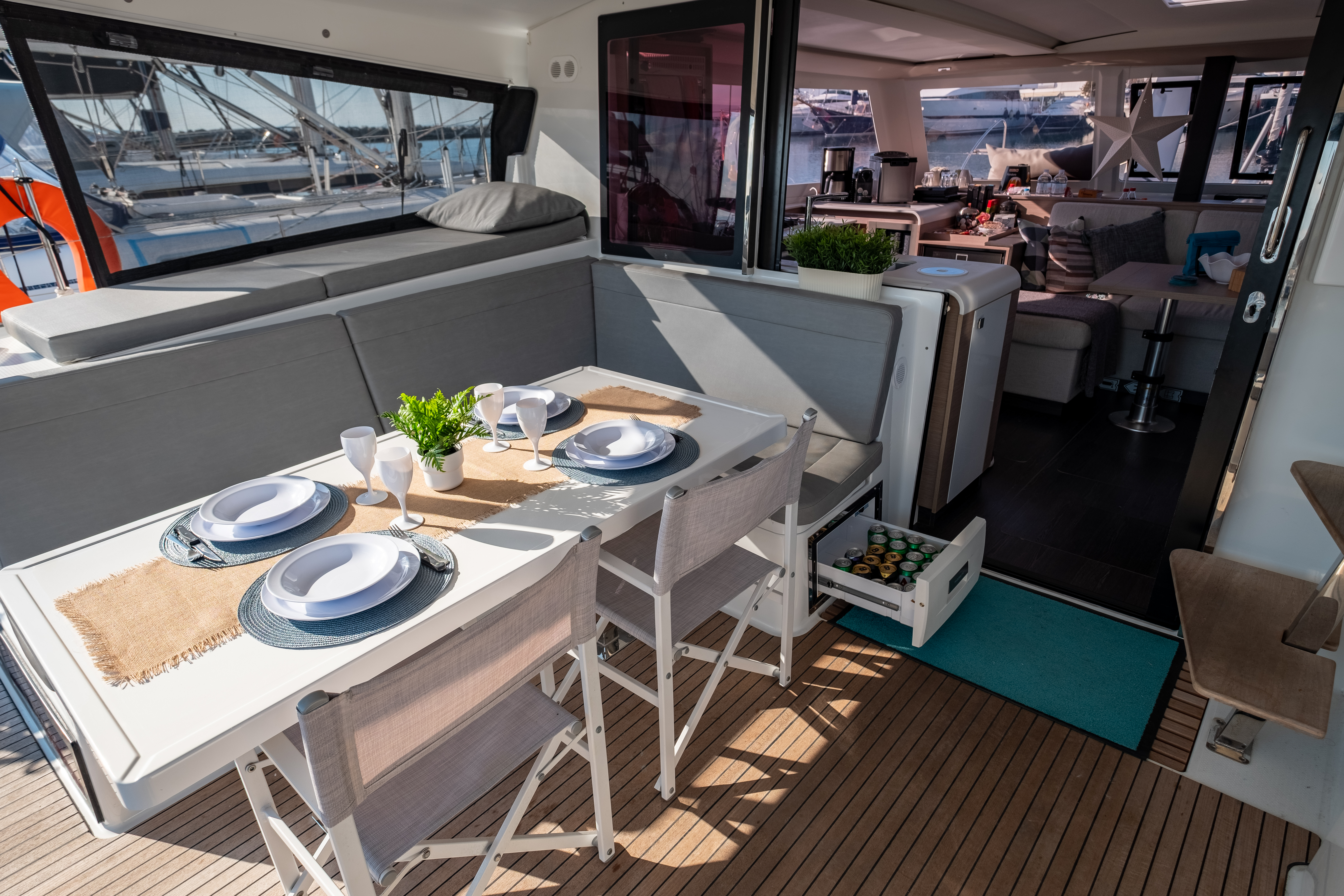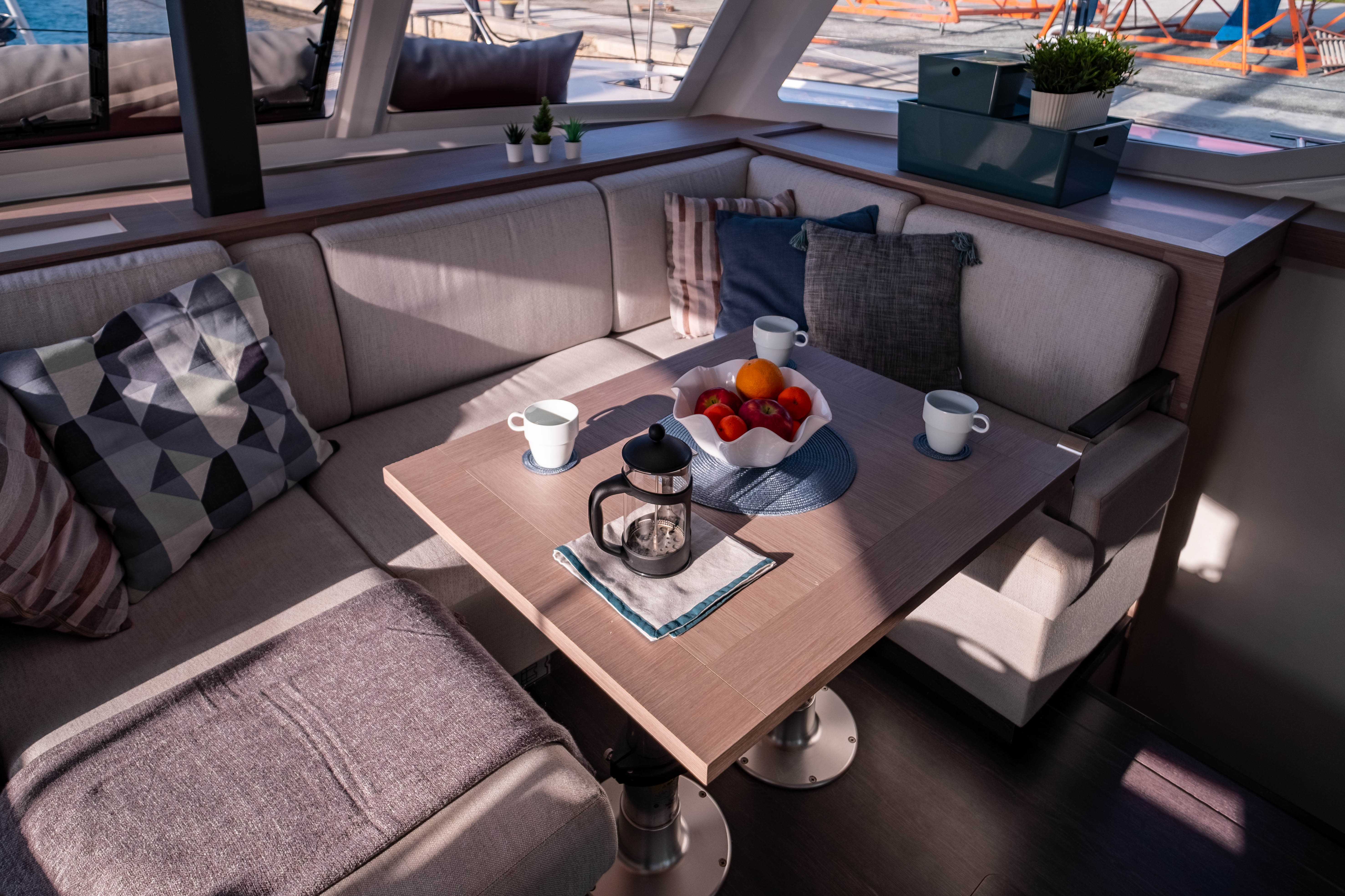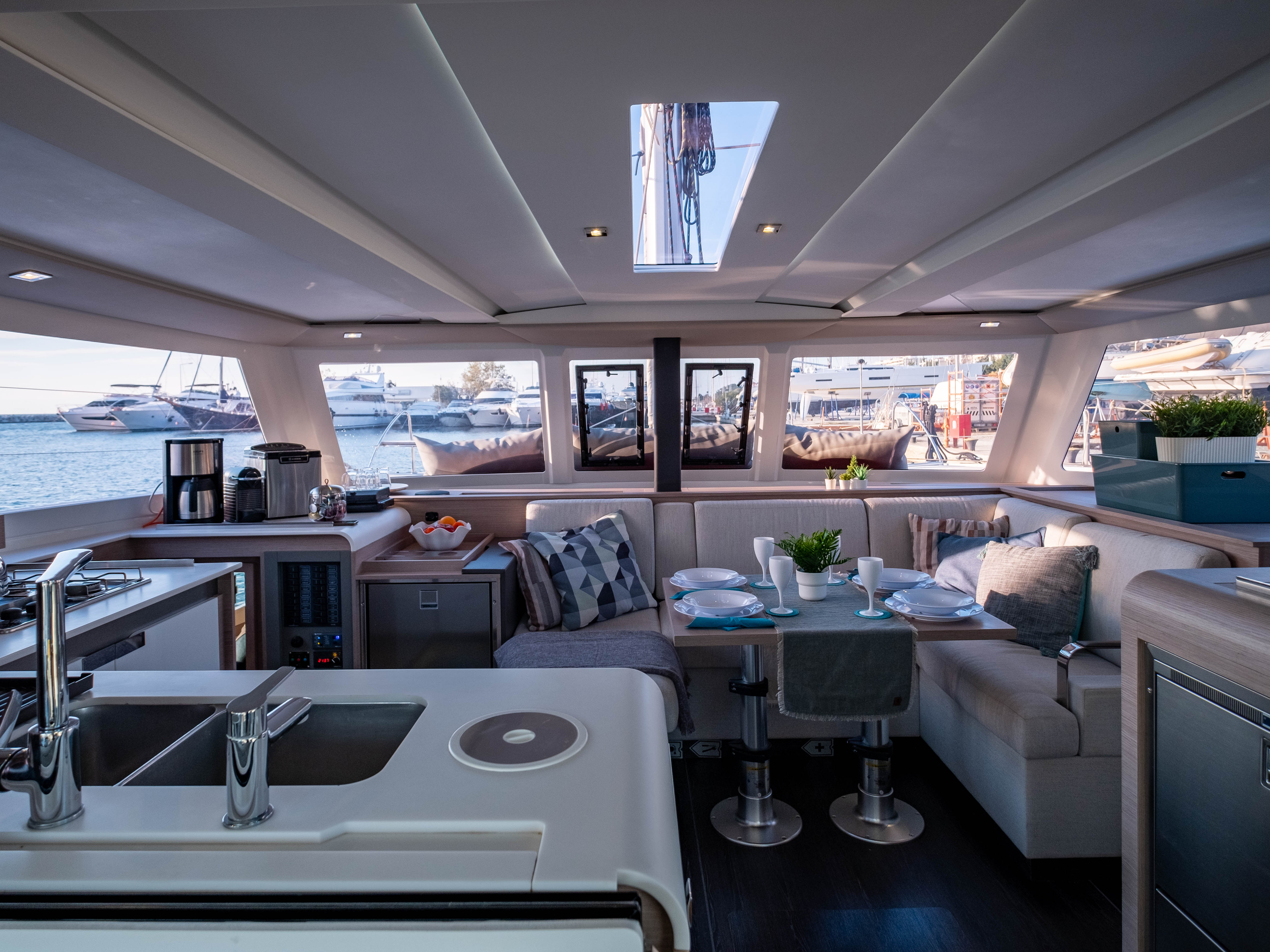 Electric man. winchGenoaCST main sailBowsprit and gear for spinakkerAutomatic mainsail HOOKLazy bagLazy jackUSB socketsHelm seat cushionsBoarding ladderWindlass remotePair of s/steel davitsPolyester cockpit tableDinghy hoist systemTeak floor transomsPouf foredeckSunbeds on the flybridgeAdditional mooring cleetsBerth in starboard bowDeck light and ledsFlybridgeUSB socketsSunbeds on foredeckTeak deckTeak cockpitCockpit tableElectric winchAft Cockpit cushionsSprayhoodBiminiProtective stripBow seatsBBQSeawater systemTeak GangwayDeck showerFendersCockpit tentInverterMicrowaveAir-conditionSolar panelsCockpit fridgeGeneratorWatermakerIce cube makerUnderwater lightingDouble berth in sallonFans in salon and cabinsCurtains in cabinsPar breeze coverFreezer12 V OutletLED lightingFridgeStove and grillCoffemakerKitchen utensilsGas ovenParallel rulerEraserBinocularsHand bearing compassDividerSea chartsGreek Waters PilotSails repair kitToolboxDinghy repair kitBoat manualsEngine's sparesScissorsAuxiliary anchor2 HorseshoeFloating lineFloating smoke (2)FoghornDiving Waterproof flashlightHead lightJunior life jacketsRadar reflectorFlag N, C, QMain anchor Rocna 25Safety harnessWeather stationBosun chairFirst aid kitLife jacketsLiferaftFlaresBlack ballFire extinguishersEpirbRadar reflectorFire blanketNavigation lightsWooden bungsSearch lightSignal mirrorPressurized seawater systemAir-conditionWatermakerGas barbecueUnderwater lightingMircrowave ovenIce cube makerQuiet flush electrical toiletsCockpit FridgeInverter 2000WSolar panelsGarmin GPS 7410Garmin VHF2nd Garmin VHFTV 32"Fusion audio packFood containersChopping boardsKettleSalad bowls (2)FreezerCoffee Cups (12)Soup plates (12)Table Spoons (12)Fruit plates (12)Oven gloves setSauce pansSquizerTea spoons (12)MicrowaveFrying pansCoffee potTable Forks (12)Serving trayPirex oven dishTea strainerDinner plates (12)Glasses (12)Table Knives (12)PlacematsSmall kitchen knivesWine glasses (12)Sinks 2CutleryBig strainerBig kitchen forkBottle openerCan openerBowls (12),Telescopic boat hookFlag halyardsDeckbrushSecond anchorGas bottles (2)Diesel jerrycan 20ltFuel funnelWater hose (2)Outboard engineDinghySnorkeling sets Engine oilPlastic bucketsFuel jerrycan 10lt