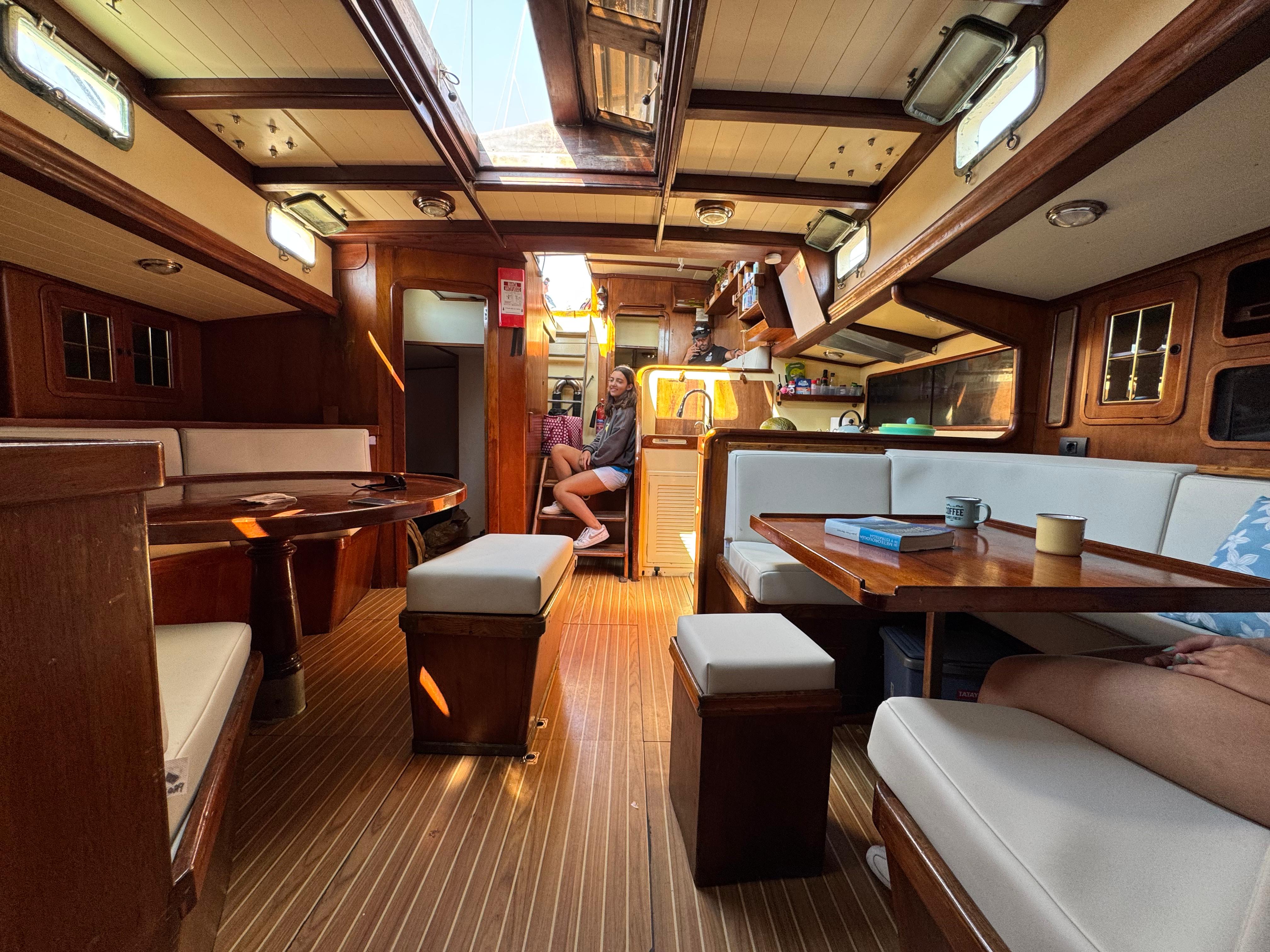 Natural teak on cockpit seats and rear seats