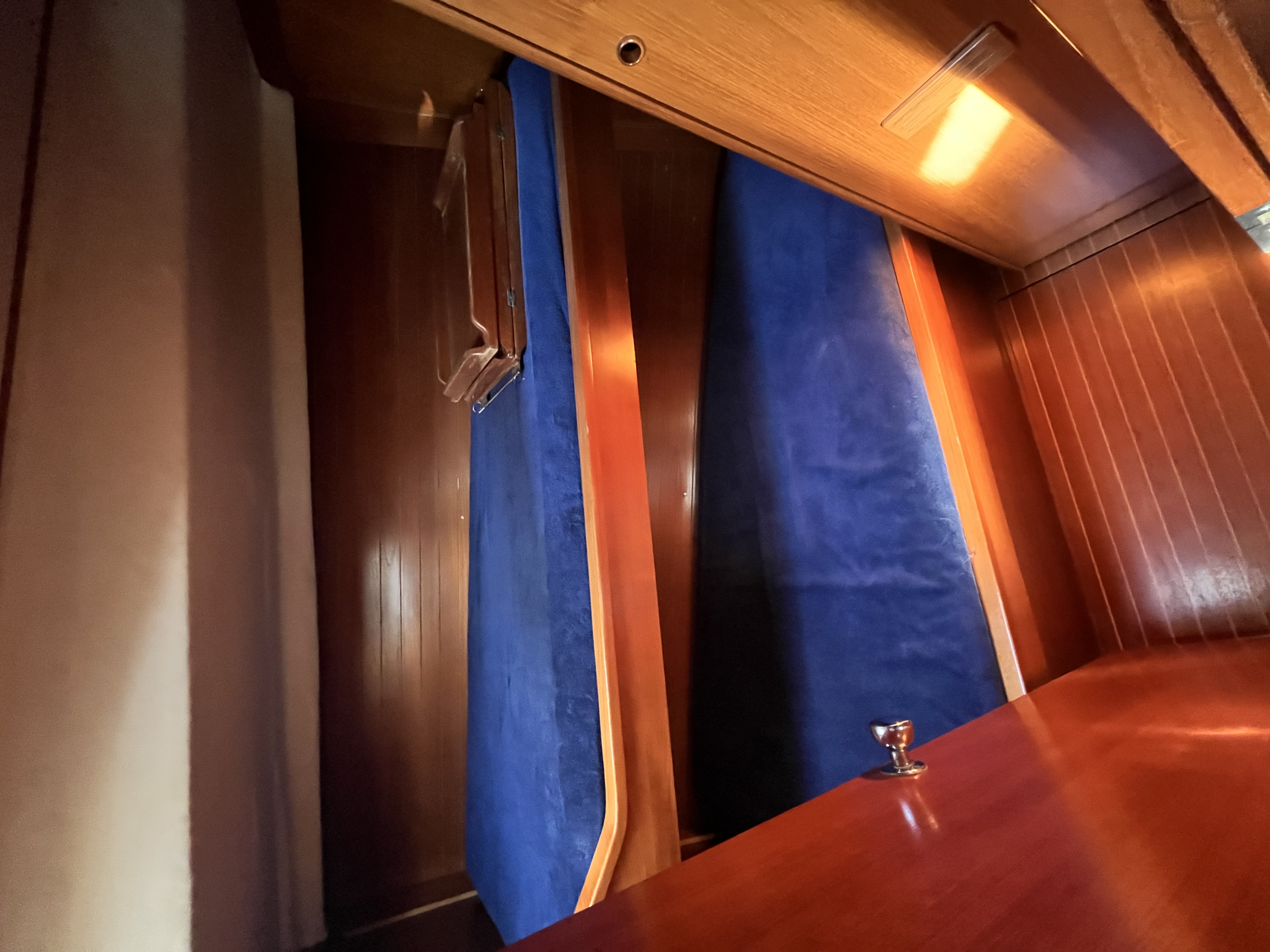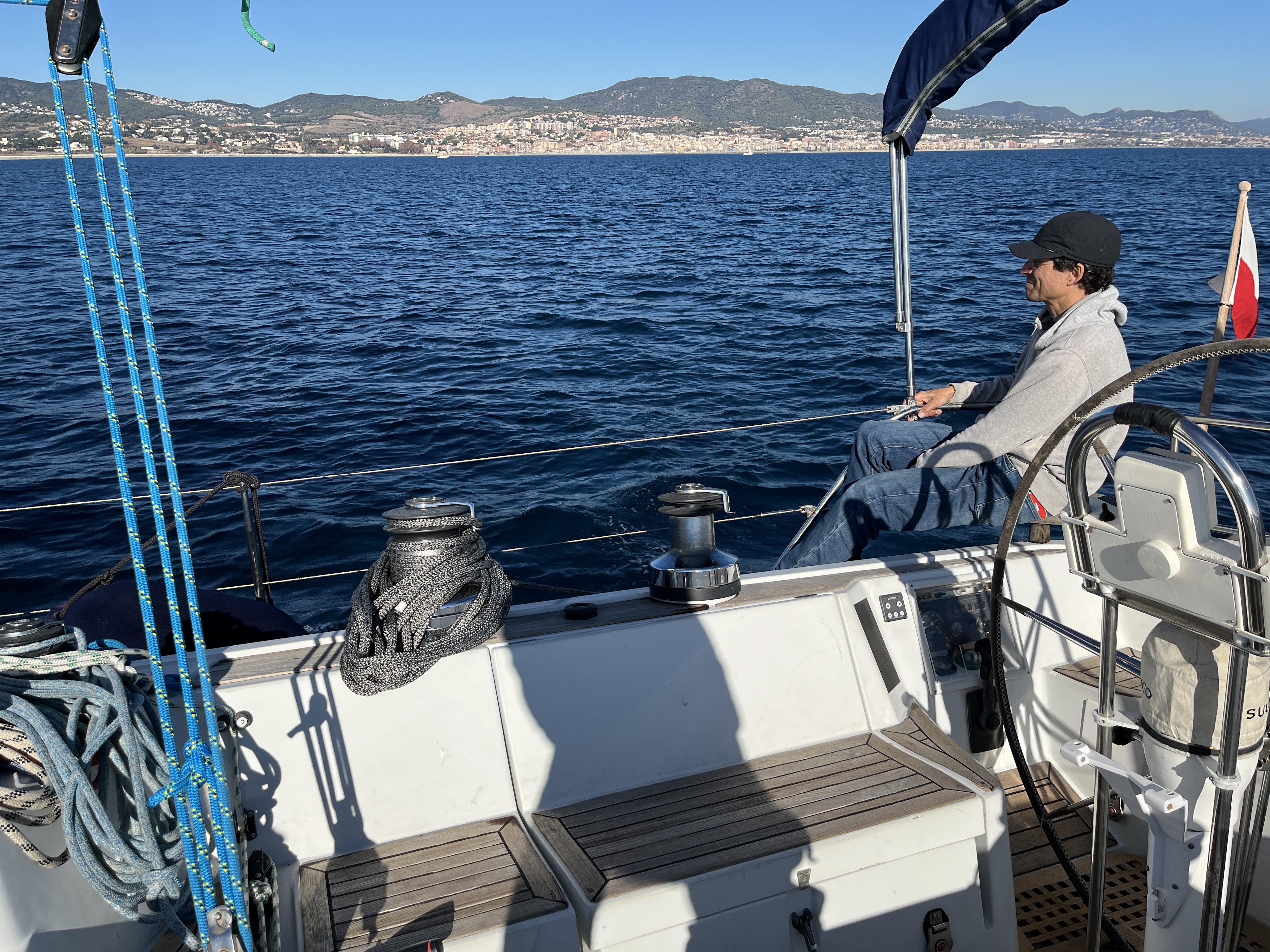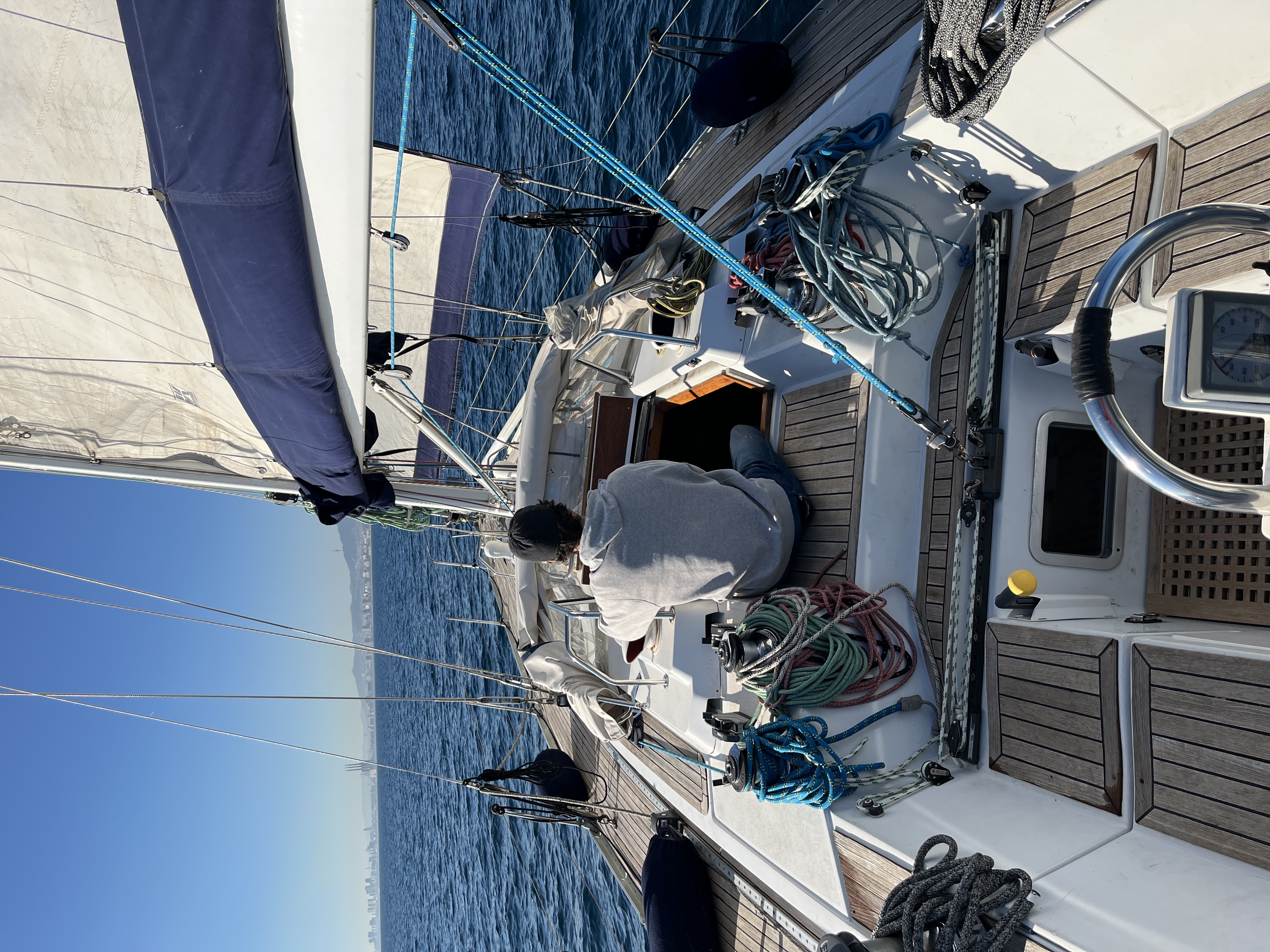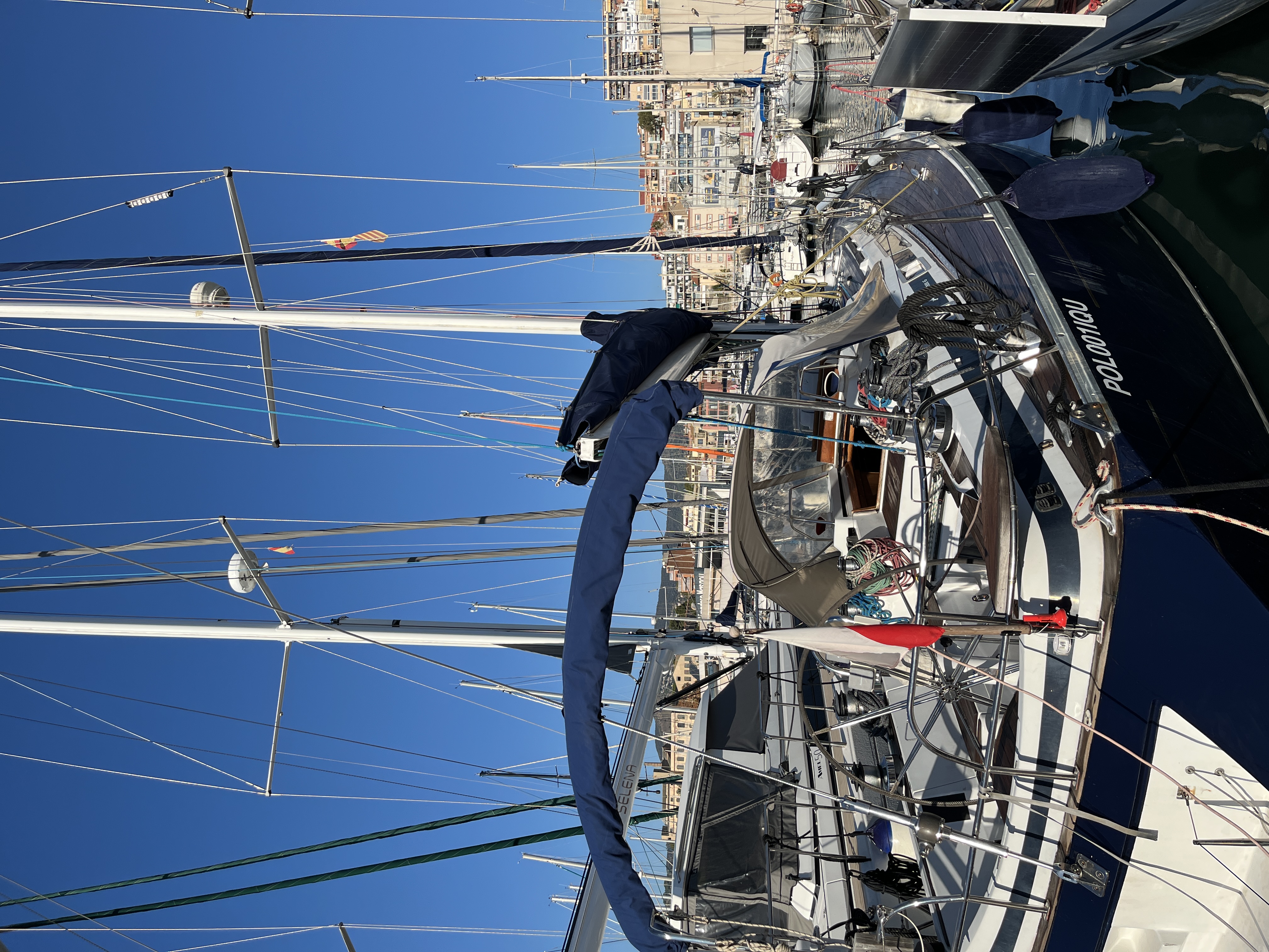 Electric Halyard WinchFull batten Main SailFurling GenoaTeak DeckBiminiSprayhoodLiferaftBathing ladderElectric windlassAutopilotPlotter in the cockpitPlotter at chart tableVHF-Radio with DSCSpeedometer&depth sounderWind equipmentbattery charger12V refrigeratorCockpit speakersCockpit shower with hot waterTeak cockpitBow thrusterStove with ovenElectric anchor winchElectric fridgeNautical chartsCompassGennaker equipmentAIS
