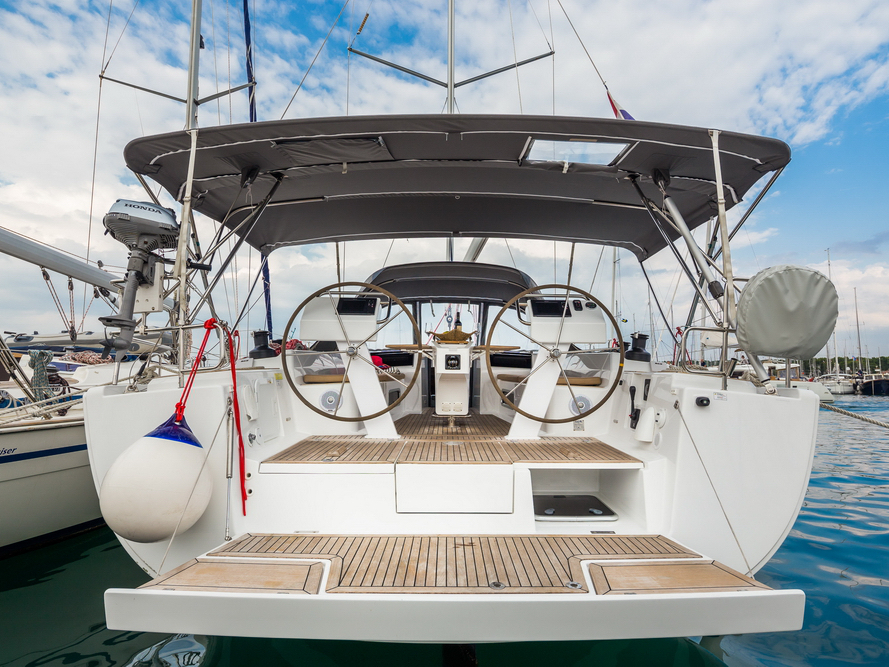 Hot waterElectric refrigeratorCooker with stove, 2 gas bottlesCooking utensils & cutleryBathing ladder, stern shower Clock, barometer & thermometerRadio CD playerCockpit loud speakerPillows, bed linen Furling Main sailFurling GenoaWinch handlesElectric anchor windlassBimini topSpare anchor, 10 m of chainSprayhoodCockpit tableInflatable dinghy, pump & 2 oars Teak in cockpitSteering wheelCockpit compassFendersBoat hookRopes - 2x 15 m, 2x 25 m, 1x 50 mBucket & brushShore power systemFlagGangwayTeak deck Main anchor, 80 m of chain Bathing platformSafety belts and life jacketsDistress signal kit & Fog hornFirst aid kitLife buoyPortable lamp with extra batteries Fire extinguisherRadar reflectorToolset Main battery switchMain and service battery + battery chargerElectric and manual bilge pumpElectric instrument panelEmergency tillerBonus chairUKW Radio- telephony AutopilotGPS Chart plotter Tri data (Log, Speed, Depth) Wind instrument Nautical charts & navigational guideBinocular, hand bearing compassDivider, plotter, pencil & eraser Bow ThrusterHeating