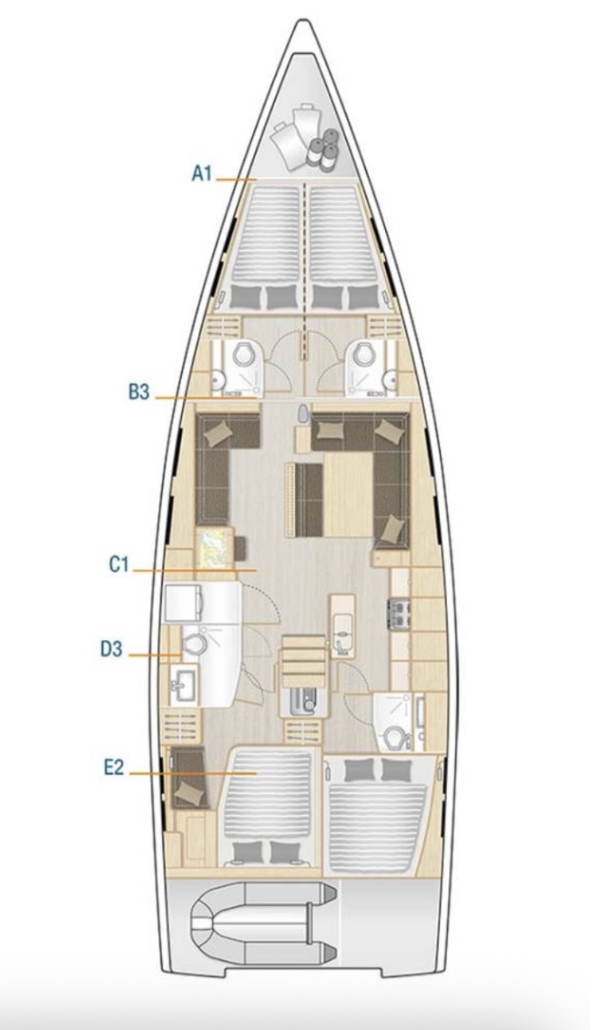 €1090.0Included in price (unlimited WiFi, outboard engine 2,5 HP and dinghy,berth in marina Baotic,standard equipment, Nespresso coffee machine, cockpit cushions, VAT 13%, linen and towels)