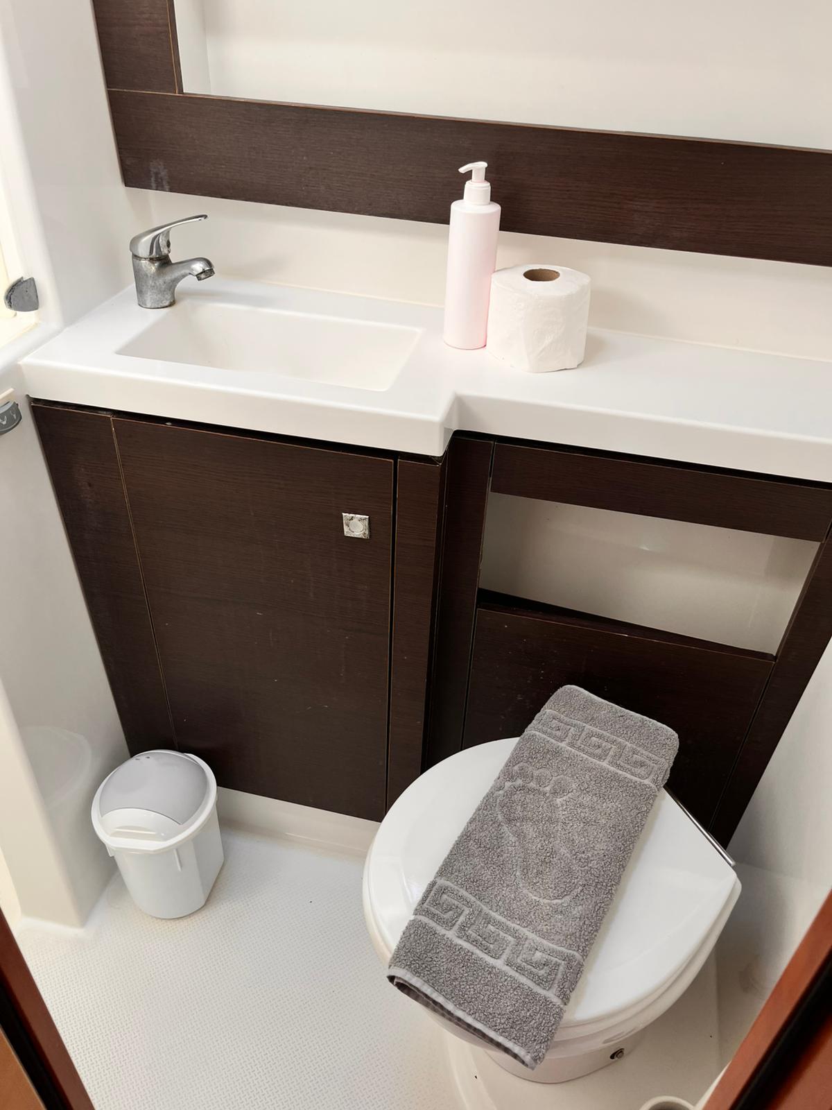 Preparation for VHF Mast Cable12V Outlet for Interior and ExteriorDouble Clamps for 2nd and 3rd ReefDeck Shower with Hot WaterAutomatic Bilge PumpLAZY BAGHelm CoverElectric Mainsail Halyard WinchDecorative Lighting for Galley & SalonPressurized Seawater PumpFusion Music System with 4 Speakers2000W InverterCurtains in CabinsMooring Equipment + 6 FendersDirect Head Mast, Full-Battened Mainsail with Vertical AngleAutomatic Mainsail HookLAZY JACKSElectric Windlass 1500WAir ConditionWatermakerAir ConditionExtra Dock CleatsFlybridge TableStarboard Side Captain's CabinGarmin Electronics Package 1: 2x Multi GMI 20 (Speed, Depth & Wind) / Autopilot / Garmin 8410 GPS (at Navigation Table) / VHF / AISSecond VHF Handset90L Freezer (-5°C) / 12VRefrigerator in CockpitElectric ToiletExtra AGM 150 Ah Battery