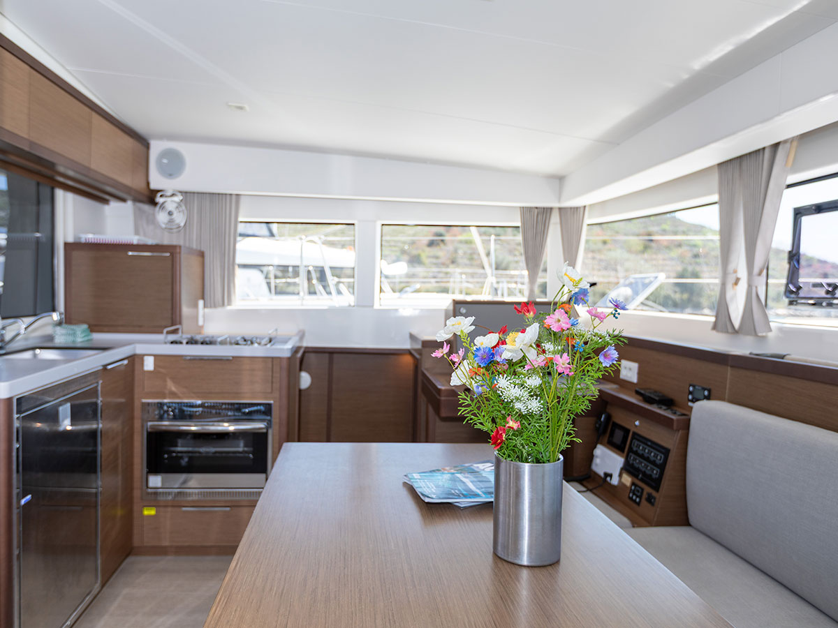 Teak cockpitStern shower hot and coldCockpit speakersBathing ladderCockpit cushionsCockpit tablePanorama seats on the bowDinghy carrierSun bed cushions with adjustable backrestsFlybridgeBimini on steering seat Dinghy 3,40 m Outboard engine Honda 6 hpStoveRefrigeratorAutomatic shower pumpElectric toiletKitchen utensilsSaloon speakersWalnut interior MS fusion player Leather compartments in cabinsMicrowave oven with grillDouble berth in saloonPortable ice makerElectric sea pump in galleyUSB outlets in cabinsAdditional refrigerator 100 ltSaloon door shadesWater heatingBattery charger220V+shore power+outlets in cabins and saloonGenerator220V sockets12V socketsAir condition in saloonSpare anchor with chain and ropeMain anchorCalibrated anchor chainLife raftLifebuoyFirst aid kitDistress flaresSmoke detectorFire extinguisherSafety harnessLife jackets solidPilot book 777Small map setBig map setLED navigation and interior lightsRadar reflectorAutopilot BGDeep meter BGWind indicator BGNavigation pack BGBG VHF V60BG Zeus3 12 inch in steering seatSecond VHF receiver H50 in steering seatAdditional service batteriesAdditional water tank 200 ltFull batten main sailGenoa self tacking jibElectric halyard winchLazy bag