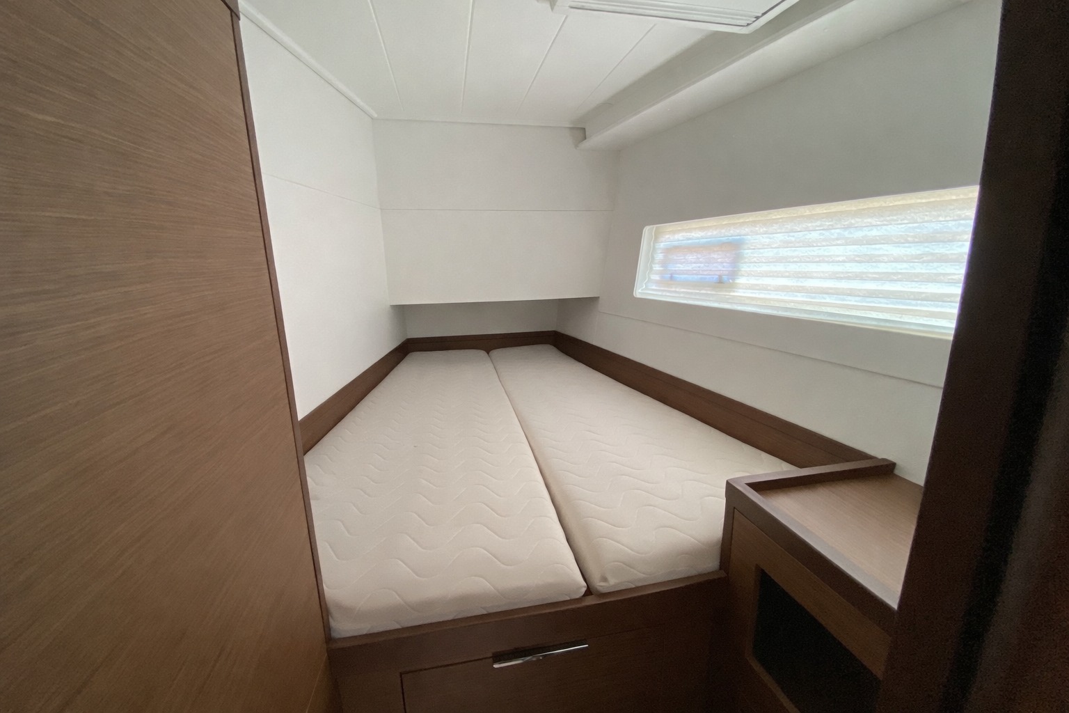 2 x 130 l front-opening fridges with small icebox compartment2x45HP saildrive with 3-blade fixed propellers2x gas cylinders (2.75 kg)child safety netelectric anchor windlass with wired remotehot/cold cockpit showercockpit tablesprayhoodlazy bagdinghyfolding swim platform1x rod holderfolding PVC gangway with storage bagfixed internal VHFautopilotlogfishfinderwindexwind stationweather stationtoolboxengine spare partsItalian flag safety equipment within 50 nm1x electric winchexternal cushions on seats and backrests1x manual winchLED lighting in cockpit bimini over the helmsplotter B&G Zeus 12"AIS 500 B&G4x head with electric toilet and holding tankDacron square top mainsail, full battens Dacron self-tacking jib, furling 1,35 mt2x fresh water tanks (600L total)2x fuel tank (400L total)Stand Up Paddle € 60,00/weekend - € 110,00/weekparking inside Marina di Nettuno € 17,00/dayextra towel set (face towel, body towel) € 30,00/double set - € 15,00/single setExtra bedding sheets pack € 15,00/single - € 30,00/doubleFusion Bluetooth stereo with internal and external speakersUSB and USB-C outletsportable 220/12 V inverter220 V outlets + 12 V outletfansgas ovenpots, pans, dishes, and kitchen utensilsUSB outletsthree-burner gas stoveelectric seawater pumpconvertible salon