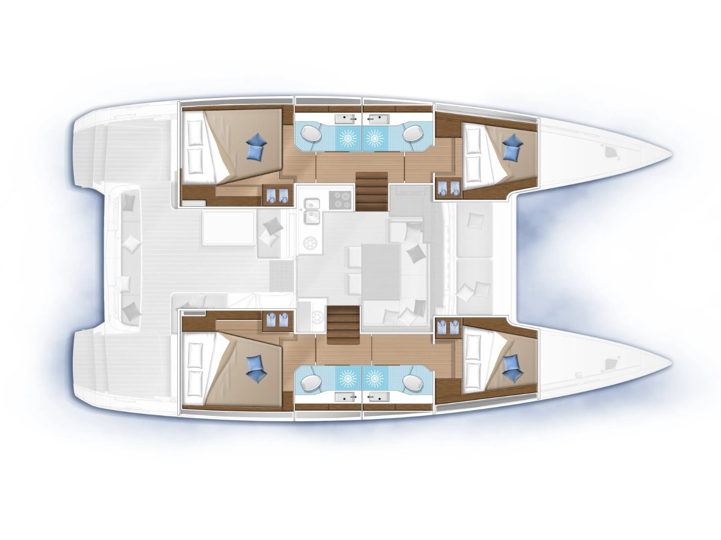 • Exclusive Comfort package (Includes damage waiver, final cleaning, WiFi (75GB/week), dinghy, outboard engine, bed sheets & towels, beach towels, coffee machine+10 capsules, ice maker, cooking gas, tax) +770 EUR refundable