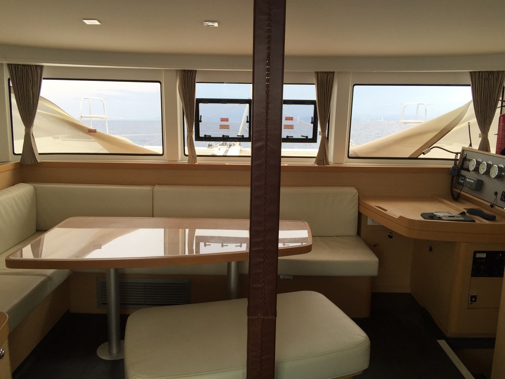 Cruising chartsBinocularsGPS plotterVHFSpeedometerWind instrumentsHand-bearing compassAutopilotChart plotter in cockpitPhotovoltaic system solar panel of high powerHolding tankWatermakerRadio/CD player (USB connection for all devices)RefrigeratorFully equipped galleyLinen & towelsHousekeeping suppliesEspresso coffee makerelectric toiletsAir conditionGeneratorElectric anchor windlassCockpit tableCockpit showerDinghySwimming ladderBoarding ladderBimini topSprayhood