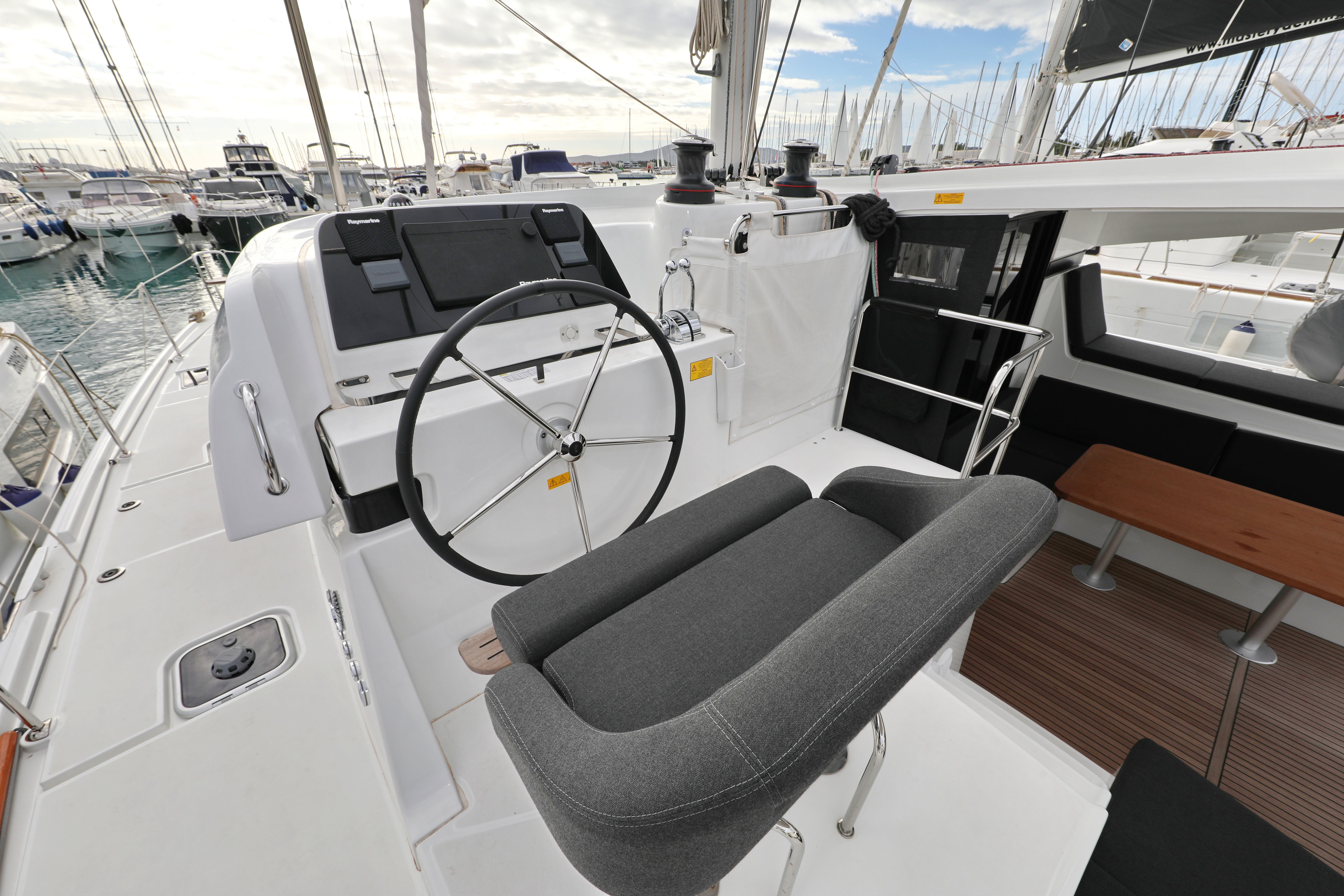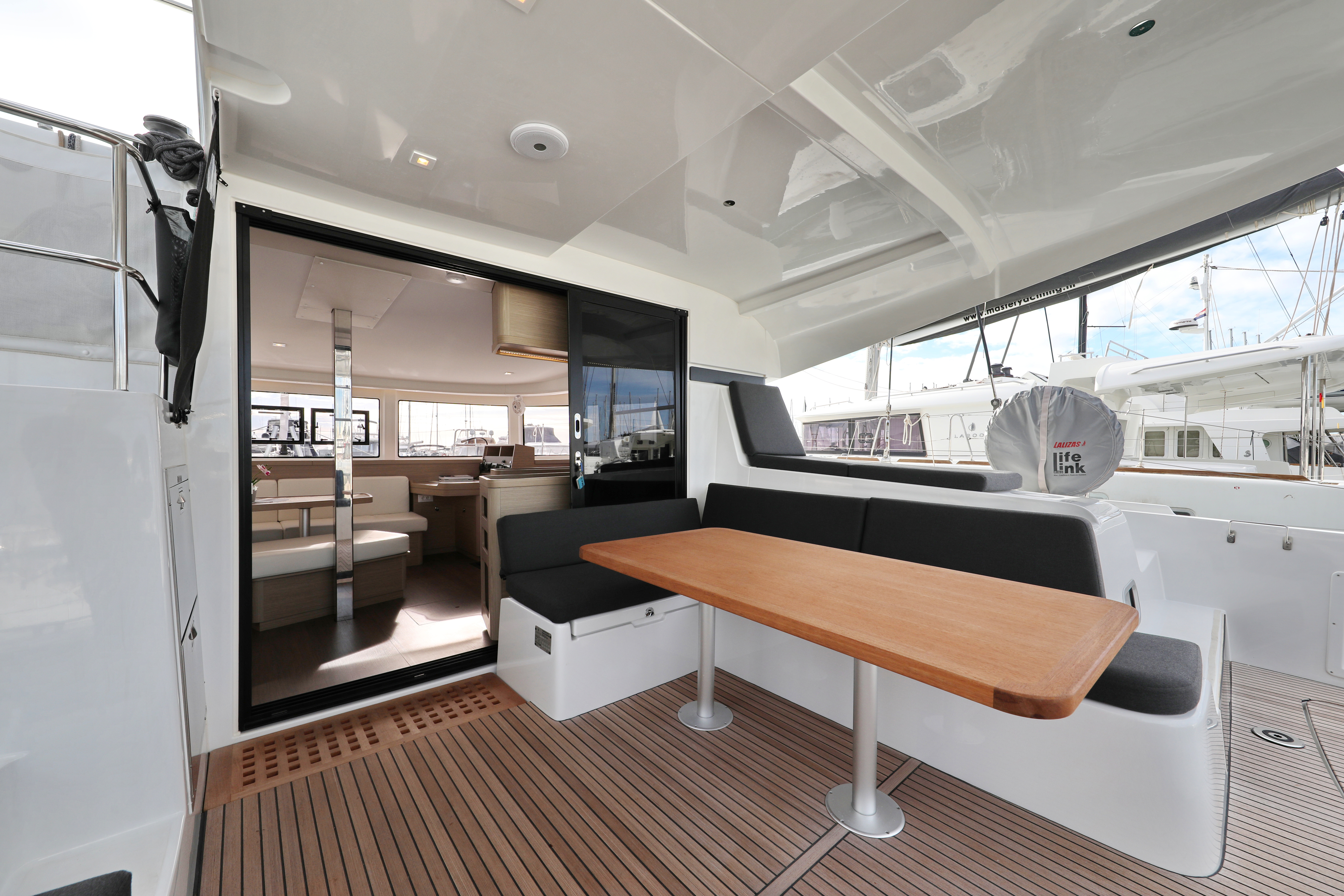 Refrigerator Deck showerChart plotterAutopilotLog/SpeedoCockpit speakersWi-Fi InternetFlares (3) and rockets (3)Dinghy 340/20HpFirst aid kitVHF Flashing lightLife belts/Safety harness Life buoy with light and ropeLife jacketsLazy bagFull baten main sailRoll GenoaAir Condition (salon)GeneratorWatermaker