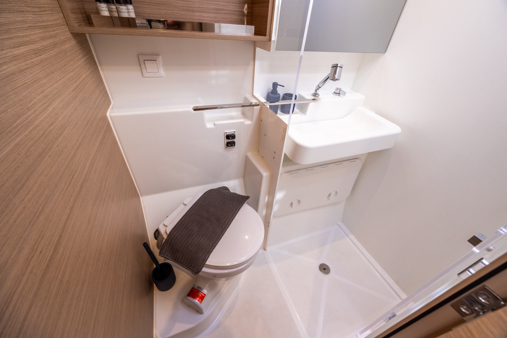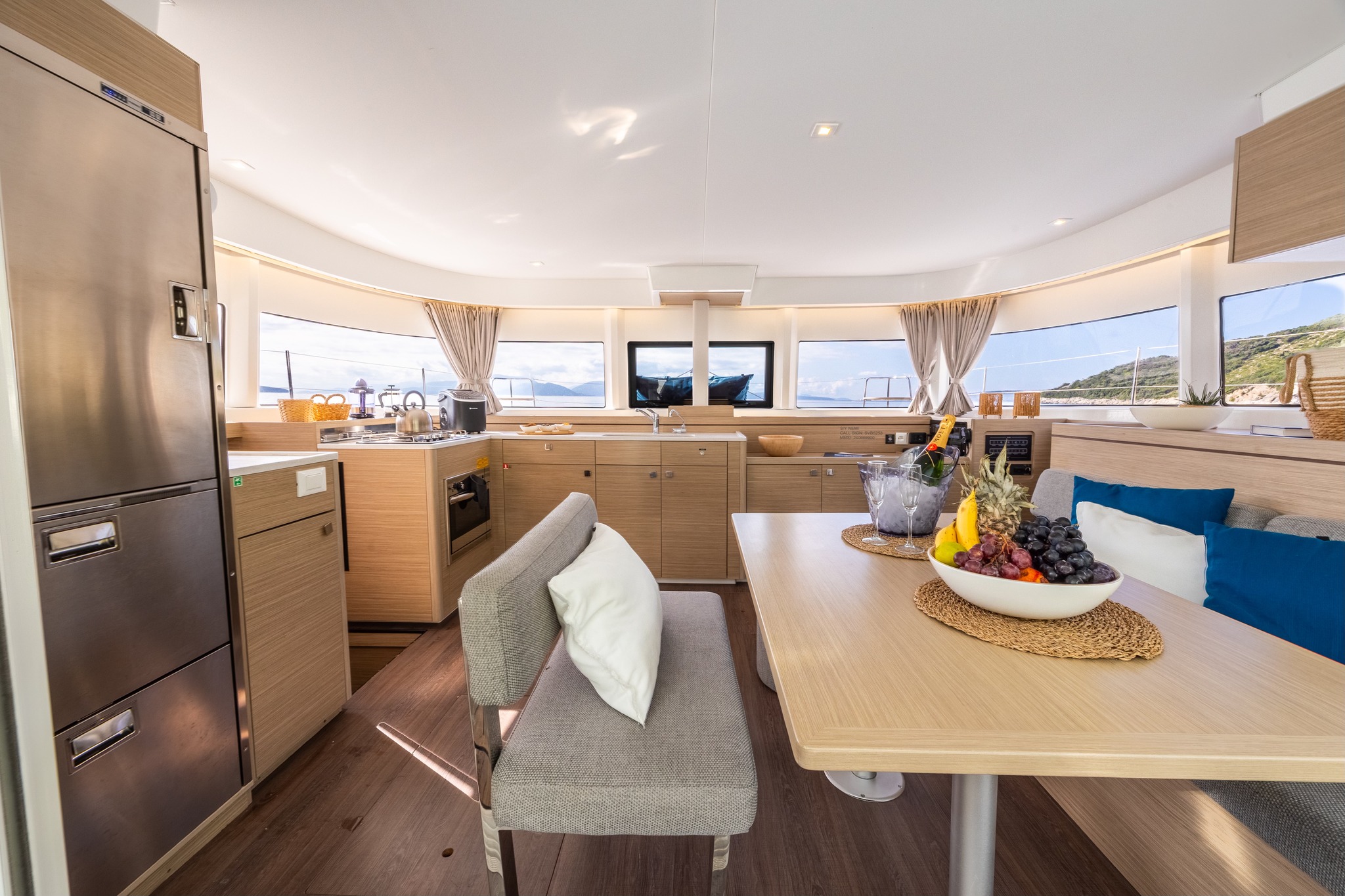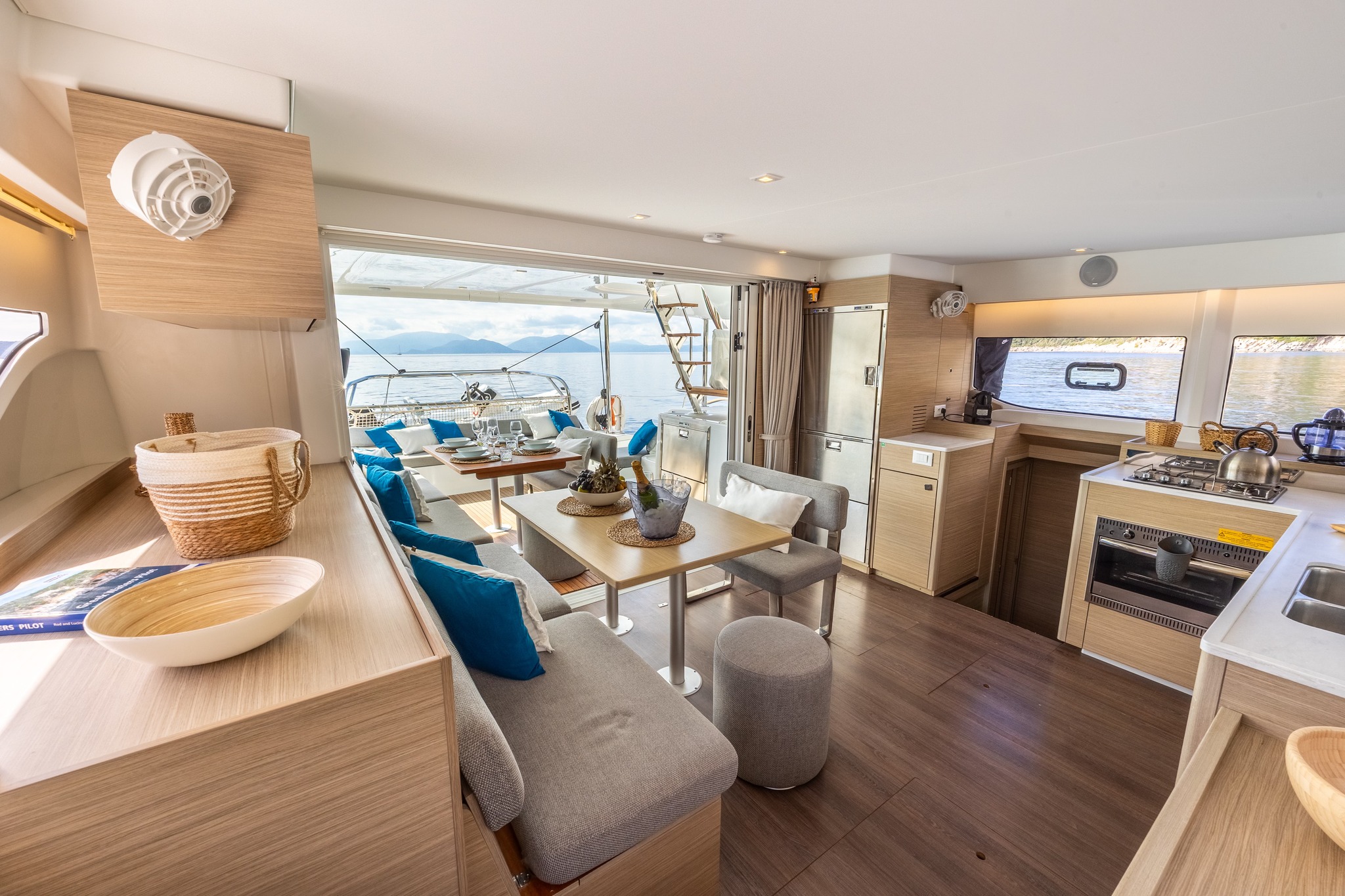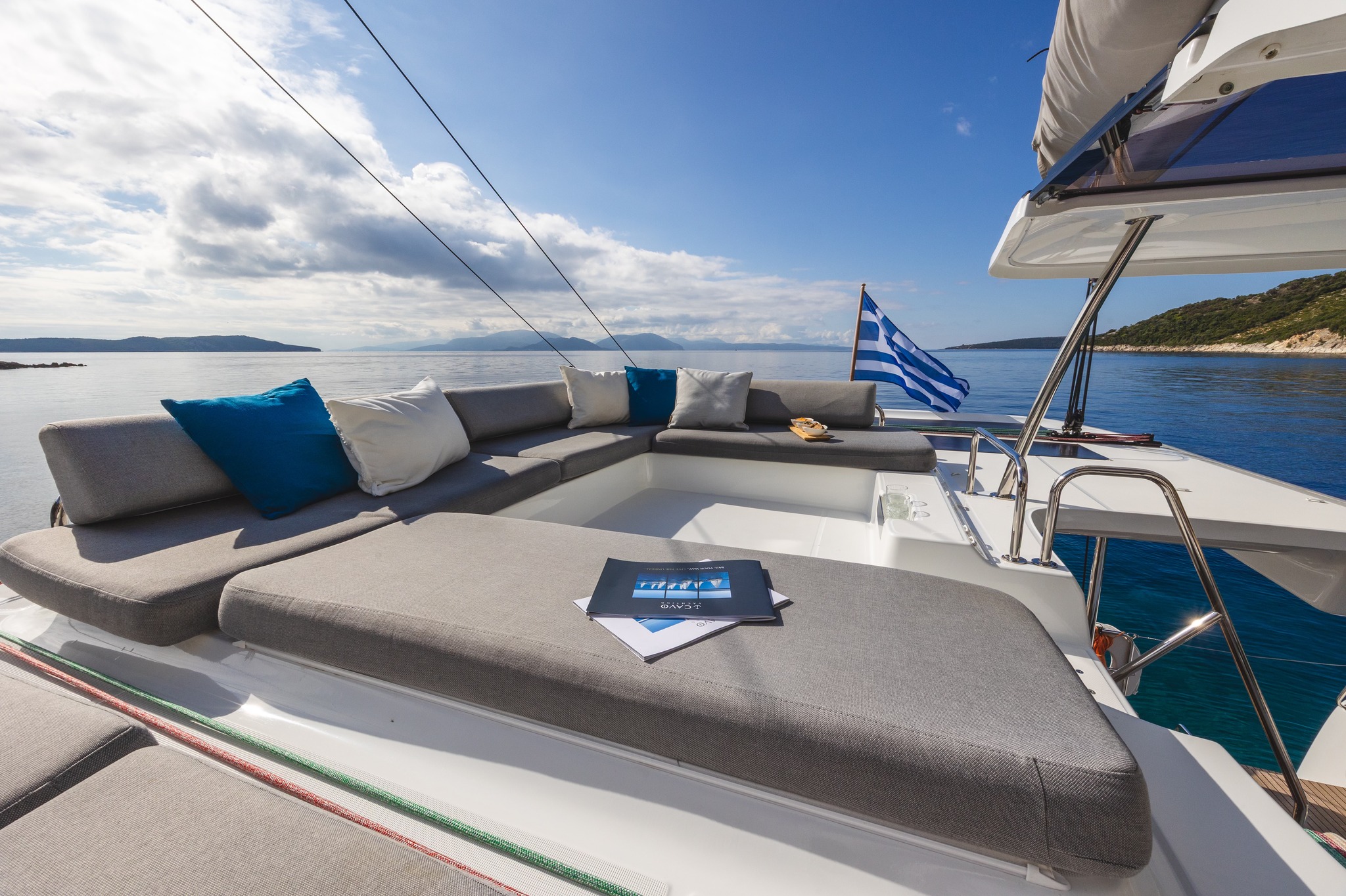 TVUSB portsSUPWiFiSnorkeling equipmentUSB sockets/AUX/BluetoothFusion audioInternetSnorkeling EquipmentLuxury dingy with center console cockpit x 20 hp enginePowerful center console dinghy with 40HP engineFull Batten MainsailAutopilotChart PlotterDinghyIce-MakerOutboard EngineFans in Salon and CabinsAir ConditioningBiminiCockpit SpeakersWatermakerGeneratorAir Conditioning (cabins and salon)InverterElectric ToiletElectric winchCoffee Maker (Nespresso machine)MicrowaveUnderwater lightsTeak Deck in CockpitCockpit tableCockpit cushionsSwimming ladderGangwayElectric fansIcemaker