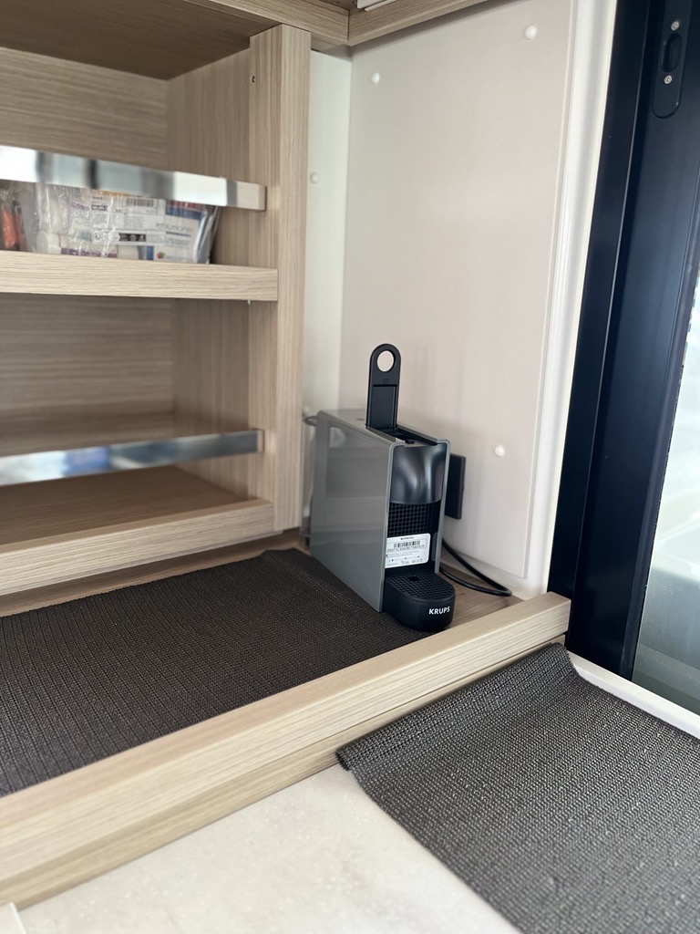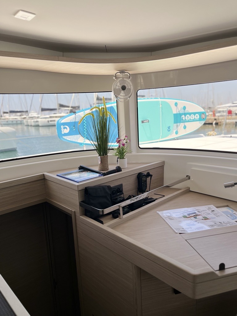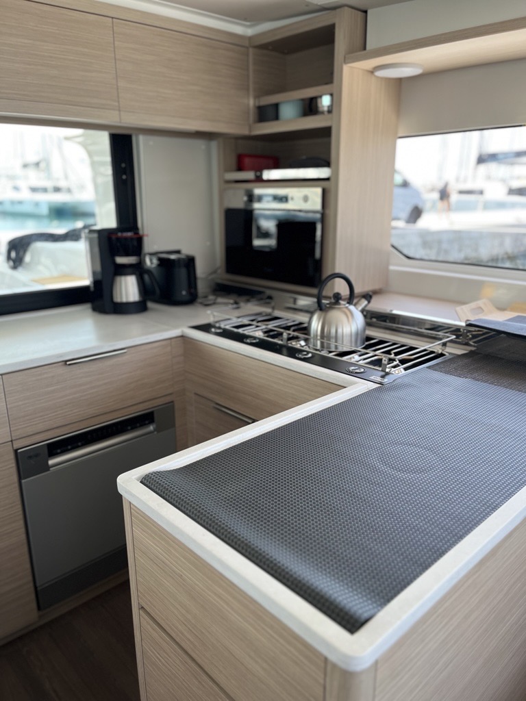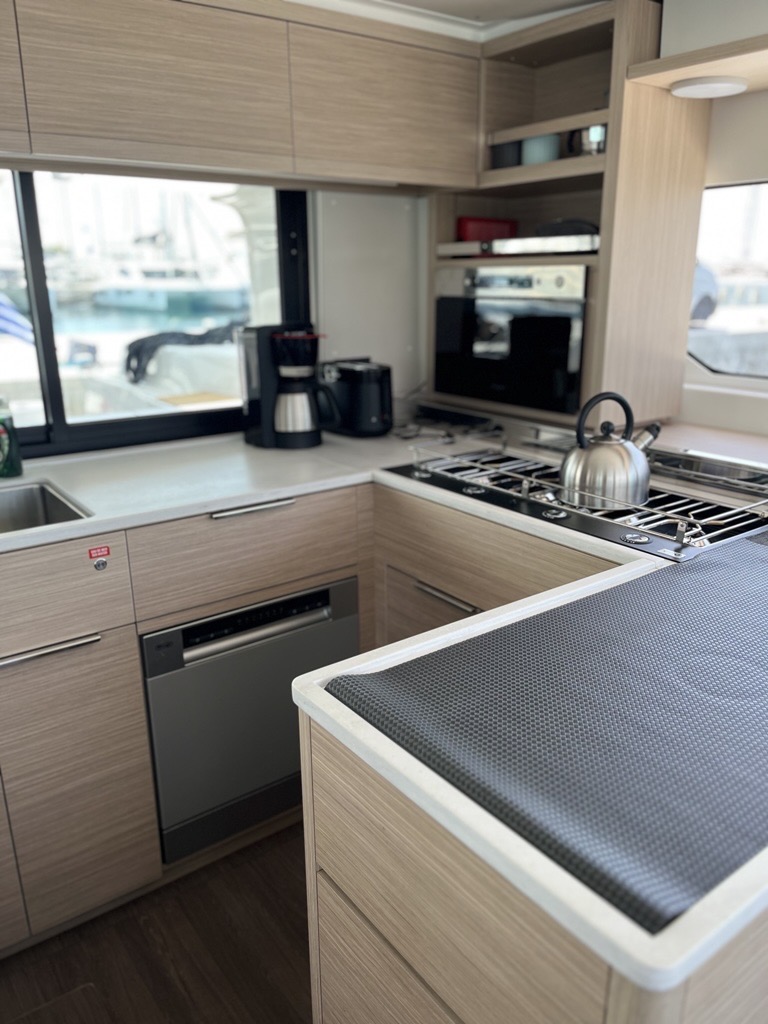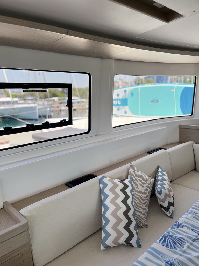Lazy BagElectric Halyard WinchSemi-full batten mainsailTacking jibRadio/cd/usb player/bluetoothCockpit SpeakersBathing PlatformTeak CockpitSprayhoodCockpit tableBiminiDeck ShowerElectric WindlassCooker with oven & grillFreezerFridge with small freezerNespresso machineElectric Filter coffee machineMicrowaveDinghy LOAOutboard engineSnorkel EquipmentSafety harnessFire extinguisherCalibrated anchor chainFirst aid kitLifebuoyFloating lineEPIRBFloating AnchorFloating lightLifejacketsUnderwater lightsIce makerWatermakerAmbient deck lightingElectrical dinghy hoistDishwasherSolar Panels220v Shore Power ConnectionGenerator12v or Usb sockets in cabinsInverter220v sockets in cabinsAir ConditioningElectric ToiletsFans in saloon & cabinsHot WaterPaper chartsPilot BookLog/speed/wind/depth instrumentsVHF DSCAutopilotColour chart Plotter in CockpitAIS receiverRadarBedding & LinenBlack water holding tanksClock and BarometerCockpit cushionsCompass and navigation toolsCooking pots & pansCutleryFloating LineMooring linesToolboxHydraulic Teak gangway with remoteSeparate crew bunksSeparate crew wcSeparate crew shower