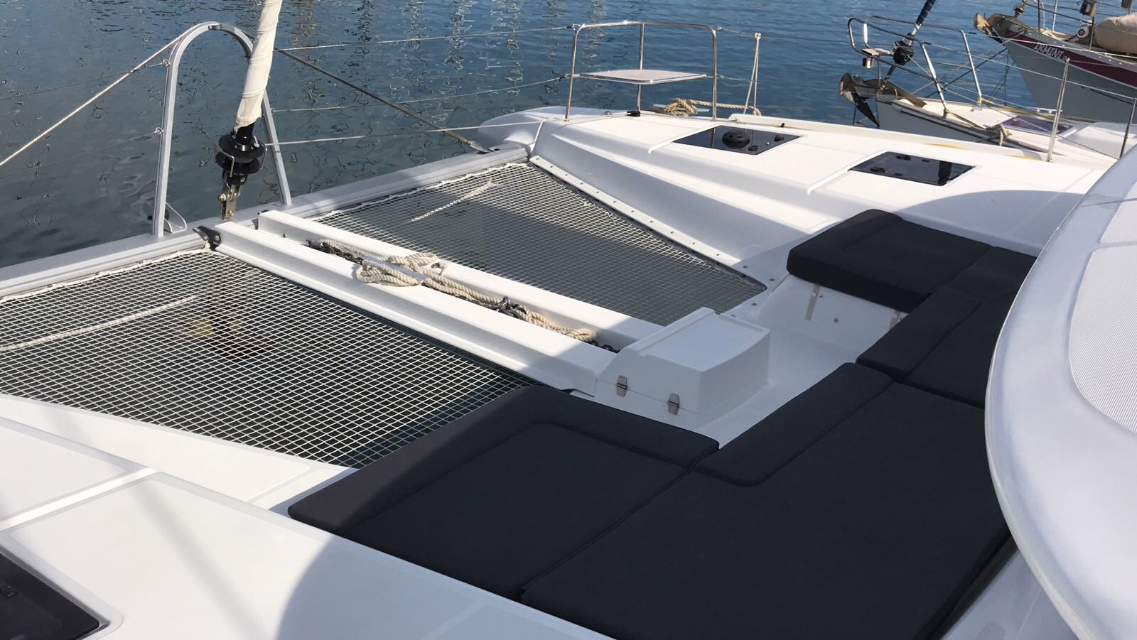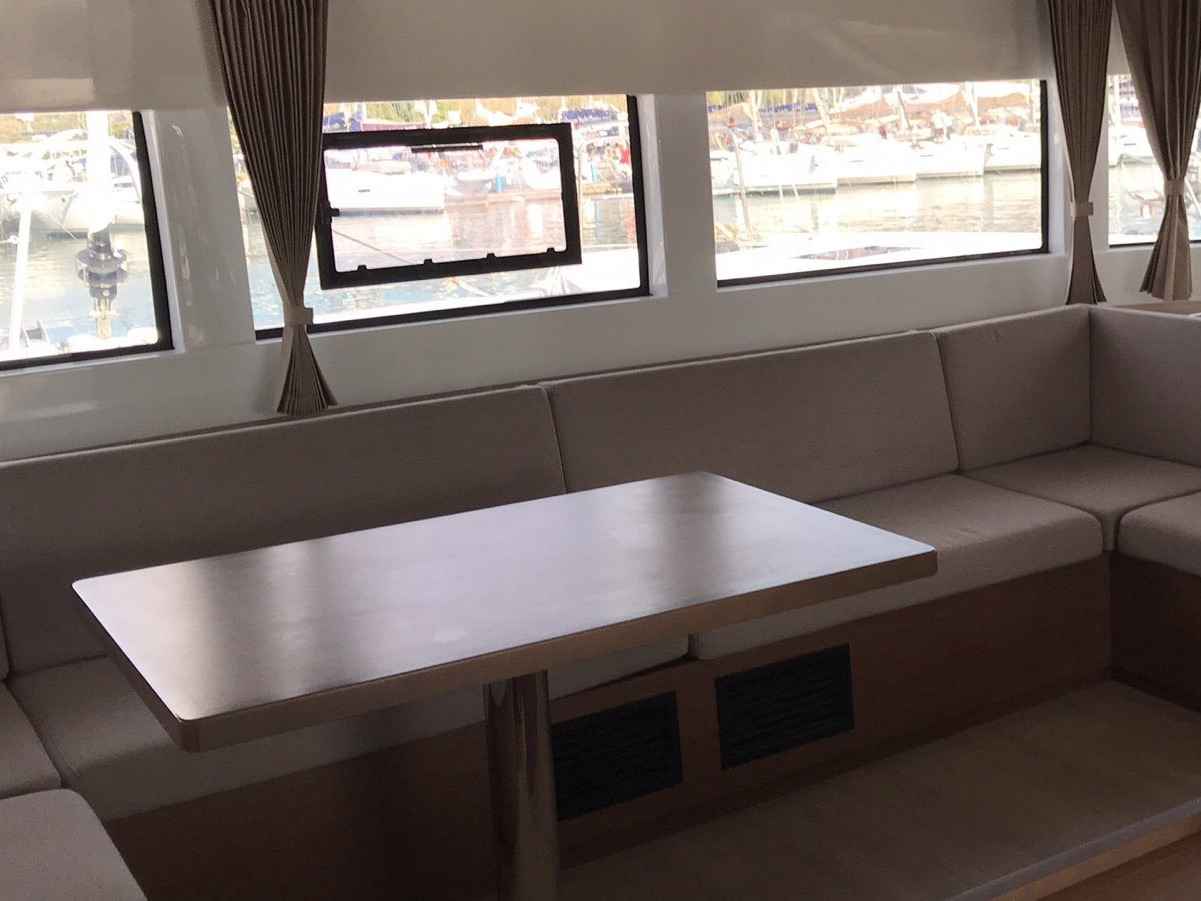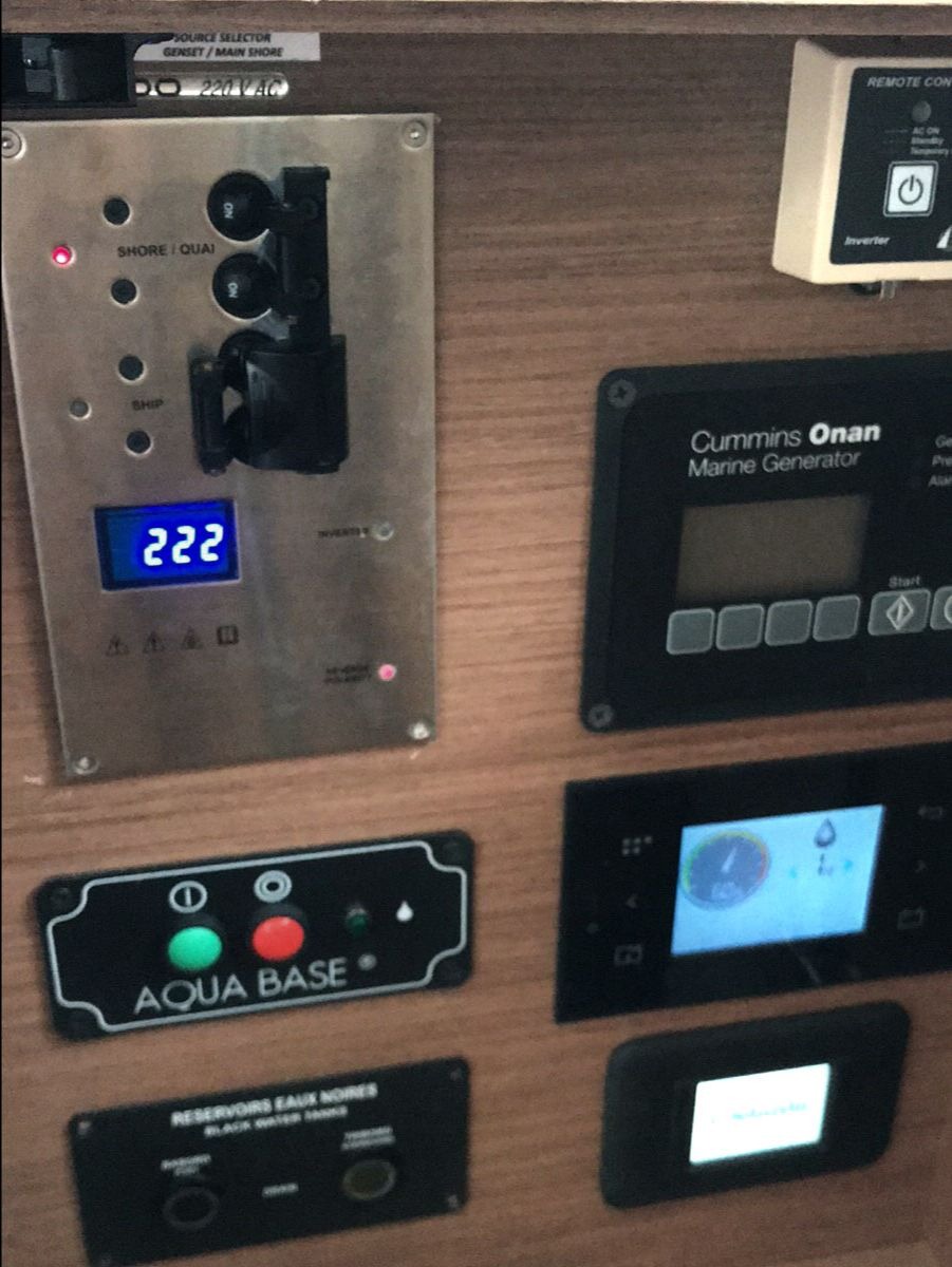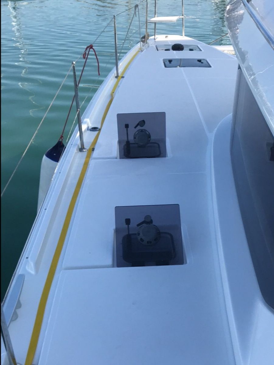Cockpit cushionsLazy bagLazy jacksAutopilotBow thrusterCompassGPSGPS chart plotterLogge/Lot/SpeedNautical chartsNavigation setWind instrument/AnemometerBlack Water TankFire extinguisherFirst aid kitFlashlightSafety equipmentSet of toolsVHF radioAir ConditionGeneratorInverterSolar panelsWatermaker - desalinatorAnchorBimini topCockpit/stern, outside showerDeck brushDinghyElectric anchor windlassFendersOutboard enginePlastic bucketSprayhoodHot waterKitchen utensils (Galley equipment, cutlery)OvenRefrigeratorStoveElectric toiletInside showerFusion radioOutdoor speakersTVUSB