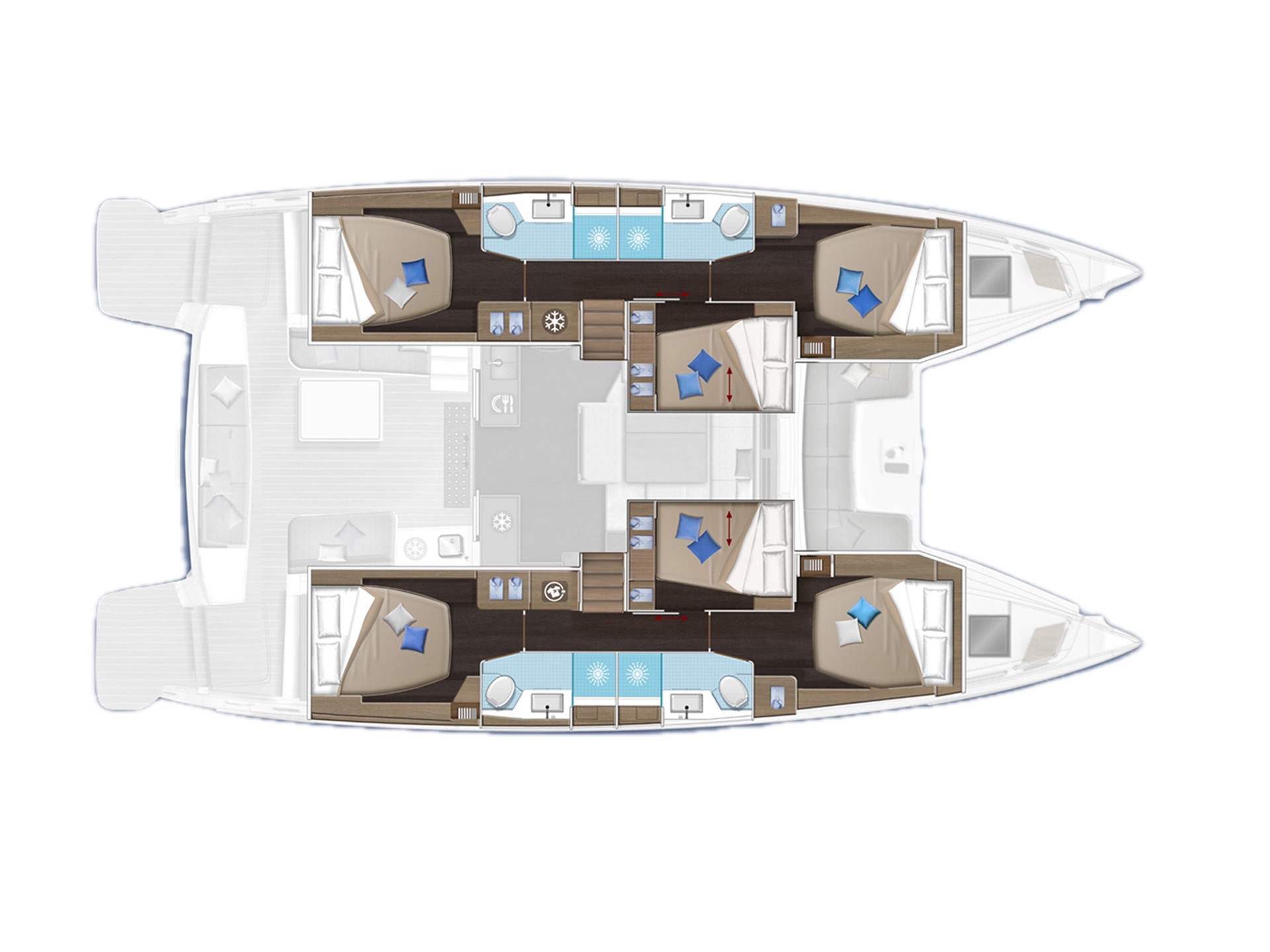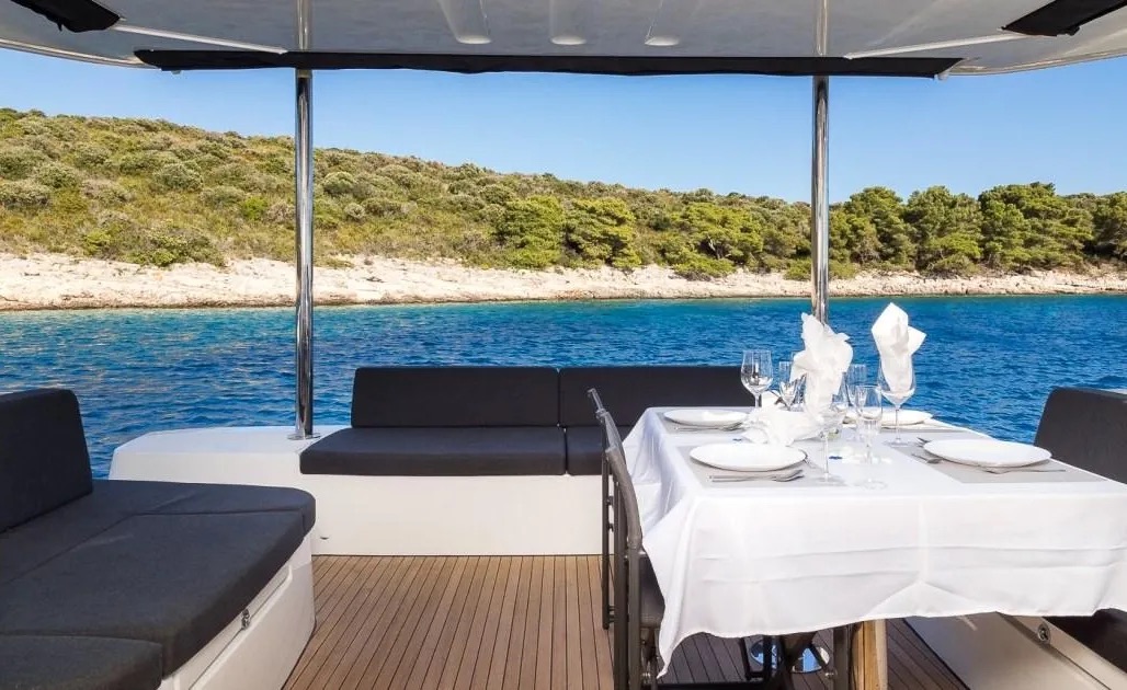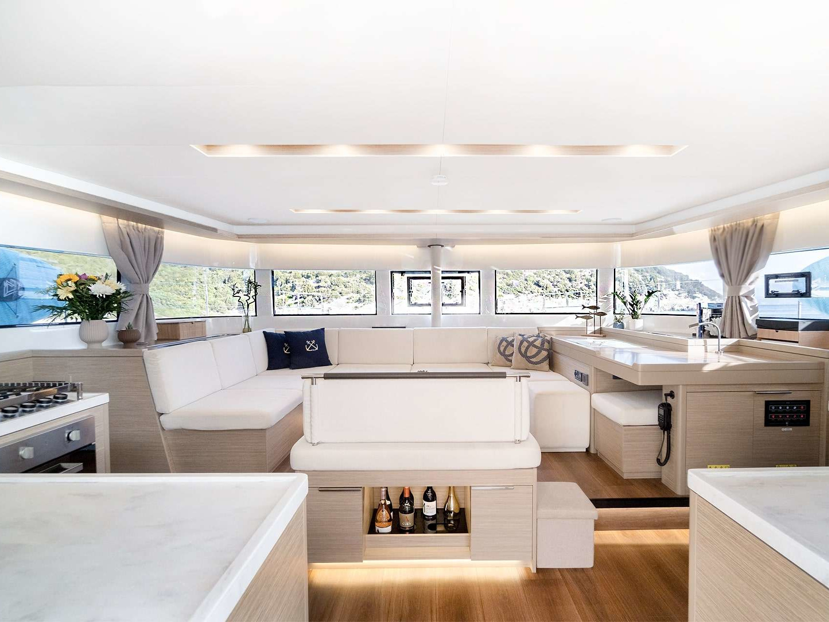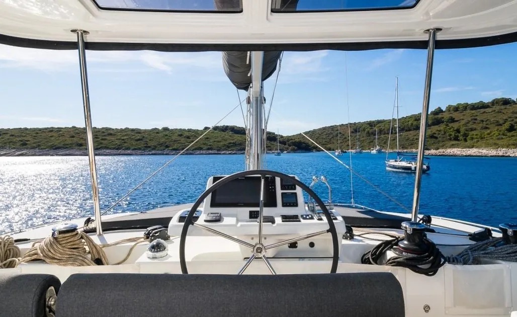 Snorkelling equipmentCoffee machineBed linen/pillowsIce makerFinsPower generatorOutboard engineWatermakerSolar panelsAir conditionAutopilotDinghyHydraulic GangwaySelf-tailing winchesAnchorElectric winchElectric Anchor WindlassFridge (interior, exterior)Hard topRoller GenoaEPIRBChart plotterShore Power 220 VEmergency batteryLazy JackVHFInverterUSB SocketsRadioHot WaterUSB for MP3Electric Toilet PumpCabin Fans and saloon fansWindexSaloon and cockpit shaderWind InstrumentsDepth Sounder2 extra emergency bilge pumpsSwimming ladderTender lift platformSwimming platformWooden cockpit tableGalley Fully EquippedCushions bow, flybridge, cockpitLarge gas bottle