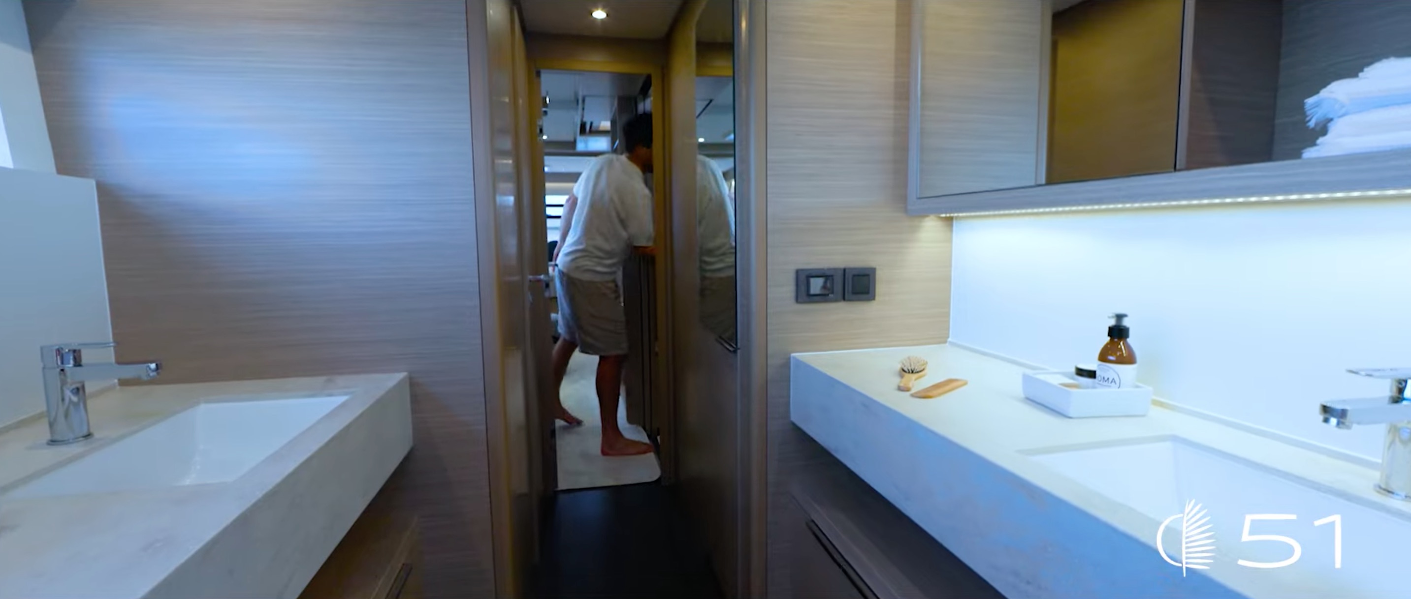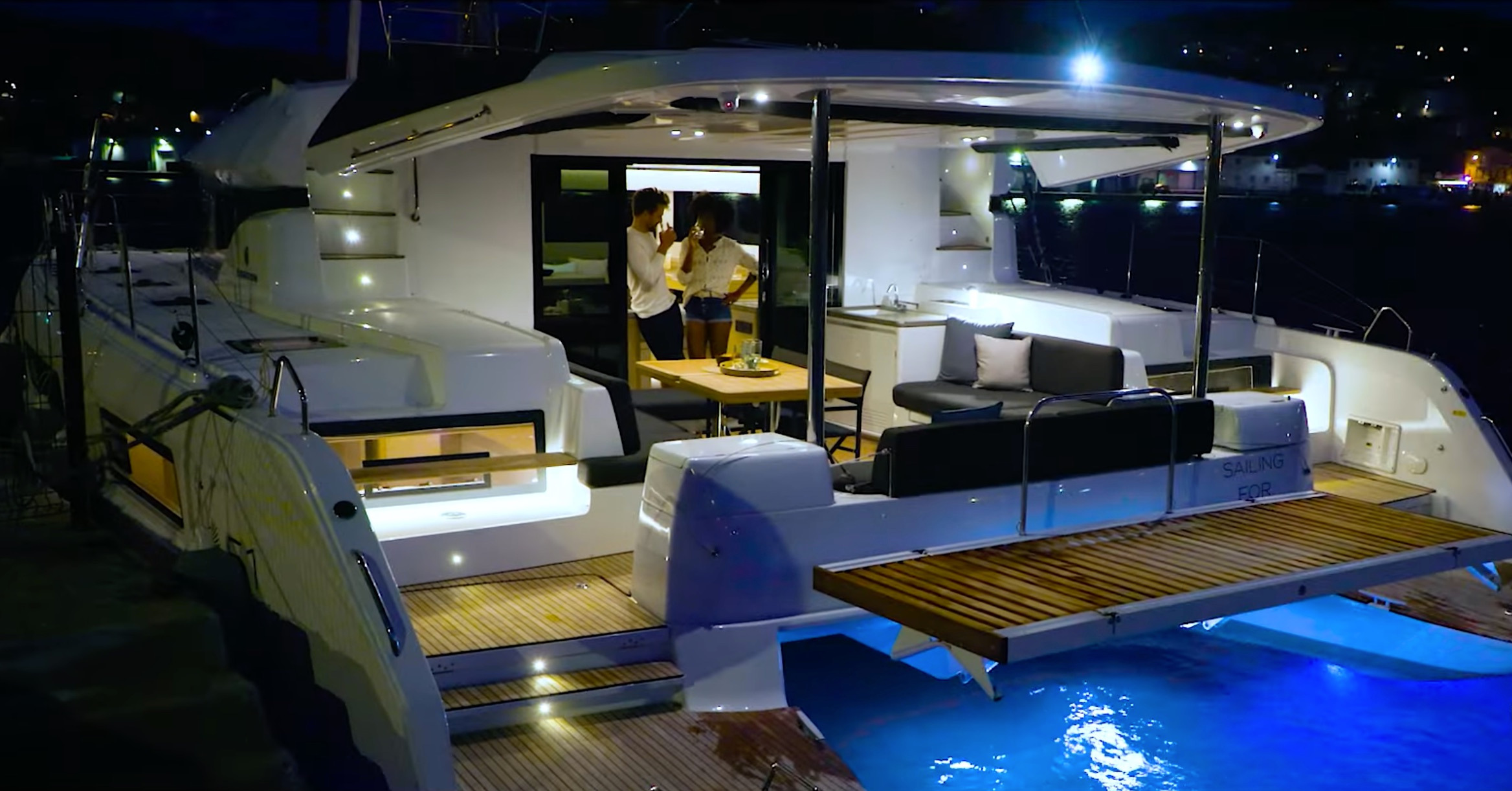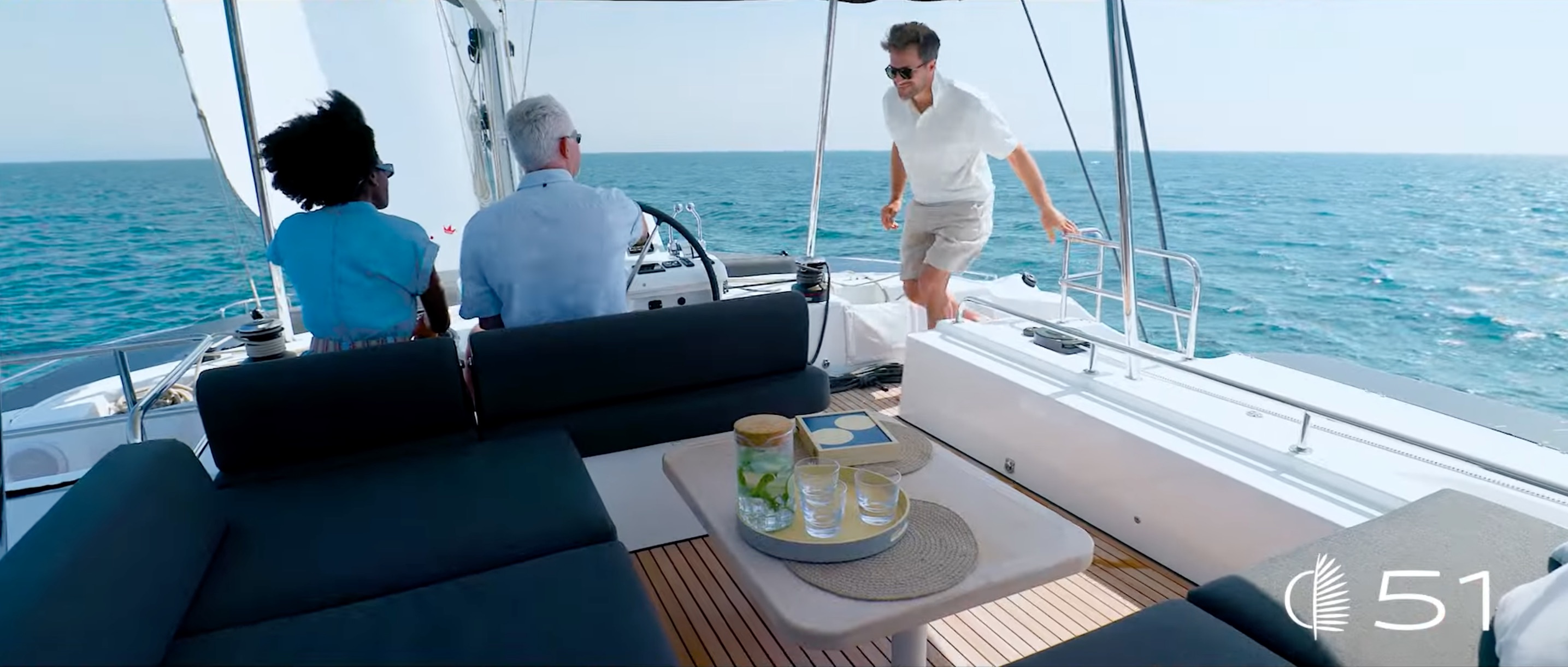 Outside cushions (bow, flybridge, cockpit)SunshadesElectric halyard winchElectric main sail winchLazy jacksGenoa (manual)AutopilotDepthsounderGPS chart plotterPilot bookWind instrument/AnemometerWindexEPIRB-Distress radio beaconsVHF radioAir Conditioning2 x Batteries - extraBaterry chargerGeneratorInverterShore connection 220 VUSB socketsWC pump - electricWatermaker2 x Bilge pump - MechanicBimini topCockpit table - woodenDinghyElectric anchor windlassFendersHydraulic gangwayMain anchor - 45 kg with 80 mOutboard engine - 20HPSpare anchor (Reserve, Auxiliary anchor) - 20 meters chainSwimming ladderGas bottlesHot waterKitchen utensils (Galley equipment, cutlery)4 x Refrigerator + 1 FridgeElectric fans in cabinsBluetooth playerRadioSnorkeling equipment