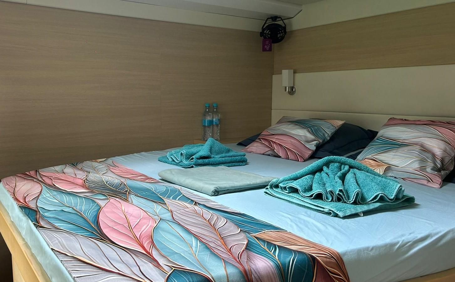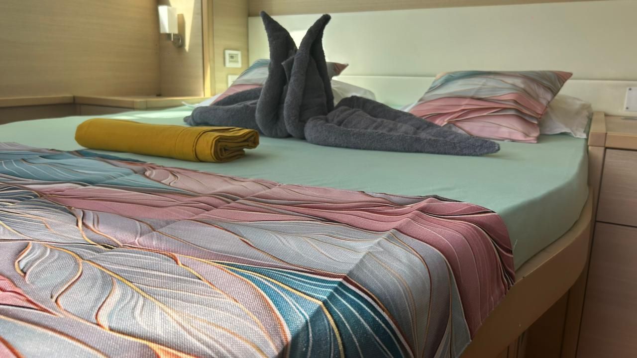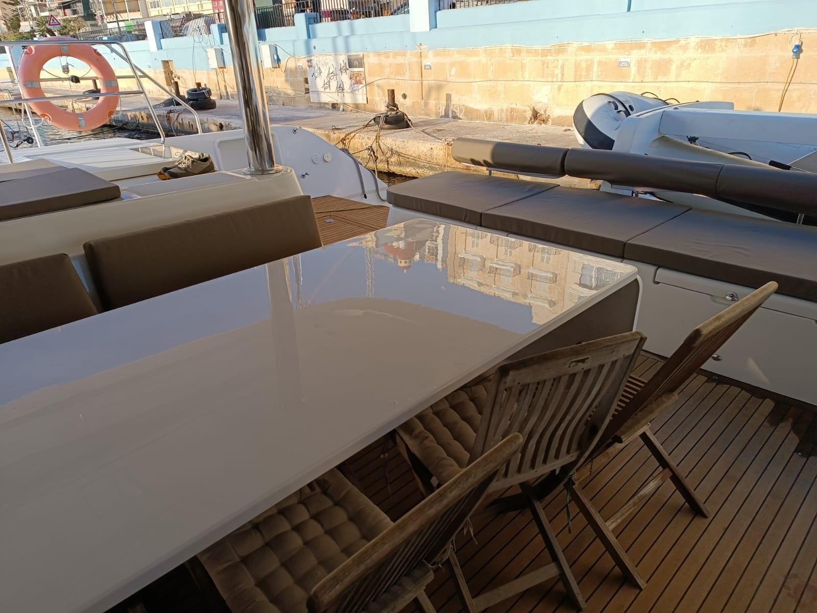 Furling genoaBattened mainsailLazy bagDinghyWater pressureGeneratorBoard-battery chargerHot waterWater makerA/CCD/radioElectric fridgeElectric Windlass (anchor)Cockpit cushionsswimming ladderRigid biminitopFlybridgeGPS PlotterLog, Depth, SpeedWind indicatorsVHF