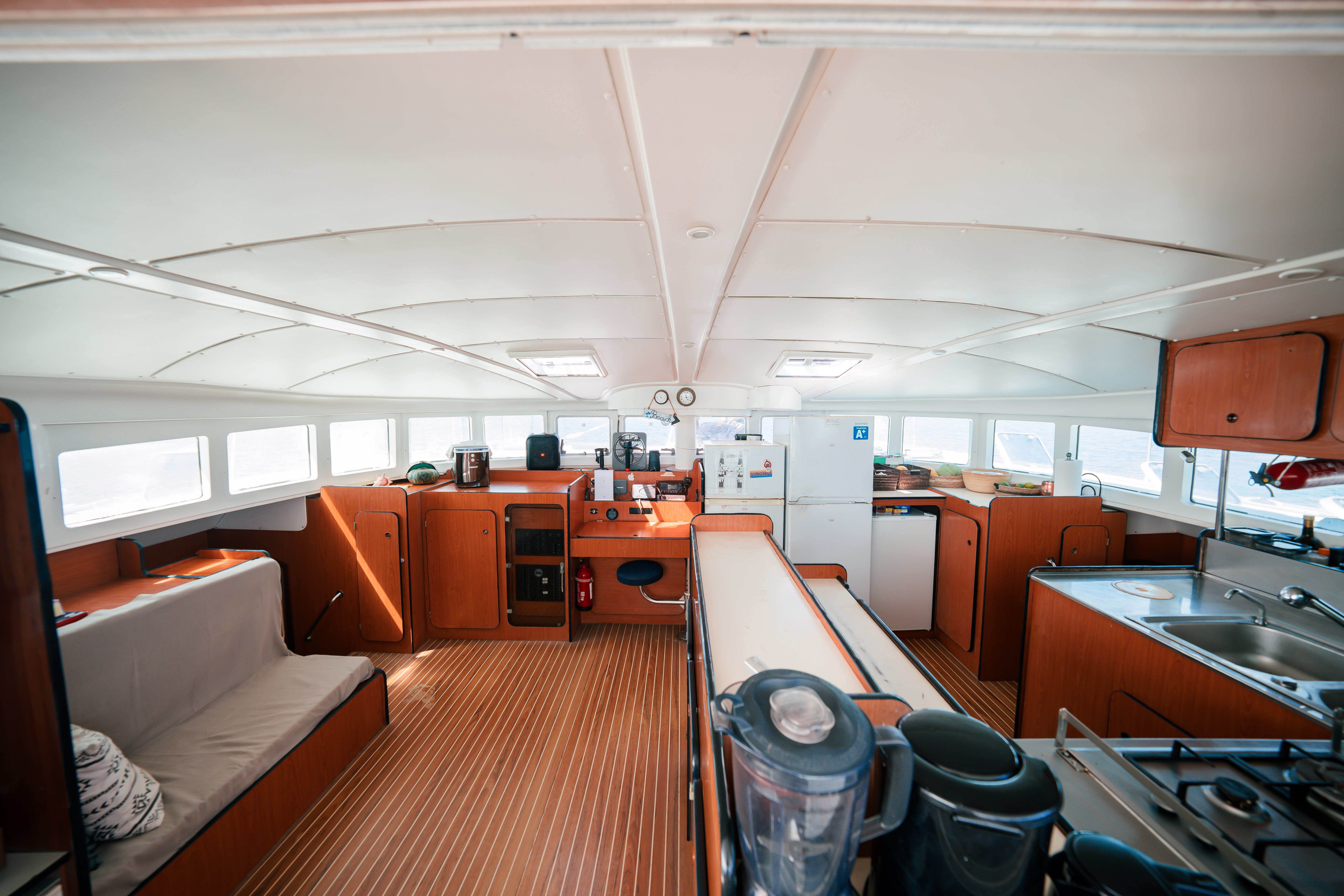 Cabin fansPaddleboardSnorkeling equipmentDinghy with outboard engine TowelsWi-FiSunchill - Floating Pool Fishing gearFully equipped galleyOvenFridgeFreezerIce makerSpacious salon with panoramic windows Water fountainChart plotterGPSVHFAutopilotDepth sounder