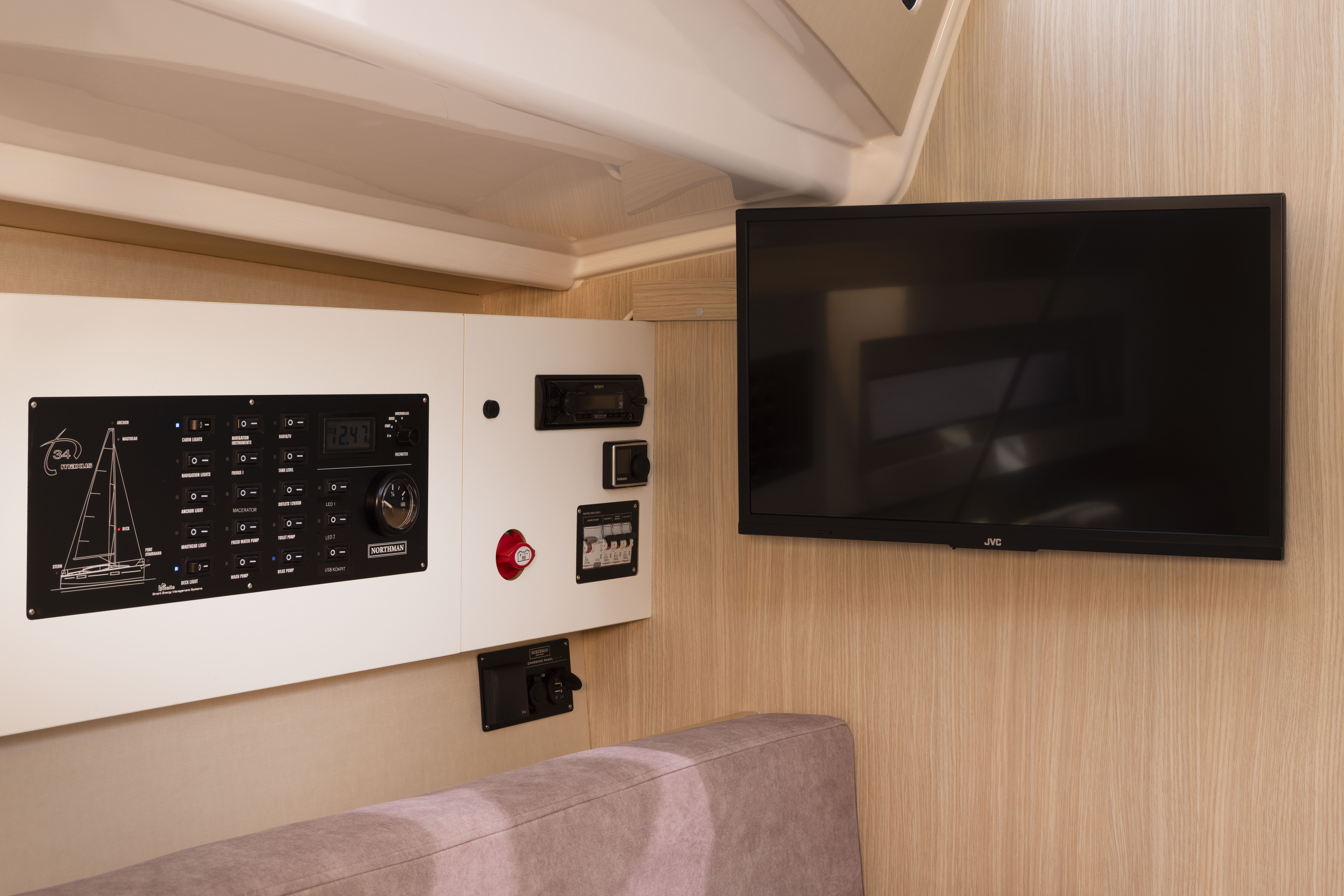 Bow thrusterLazy Jack230 V installationLife jackets LifebuoySteering wheelEcho sounderBattery chargerOutboard ladderFire extinguisherShower in the cockpitFridgeHeatingMicrowaveKitchen equipment (cutlery, utensils, crockery ...)Gas stoveTVRadio (CD or MP3)Mobile phone charging socketPaddles and boat hook