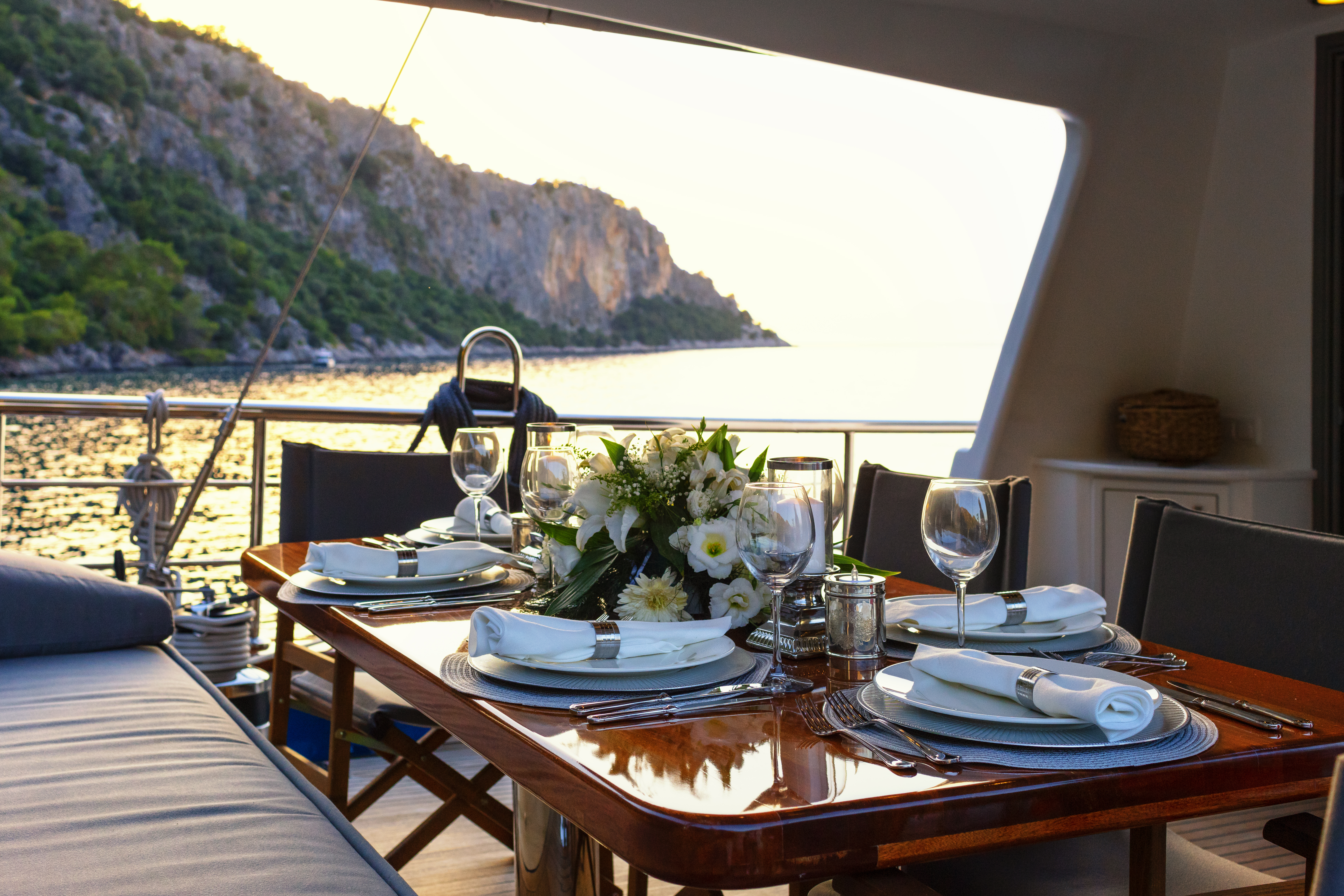 The yacht must be returned to the base by 6:00 p.m. with a full fuel tank on the day before your scheduled disembarkation date.