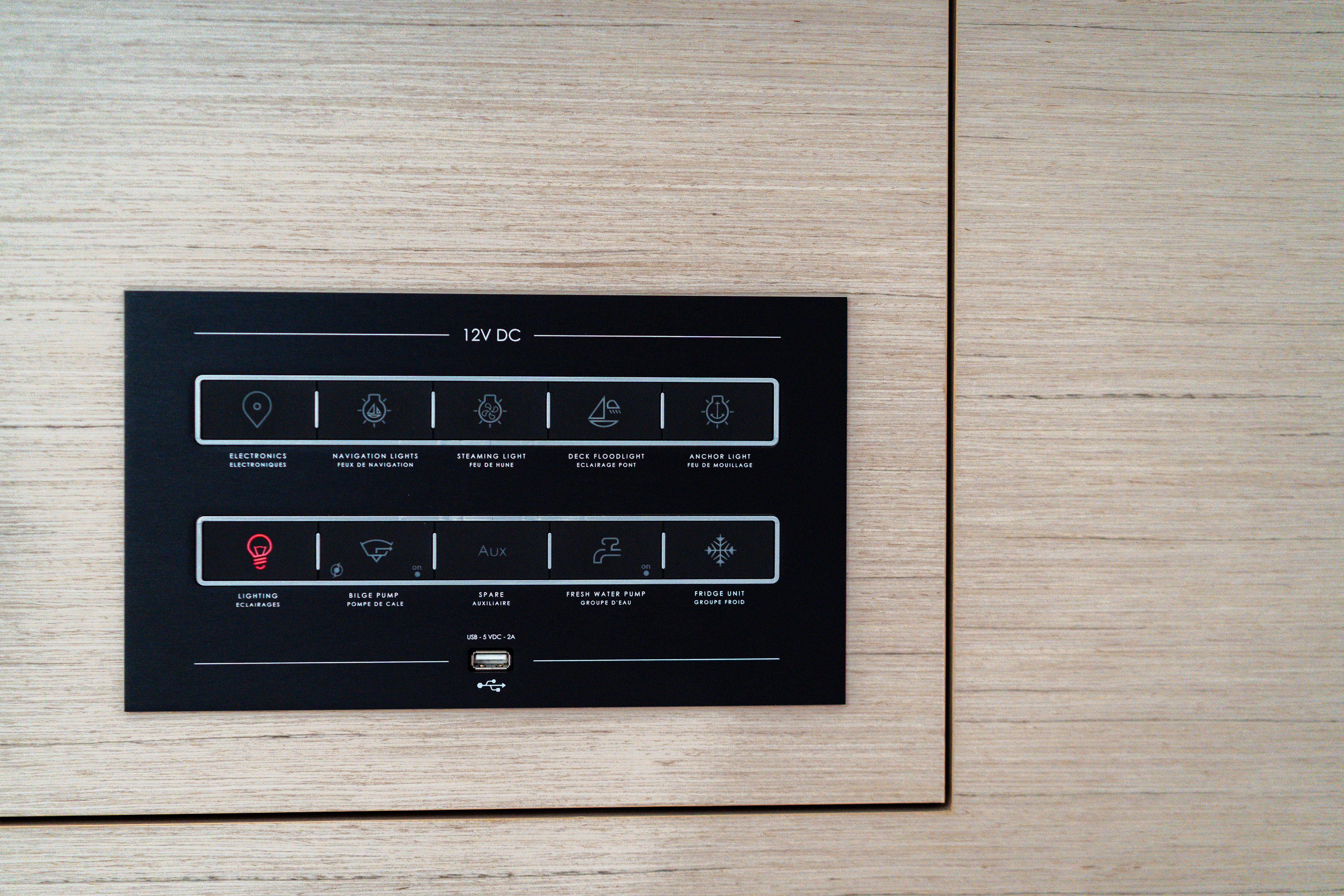 MS FUSION Player 2 loudspeakers in salon + 2 outsideHelm seat cushions Dark GreyFlag halyards on spreadersIndirect lighting in cabins and salonWaterproof loudspeakers in cockpitElectric seawater pumpComposite bimini with windscreen at helm stationInverter 12/220 VUSB sockets in all cabinsFans in salon and cabinsFully equipped kitchenNautical charts for Sardinia & CorsicaHandheld compassPilot Book (IT/EN/DE/FR)TorchFrench & Corsican FlagsBinocularsDividers, Triangle, pencilsBook of Lights and SignalsSteering wheelAutopilotWind indicatorAnemometerGPS chartplotter VHF RadioWind instrumentsRefrigeratorGas stove with OvenPillows & BlanketsRadio + USB + BluetoothDouble berth in salonFans in salon and cabins220v boilerInverterFully equipped kitchenBiminiSprayhoodElectrical Windlassanchor with chainBowthrusterSecond AnchorBoat HookWater Hose & AdaptorsGangwayAdditional Ropes1 Mask & snorkelBucket, cleaning Brush, SpongePegs & washbasinTeak in cockpitCockpit tableOutside speakersExternal showerGPS plotterExternal CushionsGennaker HalyardFendersExternal cockpit lightLifejacketsLife HarnessesFirst Aid KitEmergency tillerLifering with LineFire extinguisherEmergency FlaresTool kitBlack Cone & BallAirhornSignal Rockets and FlaresFurling MainsailJIB