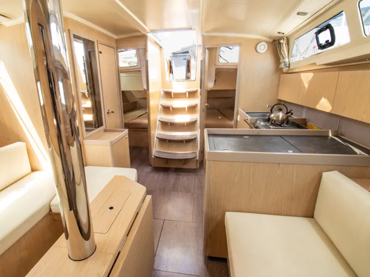 Bimini Sun ShadeElectric anchor windlassBowthrusterCockpit CompassCockpit CushionsCockpit ShowerCockpit SpeakersCockpit tableDinghyHot water systemLinen - Sheets, pillow cases, shower towels & tea towel3 Pin European plug socketsHolding tankGas stove and oven