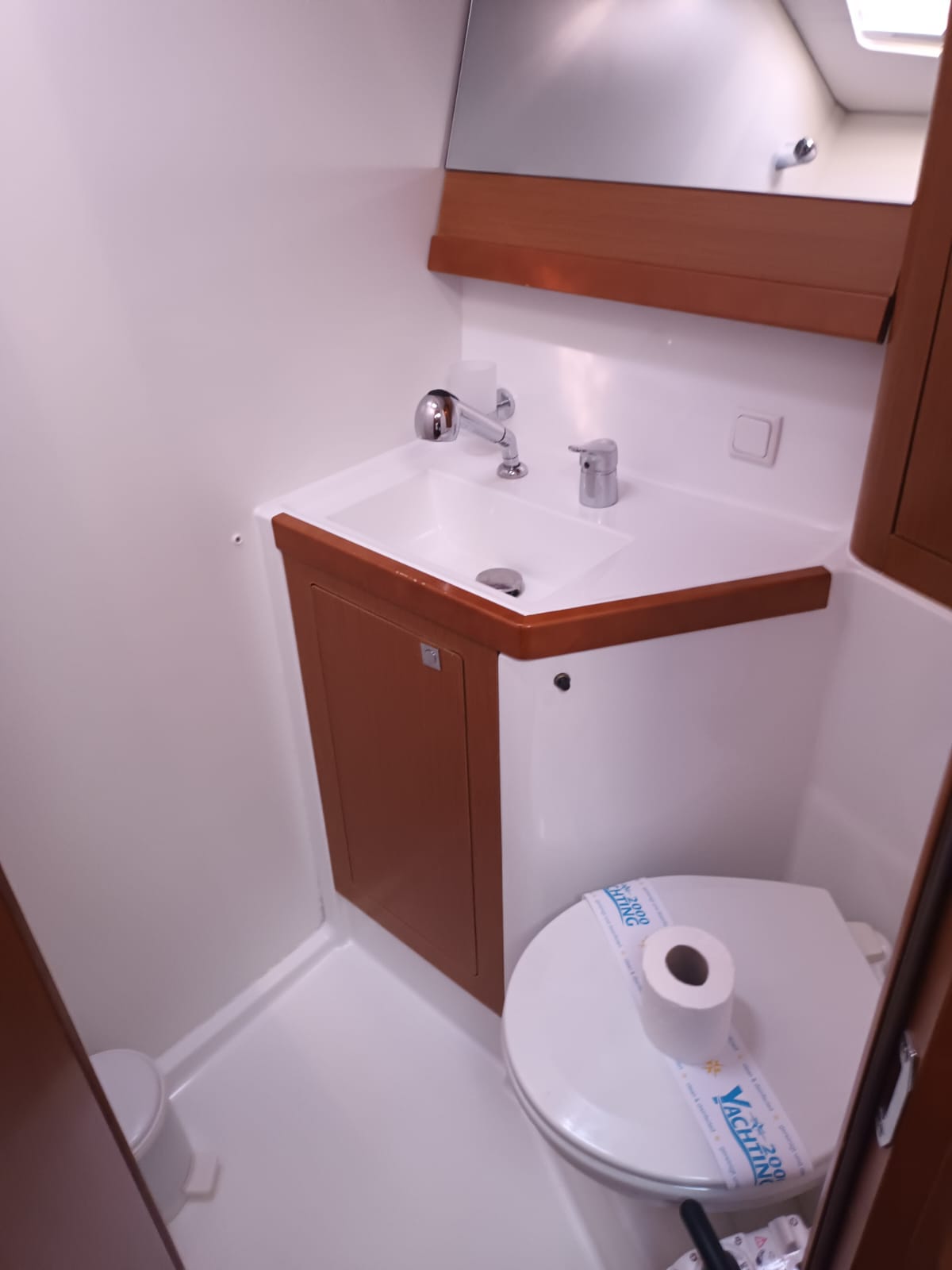 AutopilotGPS/ChartplotterWind indicatorDepth sounderCompassHot Water SystemVHFRadio/bluetooth250 GB WiFiElectric windlassBow thrusterCockpit cushionsOutdoor showerDinghy including outboard engine 2,3 HPEngine 75 HPElectric toiletsRefrigerator (2)Complete galley equipmentNespresso coffee machineFurling mainsailFurling genoaBiminiSprayhoodStand Up PaddleWebasto diesel heatingLiferaftPyrotechnical equipmentFirst aid kitLife jacketsFire extinguishers