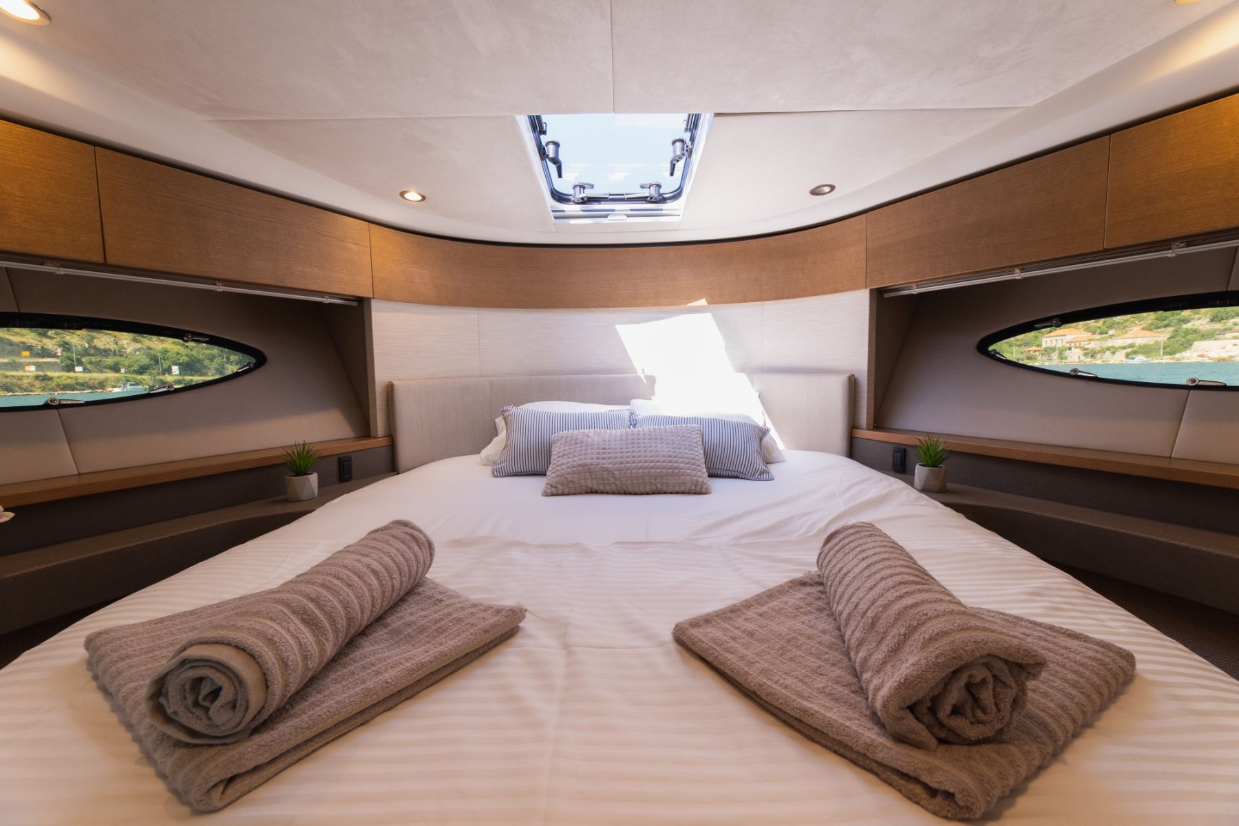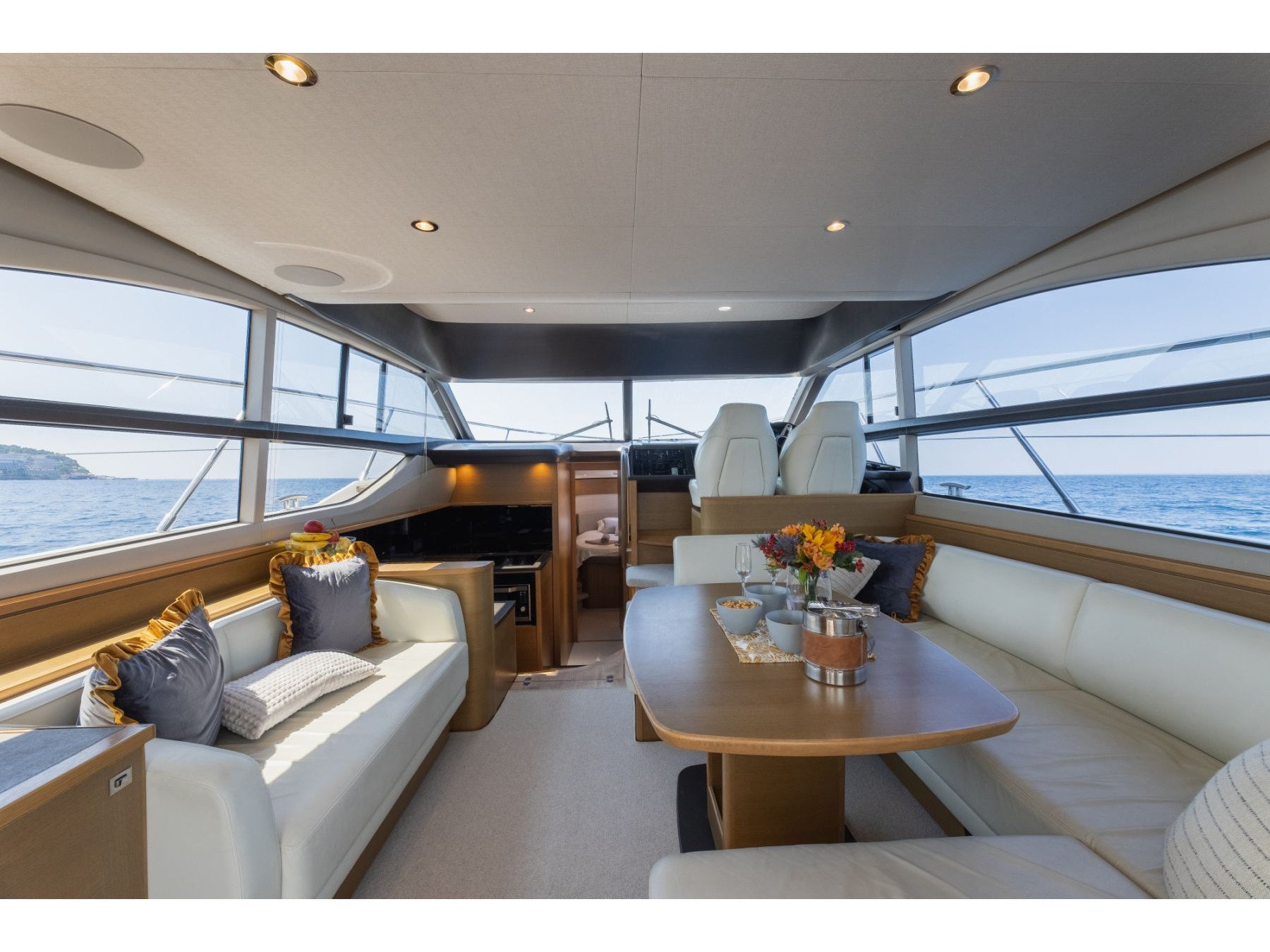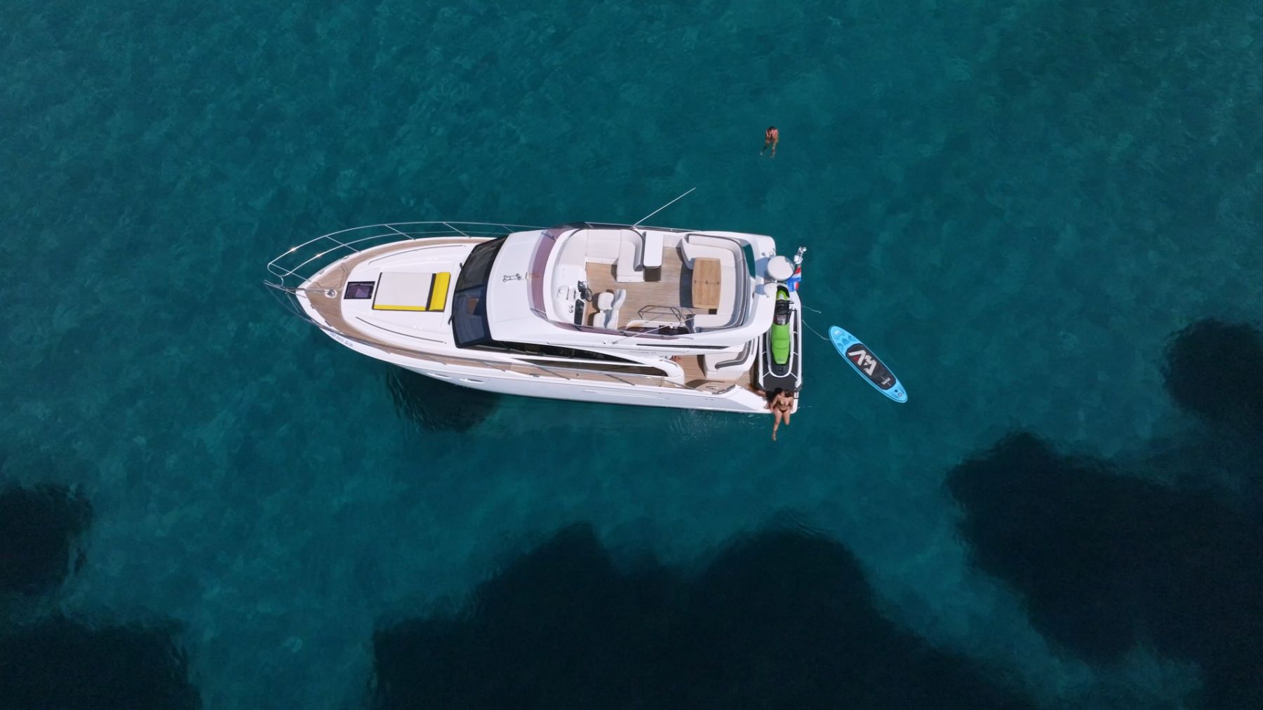Audio system with BluetoothSundeckAir conditionFully equipped kitchenInterior saloonFlybridge with biminiHydraulic swimming platform (suitable for carrying a jet ski while cruising)Aft showerWine fridgeElectric BBQ on the flybridgeEspresso coffee machineRefrigeratorHot & cold waterShore power connection
