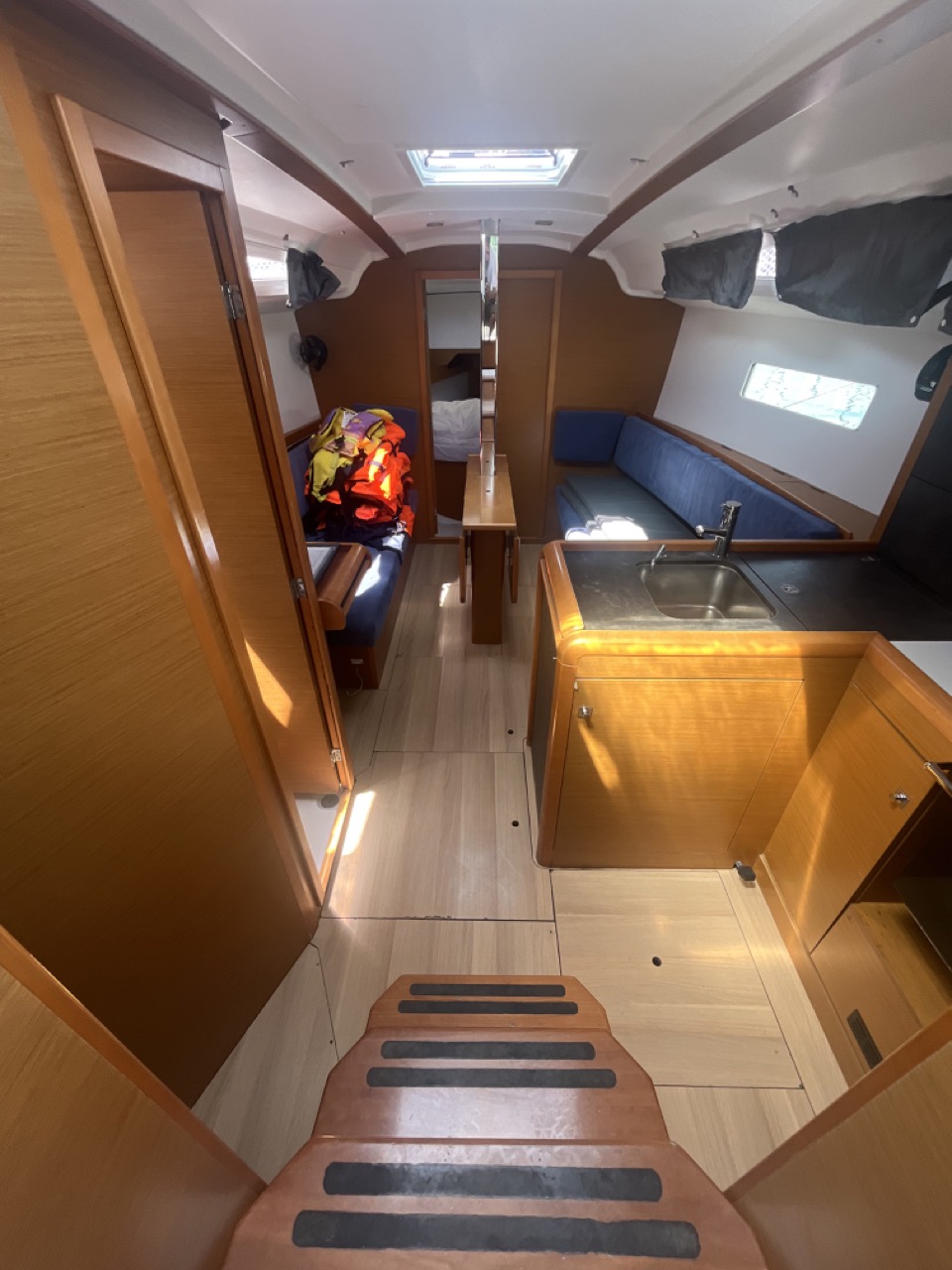 GPS + CHART PLOTTER IN COCKPITSolar panelsBlue underwater lightsBed linenWind direction indicatorByboat pumpWater hoseBrushBilge pump + handleChartsPlotters + dividersHand bearing compassBinocularsPilot booksLife jacketsFirst aid kitPortable lampToolsClockBarometerKitchen equipmentEcho sounderSpeed logVHFRadio CD playerElectric windlassWind instrumentWinch handlesAnchor with chainFendersGas bottleRopesBoat hookLife buoyHot waterCockpit tableRoll GenoaTenderBimini topSprayhoodAutopilot